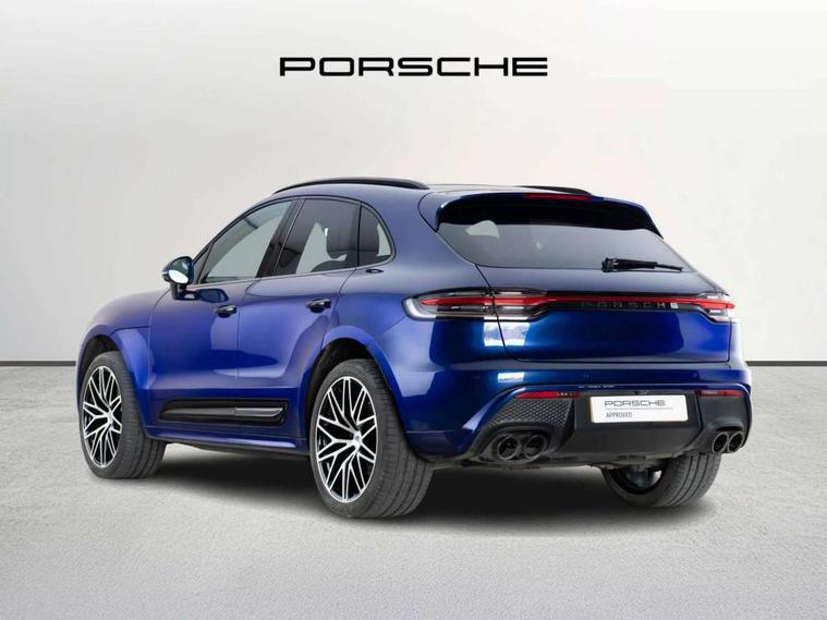 Analogue clock on dashboard, Automatic start/stop system, Automatic tailgate, eCall emergency call system, Instrument cluster with high resolution 4.8-inch TFT display, gear indicator for PDK, service interval display, external temperature indicator, fuel gauge, Off-road button, On board computer, Porsche Communication Management (PCM) including online navigation module, mobile phone preparation, audio interfaces and voice control system, Sports button in centre console, 7-Speed Porsche Doppelkupplung (PDK) with automatic mode and manual controls (gearshift paddles) on steering wheel, Direct fuel injection (DFI), Gasoline particulate filter, VarioCam camshaft control for inlet and exhaust valves, 2 USB sockets in rear centre console, Apple CarPlay with Siri voice recognition, Connect Plus including online navigation, LTE communication module with SIM card reader, wireless internet access, Porsche Car Connect services, DAB Digital radio, Porsche Vehicle Traking System Plus (PVTS Plus), Smartphone compartment with wireless charging, Two USB C charging and connectivity ports in the front centre console storage compartment, Active radiator grille shutters, Automatic headlight activation including welcome home lighting, Bumper system with high strength cross members and two deformation elements + One threaded fixture point for towing eye contained in onboard tool kit, Dynamic cornering lights, speed-sensitive headlight and dynamic range control, adverse weather function, four-point LED daytime running lights, Electric front and rear windows with remote closing function + anti trap + one touch, Electrically folding and heated exterior mirrors, Front light modules with LED position lights and direction indicators, Front windscreen wipers with two speeds, intermittent wipe and rain sensor, Front with integrated cooling air intakes, Fully galvanised body, Heated rear window with automatic switch off, High level 3rd LED brake light integrated into roof spoiler, Loading edge protection in aluminium, Rear side wing doors, Rear window wiper with intermittent function and washer jet, Roof spoiler in high gloss black, Towbar preparation, 3 adjustable rear headrests, 3 rear seats, 3 zone auto climate control separate temperature setting+air recirculation include quality sensor, airflow regulation+AC MAX button+humidity sensor, 4 way adjustable front head restraints, 40:20:40 split folding rear bench seat, Cloth hook b-pillar, Fold up centre console armrest with fore/aft adjustment, Front and rear bottle holders in door panels, Front passenger seat, Glove compartment, Isofix fastening system for child seats on outer rear seats, Luggage compartment cover, Particle/pollen filter with active carbon filter, Rear armrest with 2 cupholders, Storage bin in centre console, Storage compartment in side of luggage compartment and storage compartment in spare wheel recess, Storage pocket in front and rear doors, Two integrated cup holders in front with variable diameter, Two socket 12V power outlets in front console and luggage compartment, Uncovered storage compartment in centre console, Ambient comfort lighting pack - Macan, Lower exterior trim package in black - Macan, 3-point automatic seatbelts with front and outer rear seats pretensioners and force limiter + manually height adjustable seatbelt + reminder warning, Auto hold function, Black painted brake calipers, Child locks on rear doors, Curtain airbags along entire roof frame and side windows from A pillar to the C pillar, Electronic parking brake, Front passenger airbag deactivation facility for installation of child seats indicator in overhead console, Front side airbags integrated into seat, Full size driver and passenger airbags, Internally vented brake discs with diameter of 350mm at front and 330mm at rear, Multi-Collision braking, Porsche hill control (PHC), PTM(Porsche Traction Management) and All-wheel drive with map-controlled multi-plate clutch, Roll over sensor for curtain airbag and seatbelt pretensioners, Side impact protection in doors, Tyre pressure monitoring system, Vehicle stability system, Porsche stability management (PSM) including ABS, ASR, ABD, MSR and trailer stability management, Vented discs brake with 4 piston aluminium monobloc fixed caliper at front, Vented discs brake with combination floating calipers at rear, Alarm system with ultrasonic interior surveillance, Dashcam prep, Engine immobiliser with key transponder, Remote control central locking, Accent trims with silver coloured finish,