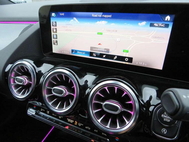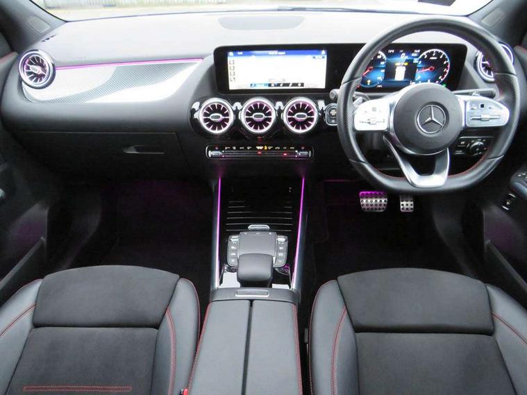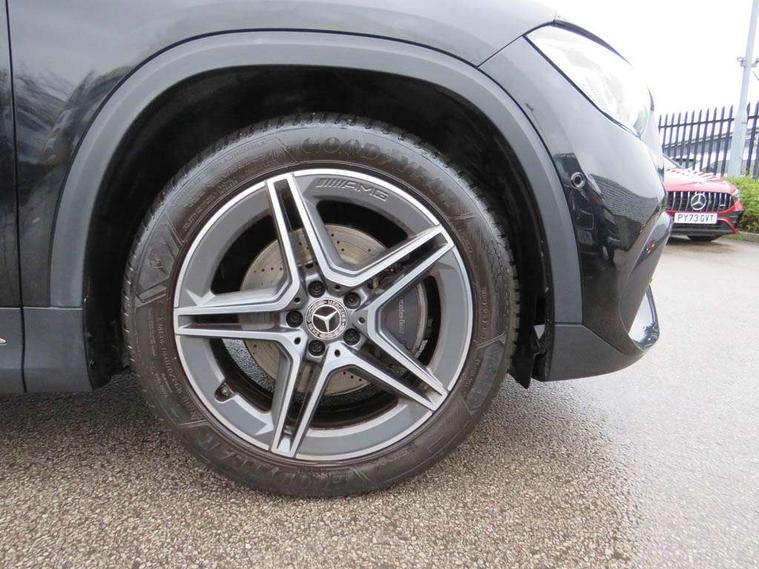 10.25 inch touchscreen central media display, 10.25" Digital instrument cluster display screen, Active lane keeping assist, Attention assist, Augmented reality navigation, Cruise control + speed limiter, Direct steering, DYNAMIC SELECT with a choice of driving modes (ECO, Comfort, Sport, Sport+ and Individual), Easy-pack tailgate, ECO start/stop function, Fluid level warning indicator for fuel, oil, coolant and washer fluid, Hard-disk navigation, Hey Mercedes Voice activation, Lamp failure indicator, Mercedes me connect including emergency call system, accident recovery, breakdown and maintenance management, Multi function trip computer, Outside temperature gauge, Owners manual and service booklet in English, Pre-installation for Vehicle Monitoring, Pre-installation for Vehicle set up, Pre-installation of private car share, Radio aerial integrated into front and rear windshields, Service indicator (ASSYST), Smartphone integration with Apple CarPlay and Android auto, Speed limit assist, Status display for rear seat belts in instrument cluster, Wireless charging, Lowered comfort suspension, Rear axle multi-link, 2 USB ports (type C) in rear stowage compartment and one in front of center console, Bluetooth connectivity including audio streaming, DAB Digital radio, MBUX multimedia system with DAB digital radio and touchpad including satellite navigation, Media interface, Mercedes-Benz advanced sound system - 225W, Adaptive brake lights, Aerial for GPS, Aluminium roof rails, AMG front and rear apron, AMG specific/dual flow exhaust pipes in chrome (non-functional), Automatic headlamp activation, Beltline strips and weather strip in chrome, Black grained claddings with chrome parts, Body colour bumpers, Body colour door mirrors, Body coloured door handles with chrome insert for keyless entry, Car wash function, Dark privacy glass from B-pillar backwards, Electric front windows, Electric rear windows, Electrically adjustable and heated door mirrors with integrated LED indicators, Heated glass rear windscreen + timer control, Heated windscreen wash system, Interior mirror with black reading lamps and frameless, LED high performance headlamps with integrated LED daytime running lights, LED tail lights in two piece design, LED third brake light, Matt titanium grey front and rear apron trim, Pre-installation for trailer coupling, Rain sensor windscreen wipers, Rear fog lights, Roof spoiler, Single lamella raditor grille with chrome dotted diamond grille and inlay, 12V power socket in centre console, 3 spoke multifunction sports steering wheel in nappa leather with flattened bottom and perforated grip area, 40:20:40 split folding rear seat backrests, Adjustable head restraints, Air conditioning - Two zone thermotronic luxury automatic climate control with display, Ambient lighting in front headrests, AMG floor mats with AMG lettering and stiched edging, Artico man-made leather/Microfibre Dinamica upholstery with red contrast stitching, Auto Mercedes-Benz child seat recognition sensor, Black roof lining, Brushed door pulls in silver chrome, Courtesy light in boot, Front centre armrest with stowage, Galvanished gear shift paddles on steering wheel, Heated front seats, Illuminated door sills, Illuminated glovebox, Interior lighting - 64 colour Ambient lighting, Leather trimmed gearknob, Luggage net on driver/front passenger seat backrest, Manually height and reach adjustable steering column, Multi-gesture touchpad control on center console, Net in front passenger footwell, Sports pedals in brushed stainless steel with black rubber studs, Sports seats, Stowage compartment in centre console, Stowage compartment with retractable cover, Sunvisors with illuminated vanity mirrors, Twin front cup holders, Two outer rear seat isofix and top tether child seat fixing points, AMG body styling pack - GLA, Comfort seat pack - GLA Class, Interior lighting with light and sight pack - GLA, Load compartment pack - GLA, Mirror pack - GLA Class, Parking pack - GLA, 3 rear 3 point seatbelts, ABS with Brake Assist, Active bonnet pedestrain safety measure which detects an impact and raises bonnet by 65mm, Active brake assist includes forward collision warning system with autonomous braking, Adaptive brake assist with hold function and hill start assist, Bonnet with power domes, Brake pad wear warning indicator, Childproof locks manually operated for rear doors and electrically operated for rear power windows, Crash responsive emergency lighting, Driver and passenger head and side airbags, Drivers knee airbag, Dual stage driver/passenger airbags, Electronic parking brake, ESP curve dynamic assist, ESP with ASR, Front and rear seatbelt reminder, Front brake callipers with Mercedes Benz logo lettering on front, Front brake discs internally ventilated and perforated, Front passenger seat occupancy sensor, Tyre pressure monitoring system, Warning triangle and first aid kit, Window airbags, Alarm system with immobiliser and interior protection -Thatcham category 1, Keyless Go Lock/Unlock function, Keyless Go starting function, Remote central locking and crash sensor with emergency opening function, Vehicle key with decorative surround in chrome, Carbon structure trim, Chrome air vent surrounds, 19" AMG 5 twin spoke light alloy wheels aerodynamically optimised painted in tantalite grey with a high sheen finish, Summer tyres, Tirefit tyre sealant kit,