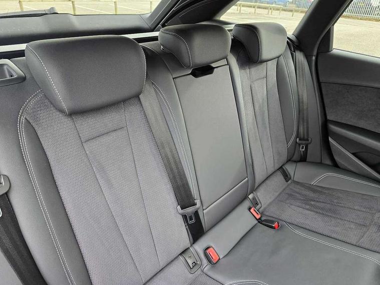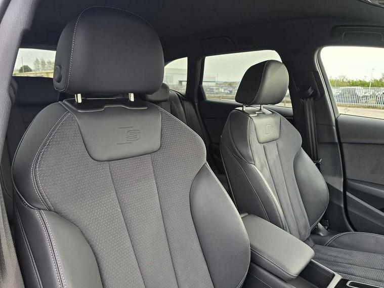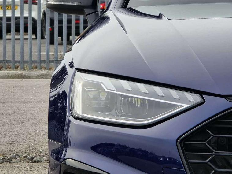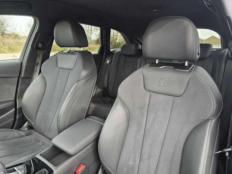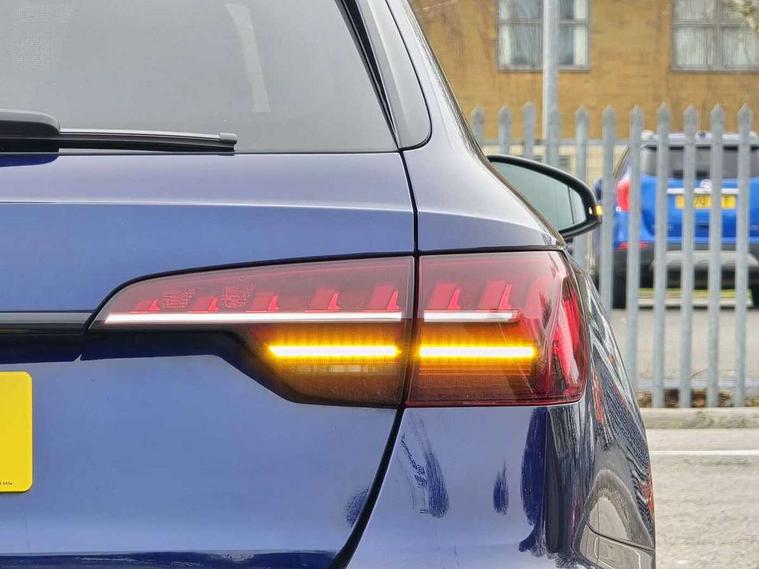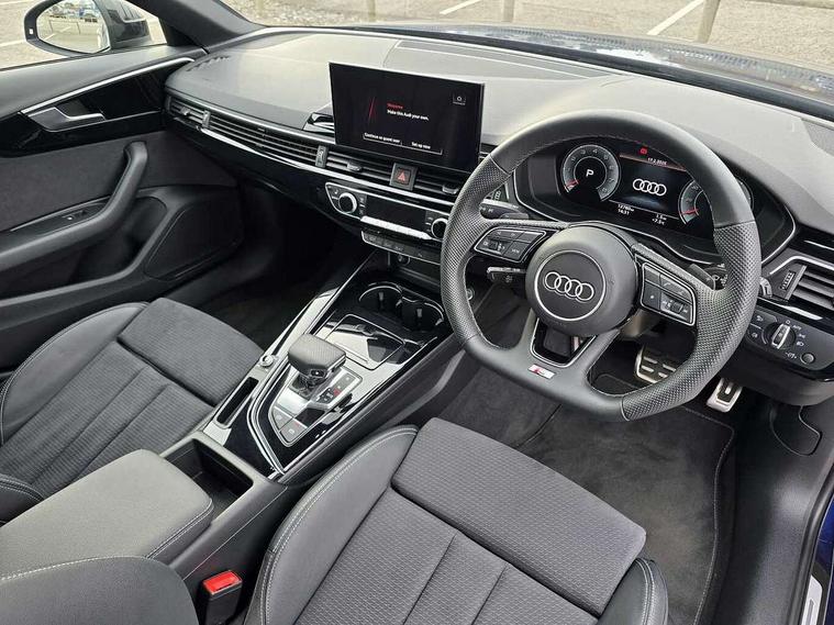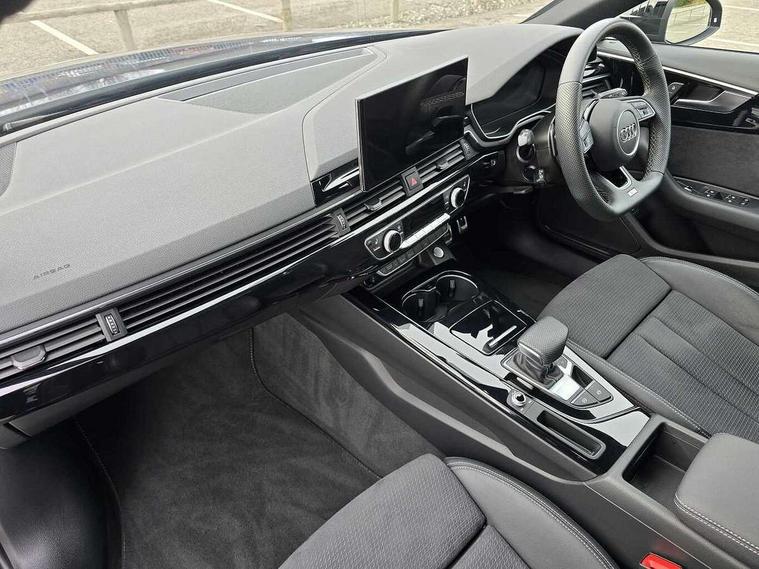 Audi connect safety and service (e-call), Audi drive select, Audi smartphone interface, Audi virtual cockpit, Automatic start-stop system with coasting functionality and efficiency programme, Bluetooth interface, Camera based traffic sign recognition, Electromechanical power steering, Email, calendar and text messages displayed via MMI, Front and rear parking sensors, Lane departure warning, MMI Navigation plus with MMI touch includes 10.1" high resolution colour MMI display, 3D map, Power operated tailgate, Rear view camera, Voice control system, 54 litre fuel tank, Sports suspension lowered by 23mm, 2 USB charging ports, 8 passive loudspeakers, DAB digital radio reception, Audi beam uses LEDs to project the audi logo onto the ground as you exit your A4, Auto dimming rear view mirror, Black Audi rings and black badging (model name in black badging, no engine badging), Body colour door handles, Body colour front spoiler lip, Body colour side sill trim, Electric adjustable/heated/folding door mirrors with auto dimming, Exhaust tailpipes in high dark chrome, Grained matt black side air inlets with matt aluminium silver inlay, High beam assistant, High gloss black B pillar trims and triangular rear door trim, LED headlights with LED rear lights + dynamic rear indicators + headlight adjustment and high beam, turning light + LED daytime running lights, LED third brake light, Privacy glass, Rain and light sensors, Rear diffuser in matt black with trim strip in matt aluminium silver, Rear side wing doors, Rear wiper, RS4 rear spoiler in body colour, S Line roof edge spoiler, Sport front and rear bumpers with side skirts, Variable intermittent front wash/wipe, Windscreen with acoustic glazing, 4 way electric lumbar support for driver and front passenger, 40/20/40 split folding 3 rear seat bench in 3 parts with rear centre armrest, Black carpets, Black cloth headlining, Black perforated leather gearknob, Contrast stitching on seats, steering wheel and gear lever gaiter, Deluxe 3 zone electronic climate control, Electric load area cover, Front and rear head restraints, Front centre armrest, Heated front seats, Illuminated door sill trims with S logo, ISOFIX child seat mounting and top tether, Manual seat adjustment, Single front passenger seat, Stainless steel pedals and foot rest, Tool kit, Black styling pack - A4 Avant, LED Interior light pack - A4/S4, 3 rear seatbelts, 6 airbags - Driver, front passenger, curtain and side windows, Attention and drowsiness assist, Electronic Stabilisation Control (ESC) including ABS, ASR and EDL, Hill hold assist, Multi collision brake assist, Pop-up bonnet for pedestrian protection, Pre sense city, Rear door child safety locks, Seatbelt monitoring, Warning triangle and first aid kit, Anti theft alarm, Anti theft wheel bolts, Central locking, Keyless Go, Piano black finish inlay, Tyre repair kit,
