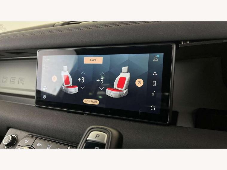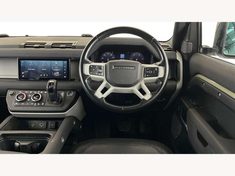 360 degree parking aid, 3D Surround Camera with 360 View, 180 Rear View, Front Traffic Detection, Forward Vehicle Guidance, Tow Hitch Assist and clear sight Ground View, Android Auto, Apple CarPlay, Assisted tailgate with soft close, Blind spot assist, Bluetooth system, Brake pad wear indicator, Clear exit monitor, Connected navigation pro, Driver condition monitor, Electric power assisted steering (EPAS), Lane keep assist, Push button start, Rear traffic monitor, Traffic sign recognition with adaptive speed limiter, Trip computer, Wade Sensing, 8 speed automatic transmission, All wheel drive system, Twin speed transfer box, DAB Radio (Digital Audio Broadcasting), Meridian 400w sound audio system with 11 speakers and subwoofer, Pivi pro connected, Automatic headlight levelling, Automatic headlights, Centre high mounted stop light, Electric heated/power fold door mirrors with approach lights and auto dimming driver side, Electric windows with one touch open/close and anti-trap, Follow me home lighting, Front fog lights, Heated rear window with timer, Heated windscreen, LED tail lights, Panoramic rear side glass, Privacy glass, Puddle lights, Rain sensing windscreen wipers, Rear fog lights, Rear wiper, Side hinged tailgate, Trailer stability assist, X-Dynamic badge, 12V power socket in loadspace, 3 seat bench in 2nd row, Alpine lights, Durable rubber cabin flooring, Durable rubber loadspace flooring, Footwell lights, Loadspace cover, Loadspace Hook, Multifunction steering wheel, Overhead stowage for sunglasses, Premium cabin lighting, Rear headrests, Rear ISOFIX, Rear reading lights, Single front passenger seat, Standard seat configuration, Storage glovebox, Sunvisors with illuminated vanity mirrors, Online pack with data plan - Defender, 5 x 3 point seatbelts, ABS, Brake hold function, Cornering brake control (CBC), Customer configurable autolock, DSC - Dynamic Stability Control, EBD - Electronic brakeforce distribution, Electric parking brake (EPB), Emergency brake assist, Emergency braking, ESP + traction control, Front airbags with passenger seat occupant detector, HDC - Hill descent control, Hill launch assist, Low traction launch, Remote for (e-Call, Optimised assistance call, InControl app, Climate, beep and flash and door), RSC - Roll stability control, Seat belt reminder, TPMS (Tyre pressure monitoring system), Alarm, Immobiliser, Intrusion sensor, Keyless entry, Locking wheel nuts,