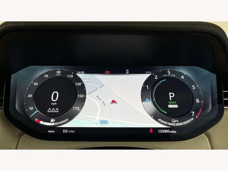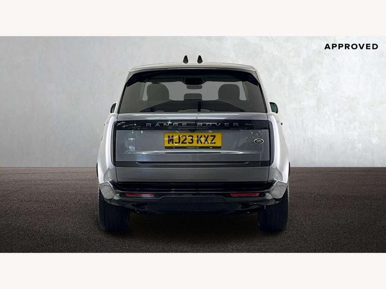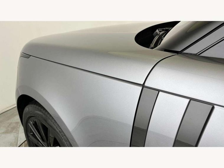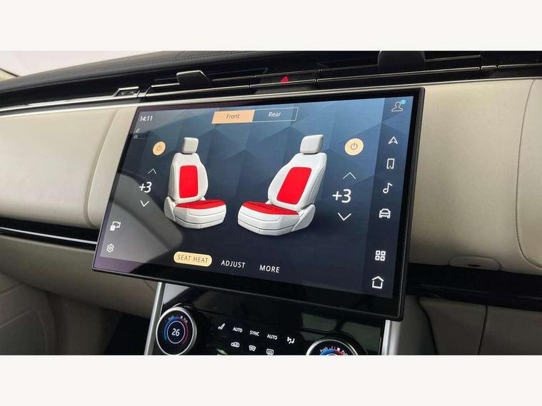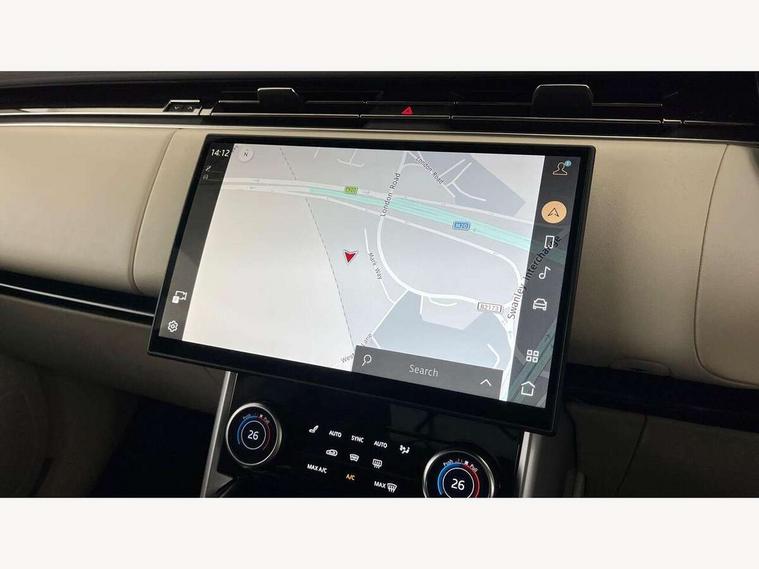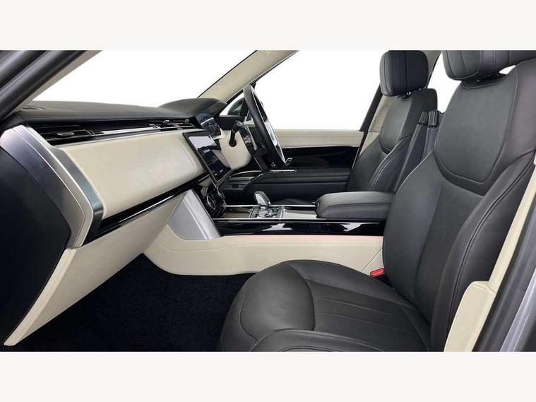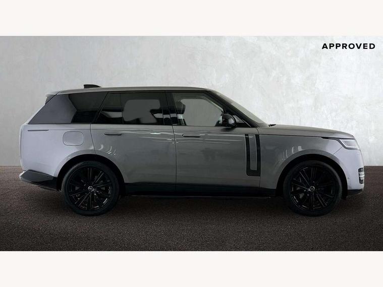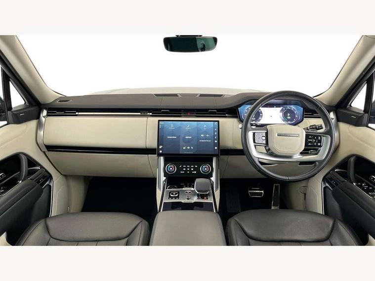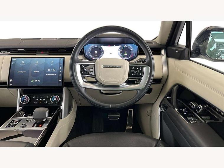 13.1" Touchscreen, 3D surround camera inc frwd traffic detection, vehicle clearance guidance, 3D view, clearsight ground view, manoevure light, 360 parking aid, wade sensing, Adaptive cruise control with steering assist, All Terrain Info Centre, All wheel steering, Android Auto, Apple car play, Blind spot assist, Bluetooth connectivity streaming, Driver condition response, Eco mode, Electric power assisted steering (EPAS), Emergency call service, Front and rear parking aid, Interactive driver display, Lane keep assist, Powered gesture tailgate/boot lid, Rear collision monitor, Rear traffic monitor, Remote, Traffic sign recognition with adaptive speed limiter, Wi-Fi Enabled with data plan, Wireless device charging with phone signal booster, 7 kW onboard charger, 8 speed automatic transmission, Active damper technology system, Adaptive dynamics, All terrain progress control, All Wheel Drive (AWD), Automatic access height, Home charging cable 5m Mode 2 including plugs, Public charging cable 5m Mode 2 including plugs, Terrain Response 2 Auto, Twin speed transfer box, Digital Audio Broadcast radio-DAB, Pivi pro including smart settings, Connected navigation pro, nuance speech, USB socket, Acoustic laminated windscreen, Animated directional indicators, Automatic headlights, Automatic levelling headlights, Centre high mounted stop light, Electric windows with one touch open/close and anti trap, Flush deployable exterior door handles, Front and rear recovery eyes, Front fog lights, Headlamp power wash, Heated rear window, Heated washer jets, LED tail lights, Power fold, auto-dimming, heated door mirrors with approach lights, Rain sensing windscreen wipers, Range rover badge, Rear boot, Rear fog lights, Rear side wing doors, Rear wash/wipe, Side repeater indicators in mirror, Trailer stability assist, Winter wiper park position, 12V power sockets, 3 seat bench in 2nd row, Air quality sensor, Bright metal pedals, Cabin lighting, Customer configurable single point entry, Driver and passenger front seat armrests, Easy boot loading, Ebony Carpet, Front and rear cupholders, Front and rear grab handles, Front head restraints, Gearshift paddles, Heated steering wheel, Hook in load space, Loadspace light, Luggage tie down in loadspace, Multifunction steering wheel, Rear centre armrest, Rear head restraints, Rear ISOFIX, Single front passenger seat, Twin blade sunvisors with Illuminated vanity mirrors, Upper and lower glovebox, Online pack with data plan - Range Rover, 3x3 point rear seat belts, Anti-lock braking system (ABS), Brake hold function, Cornering brake control (CBC), Customer configurable autolock, DSC - Dynamic Stability Control, Electronic brake force distribution, Electronic parking brake, Electronic traction control, Emergency brake assist, Emergency braking, Front airbags with passenger seat occupant detector, Front side airbags, Hill descent control, Hill launch assist, Low traction launch, Occupant protection assist, Power operated child locks, Roll stability control, Tyre pressure monitoring system (TPMS), Immobiliser, Intrusion sensor and alarm, Keyless entry, Locking wheel nuts, Remote central locking, Noble chrome controls,