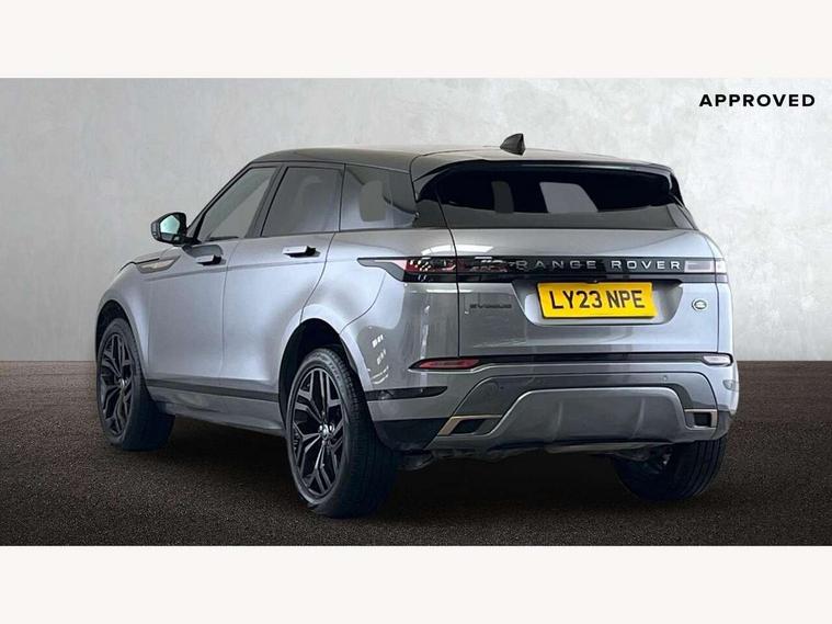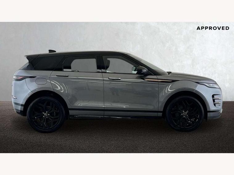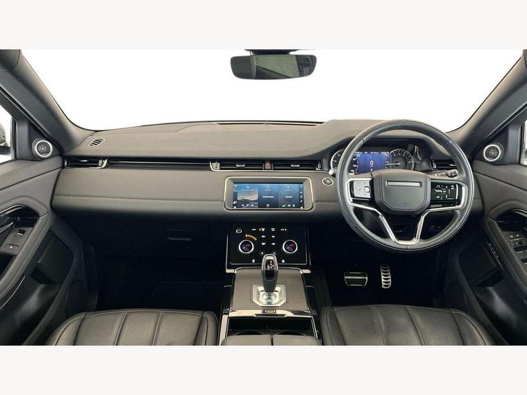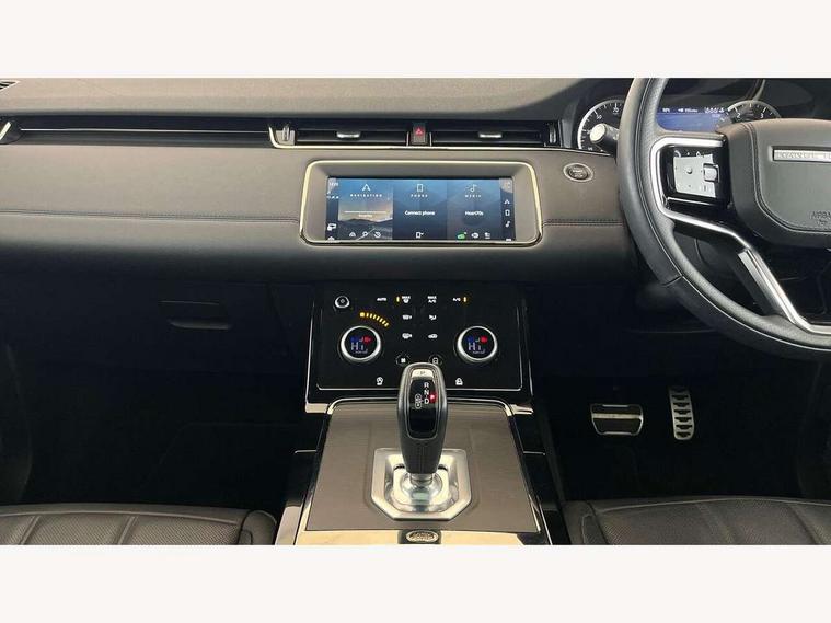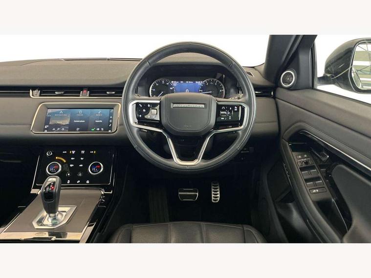 Adaptive cruise control, Android Auto, Apple car play, Blind spot assist, Bluetooth connectivity, Brake pad wear indicator warning light, Driver condition monitor, eCall emergency system, Electronic power assisted steering (EPAS), Front and rear parking aid, InControl remote, Land Rover InControl apps, Lane keep assist, Pivi pro connected includes upgraded infotainment, connected navigation pro, Nuance speech licence, Push button starter, Rear collision monitor, Rear traffic monitor, Traffic sign recognition with adaptive speed limiter, Voice control system, All terrain progress control, Efficient Driveline, Passive suspension, Terrain Response 2 Auto, Digital Audio Broadcast radio-DAB, Steering wheel mounted controls, Auto headlights, Automatic headlight levelling, Electric windows with one touch open/close and anti trap, Evoque and R-Dynamic badge, Flush deployable exterior door handles, Heated rear window with timer, Heated washer jets, Heated windscreen, Power fold, auto-dimming, heated door mirrors with approach lights and auto dimming driver side, Rain sensing windscreen wipers, Rear fog lights, Rear side wing doors, Rear wiper, Tailgate spoiler, Third brake light, 40:20:40 split folding rear seats with centre headrest and armrest, Ambient interior lighting, Bright metal pedals, Isofix system on outer rear seats, Overhead lighting console, Overhead stowage for sunglasses, Passive front head restraints, Rear air vents, Rear centre headrest, Rear head restraints, Satin chrome gearshift paddles, Single passenger seat, Sunvisors with illuminated vanity mirrors, Twin sliding front centre armrest, 3 rear 3 point seatbelts, Anti-lock braking system (ABS), Customer configurable autolock, DSC - Dynamic Stability Control, Electronic brake force distribution, Electronic parking brake, Electronic traction control, Emergency braking, Front and rear seatbelt reminder, Hill descent control, Hill launch assist, Low traction launch, Power operated child locks, Roll stability control, Six airbags - Driver and passenger airbags/driver knee airbag/front side airbag and curtain airbags, Torque vectoring brake, Tyre pressure monitoring system, Alarm, Immobiliser, Intrusion sensor, Keyless entry, Locking wheel nuts,