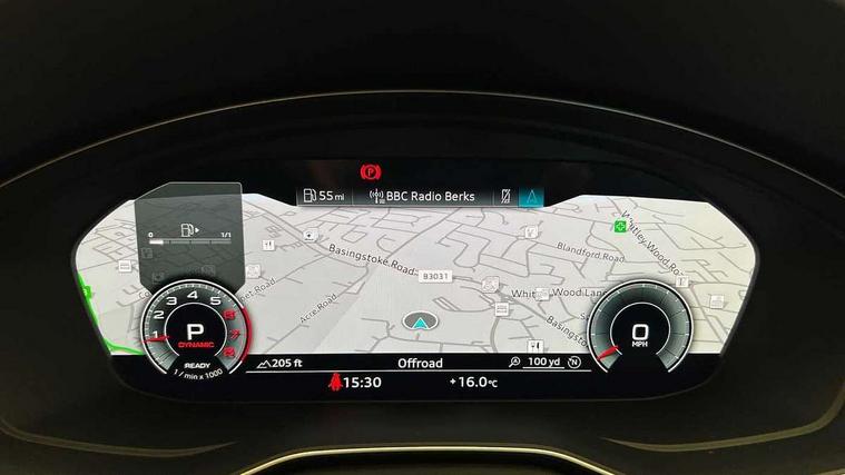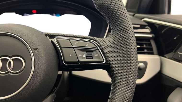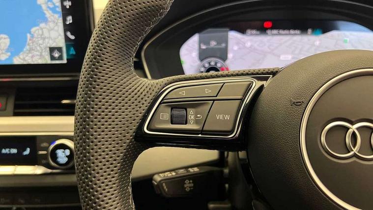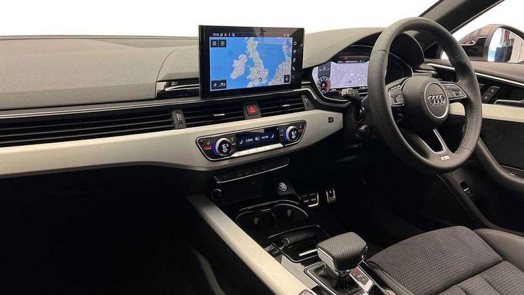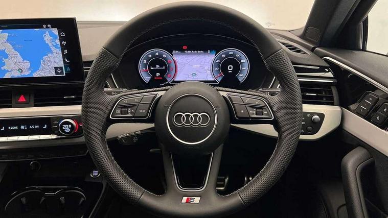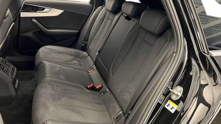 Audi connect safety and service (e-call), Audi drive select, Audi smartphone interface, Audi virtual cockpit, Automatic start-stop system with coasting functionality and efficiency programme, Bluetooth interface, Camera based traffic sign recognition, Electromechanical power steering, Email, calendar and text messages displayed via MMI, Front and rear parking sensors, Lane departure warning, MMI Navigation plus with MMI touch includes 10.1" high resolution colour MMI display, 3D map, Power operated tailgate, Rear view camera, Voice control system, 54 litre fuel tank, Sports suspension lowered by 23mm, 2 USB charging ports, 8 passive loudspeakers, DAB digital radio reception, Aluminium roof rails, Auto dimming rear view mirror, Body colour door handles, Body colour front spoiler lip, Body colour side sill trim, Body coloured door mirrors, Electric adjustable/heated/folding door mirrors with auto dimming, Grained matt black side air inlets with matt aluminium silver inlay, High beam assistant, Honeycomb structure radiator grille in grained matt black, LED headlights with LED rear lights + dynamic rear indicators + headlight adjustment and high beam, turning light + LED daytime running lights, LED third brake light, Matt aluminium silver tailpipe trim, Privacy glass, Rain and light sensors, Rear side wing doors, Rear wiper, S Line badges on the front wings, S line front and rear bumpers with side skirts, S Line rear diffuser in matt anthracite black with trim strip in matt aluminium silver, S Line roof edge spoiler, Variable intermittent front wash/wipe, Windscreen with acoustic glazing, 3 spoke high multi-function sports leather steering wheel grips in perforated leather with S badging including paddle shift, 4 way electric lumbar support for driver and front passenger, 40/20/40 split folding 3 rear seat bench in 3 parts with rear centre armrest, Black carpets, Black cloth headlining, Black perforated leather gearknob, Contrast stitching on seats, steering wheel and gear lever gaiter, Deluxe 3 zone electronic climate control, Electric load area cover, Front and rear head restraints, Front centre armrest, Heated front seats, Illuminated door sill trims with S logo, ISOFIX child seat mounting and top tether, Manual seat adjustment, Single front passenger seat, Stainless steel pedals and foot rest, High gloss package - A4, LED Interior light pack - A4/S4, 3 rear seatbelts, 6 airbags - Driver, front passenger, curtain and side windows, Attention and drowsiness assist, Electronic Stabilisation Control (ESC) including ABS, ASR and EDL, Hill hold assist, Multi collision brake assist, Pop-up bonnet for pedestrian protection, Pre sense city, Rear door child safety locks, Seatbelt monitoring, Warning triangle and first aid kit, Anti theft alarm, Anti theft wheel bolts, Central locking, Keyless Go, Matt brushed aluminium inlays, Tool kit, Tyre repair kit,