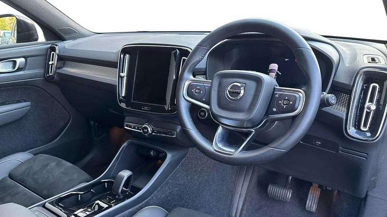 12.3" Progressive Driver Display, 9" centre console portrait touch screen, Adjustable steering wheel force, Android auto (Wired), Apple carplay (wired), Bluetooth handsfree system, Driver alert control, Driver assistance (pilot assist and adaptive cruise control), Driver awareness - Blind spot information system with steer assist, cross traffic alert with autobrake and rear collision warning and mitigation, E-call, Front park assist, Google automotive services - Enabled entertainment apps, navigation with google maps, voice recognition with google assistant, Hands free power tailgate, Intelligent speed assistance, Lane keeping aid, Oncoming Lane Mitigation, Rear park assist, Speed sensitive steering, Volvo cars services with app - Driving journal, emergency and breakdown call, engine remote start, remote door locking/unlocking and vehicle dashboard, Wireless/Inductive Mobile Phone Charging, Automatic transmission with start/stop and manual change functions, Dynamic chassis, DAB Digital radio, Steering wheel mounted remote controls, Adaptive brake lights with high level LED brake lights, Auto dimming feature for exterior door mirrors, Auto dimming interior mirror, Automatic headlamp levelling, Automatic LED Headlights + Active high beam incorporating daytime running lights, Colour coordinated auto folding and heated power door mirrors, Dark tinted windows - rear side windows and rear screen, Front aluminium tread plates, Front and rear electric windows, High gloss black front and rear skid plate, High gloss black front bumper deco, High gloss black front grille strikethrough and ironmark, High gloss black rear model, engine and volvo logo badges, High gloss black window trim, Home safe and approach lighting, Integrated roof rails in high gloss black, LED front fog lights, Puddle lights, Rain sensor with automatic windscreen wiper activation, Rear side wing doors, Rear wiper, Roof antenna, Roof spoiler, Visible VIN plate, 12V socket in front tunnel console and luggage compartment, 2-Zone electronic climate control with CleanZone air quality system and pollen filter, 3 seat bench in 2nd row, 3 Spoke tailored steering wheel with chrome trim, 60/40 versatile split folding rear seat, Centre console cupholders and storage, Charcoal headlining, Connect textile/microtech upholstery, Flexible load floor and grocery bag holder, Floor mats, Front cabin courtesy lights, Front door pocket, front cupholder, ambient front door, rear reading, rear courtesy, instrument panel and tailgate lighting, Front footwell illumination, Front headrests, Front reading lights, Front seat cushion extensions, Front side step illumination (under door), Glovebox bag hook, Heated front seats, Height adjustable passenger seat, Height/reach adjustable steering column, High gloss centre tunnel deco, Illuminated glovebox, Illuminated luggage compartment, Illuminated vanity mirrors + ticket holder, Integrated waste bin, Isofix attachments on outer rear seats, Load cover, Load protection net, Multi directional lumbar support for driver and passenger seat, Power driver seat with memory + exterior mirrors memory, Rear armrest with cupholders, Rear headrests, Single front passenger seat, Underfloor cargo storage, Climate pack without heated front seats - XC40, 3x3 point rear seatbelts, City safety with steering support with Pedestrian + cyclist + front collision warning with full auto brake and rear auto brake, Driver and passenger airbags, Drivers knee airbag, Electronic parking brake with auto hold, First aid kit, Front and outer rear seatbelt reminder and pretensioners, Front seats SIPS airbags, Hill descent control, Hill start assist, Inflatable curtain, Passenger airbag cut-off device, Power child locks on rear doors, Road sign information display, Run off Road Protection, SIPS (Side Impact Protection System), Slippery road and hazard light alert, Stability and Traction Control with Spin control, Engine Drag Control and Corner Traction Control, Tyre pressure monitoring system, Vehicle deceleration control with Anti-lock Brake System, Electronic Brake Distribution and Emergency Brake Assist, Warning triangle, WHIPS whiplash protection system - front, 2 x Key integrated remote control central locking including with deadlocking system and auto open/close windows, Anti-theft alarm including immobiliser/volume sensor + level sensor, Keyless drive includes keyless entry and keyless start, Locking wheel nuts, 20" 5 spoke high gloss black alloy wheels,