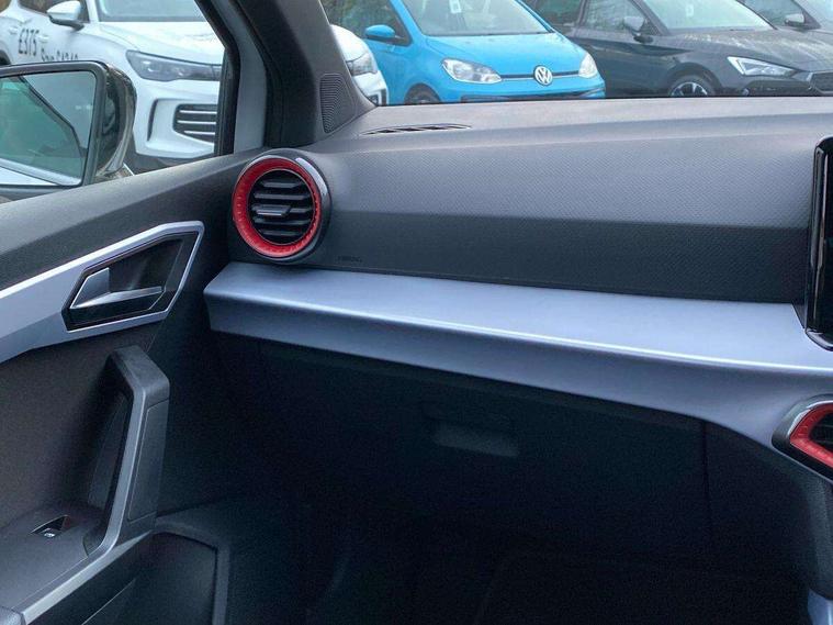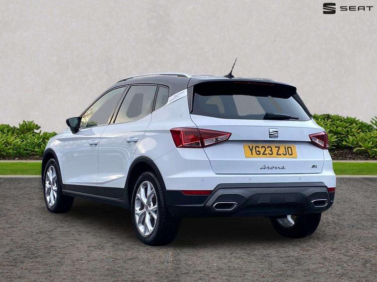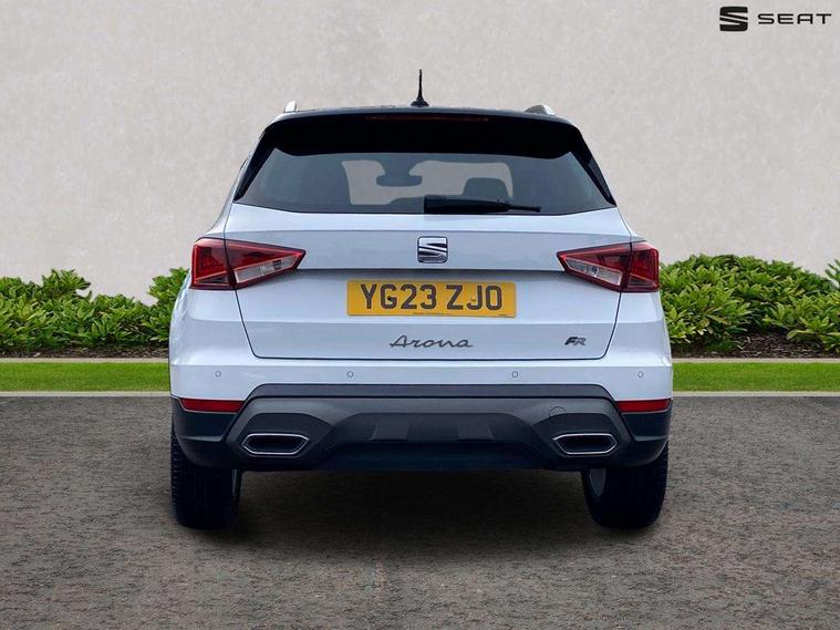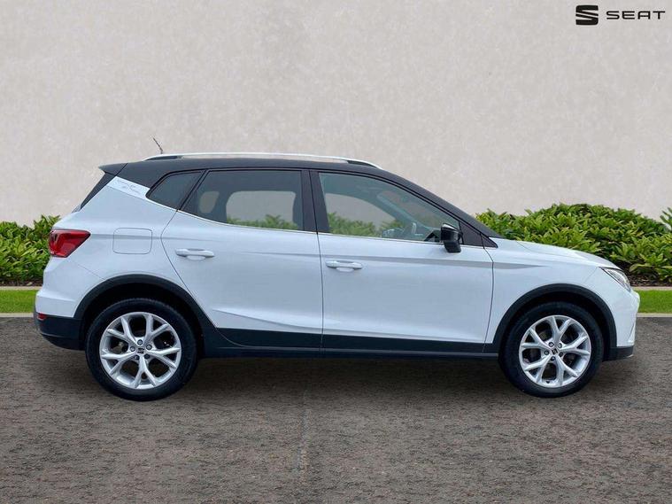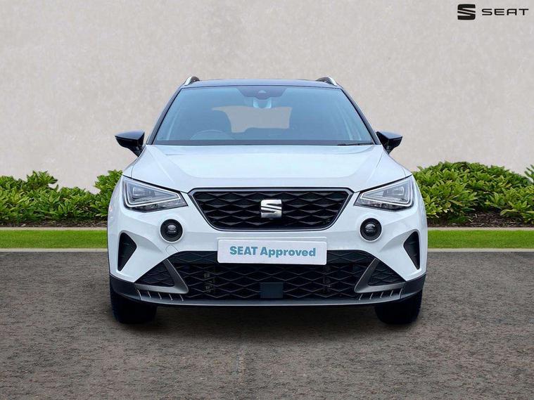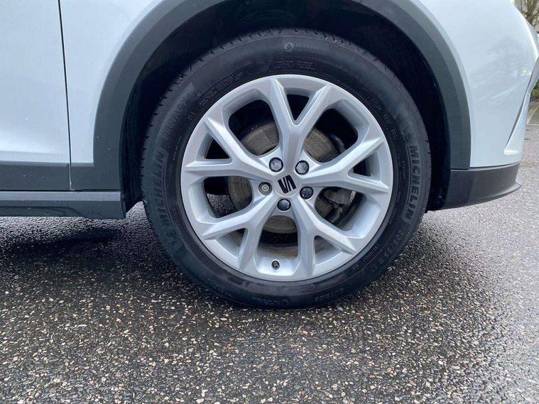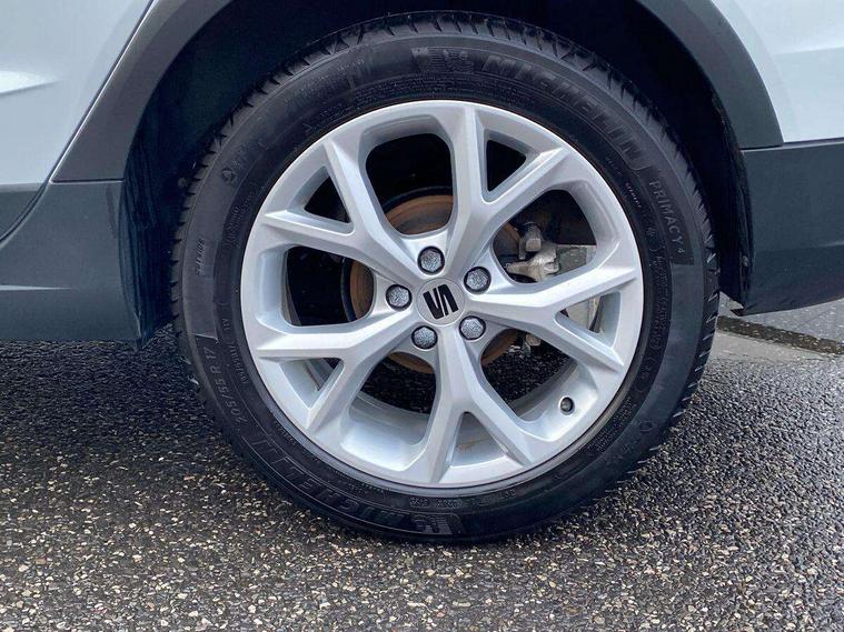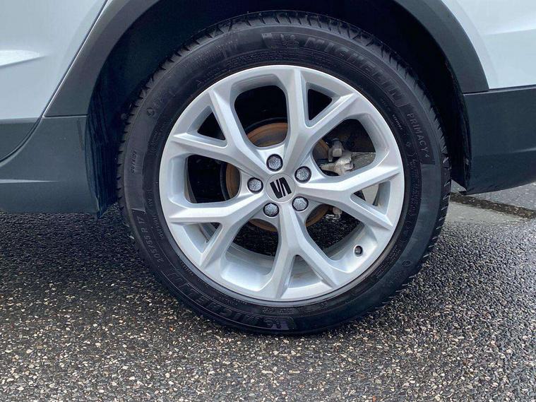 'Lights On' Reminder warning buzzer, 8" Digital cockpit, Digital clock, E-call, Electric speed sensitive power steering, Full Link Smartphone Integration with Mirror Link, Apple Car Play, Google Android Auto with USB Type C cable for Apple and Android compatibility, Lane keeping system, Low fuel warning light, Outside temperature display, Rear parking sensor, RPM counter, Seat connect with safety, service, remote and online, SEAT Drive profile - Four different models normal-sport-eco-individual, steering response, throttle response, Trip computer, Wireless phone charger, 9.2" colour touchscreen with navigation system, voice control and USB port (type c), Bluetooth interface for hands free and audio streaming, DAB digital radio and AM/FM radio, Steering wheel mounted audio controls, Anti theft roof antenna, Auto dimming interior rear view mirror, Automatic activation of hazard warning lights, Body coloured bumpers, Body coloured door handle inserts, Chrome roof rails and window surrounds, Dark tinted rear windows, Electric front/rear windows, Electrically adjustable, heated and folding door mirrors, Front fog lights with cornering function and rear fog light, FULL LED automatic headlights with dynamic headlight range control, coming and leaving home, LED daytime running lights, LED rear tail lights and licence plate lights, Protective side mouldings, Rain sensing wipers, Rear side wing doors, Rear spoiler, Rear window wash/wipe, Roof colour door mirrors, Third brake light, Twin exhaust pipe styling hidden exhaust pipe, Visible VIN plate, Windshield wiper with intermittent control and potentiometer, 2 cupholders, 3 seat bench in 2nd row, 60/40 split folding rear seat, Aircare filter, Black interior roof, Cloth upholstery, Double boot floor, Driver sunvisor with covered mirror + card holder, Dual zone climate control, Front courtesy light with 2x front and 2x rear reading lights, Front sport seats, Gear shift indicator, Height adjustable front seats, Height/reach adjustable steering column, Illuminated boot, Instrument lighting with brightness control, Interior ambient lighting, Interior light in footwell, central console and door panel, ISOFIX points in outer rear seats with top tether anchorage points, Passenger sunvisor with vanity mirror, Perforated flat bottomed leather steering wheel/gear knob/handbrake with red stitching and FR logo, Single front passenger seat, Two front and three rear height adjustable headrests, Interior chrome pack - Arona, 3 point seatbelts on all rear seats, ABS, Active front headrests, Child locks on rear doors, Driver and front passenger airbags with front passenger airbag de activation, front side and curtain airbags, Electronic stability control, Emergency Brake Assist (EBA) and front assist, Front and rear seatbelt reminder, Hill hold control, Multi-Collision braking, Tiredness recognition system, Traction control, Tyre pressure monitoring system, Alarm with back-up horn, Electronic engine immobiliser, Locking wheel bolts, Remote central locking + deadlocks, Tow away protection, Titan black dashboard, 17" Dynamic alloy wheels,