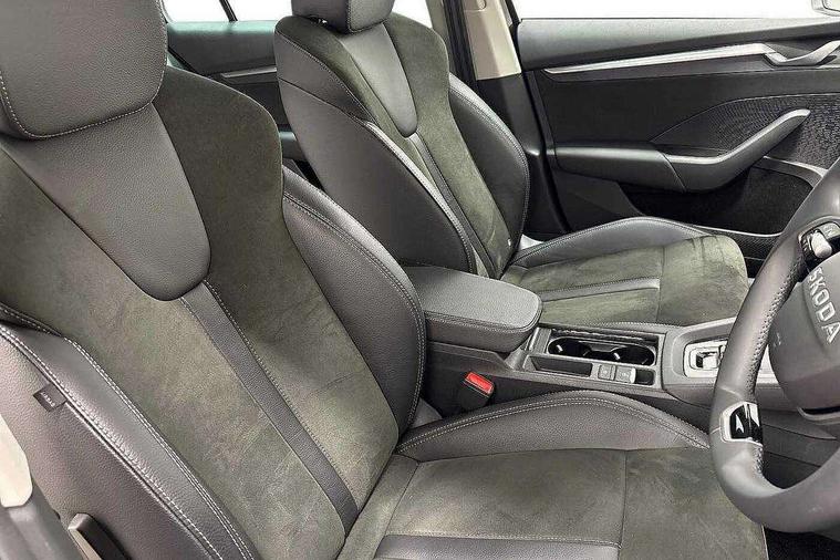 1x USB Typc C port in rear view mirror, 4x USB Type C ports - 2x in front centre console and 2x in rear (45W), Drive mode selection, Driver fatigue sensor, eCall emergency system, Electro-mechanical power steering, Front assist system, Traffic jam assist, Traffic sign recognition, Turn Assist, Virtual Cockpit - 10.25" digital display, Voice control system, Wireless charging (15W) with cooling function, Wireless SmartLink for Apple CarPlay and Android Auto, 13" touchscreen display with navigation, DAB Digital radio, Aero front windscreen wipers with intermittent function, Auto dimming rear view mirror, Body colour bumpers, Body colour door mirrors and handles, Chrome grille surround, Chrome roof rails, Chrome strip in lower front bumper, Chrome window surrounds, Electric front and rear windows, Heated rear windscreen, High level third brake light, Ice scraper in fuel cap, LED daytime running lights, LED Headlights, Logo projection in front doors, Rain and light sensors, Rear fog light on one side, Rear privacy glass, Rear side wing doors, Rear spoiler, Rear window wiper, 12 volt socket in boot, 3 rear headrests, 3 seat bench in 2nd row, 4 foldable roof handles, Electric auxiliary air heater, Front head restraints, Heated front seats, Illuminated glovebox, Interior door handles in dark chrome, Jumbo Box storage, Luggage compartment lighting x2 lights, Mechanical rear seat release from boot, Single front passenger seat, Steering wheel in black leather with black stitching, Storage compartments in left and right of boot, Sun visors with mirrors, Sunglasses storage, Ticket holder, Umbrella in door panel, Unsplit rear bench seat, split folding backrest with centre armrest with cupholder, Comfort package - Octavia Estate, Simply clever package premium with Storage compartment under passenger seat - Octavia, 3x3 point rear seat belts, Alarm with interior monitoring, tilt sensor and back up horn, Curtain airbags and front side airbags, Driver and front passenger airbags, Drivers knee airbag, Electronic parking brake, ESC including ABS, EBV, MSR, ASR, EDS, HBA, DSR, Front central airbag, Hill hold assist, ISOFIX on front passenger seat and outer rear seats, Passenger airbag deactivate switch, Three point seat belts in front and rear, Two tone horn, Tyre pressure monitor, Visual and acoustic seat belt reminder, Warning reflectors in front door, Anti-theft wheel bolts, Keyless start/stop, Remote central locking, Chrome air vent surrounds,