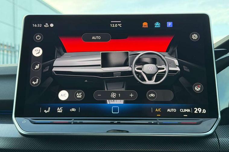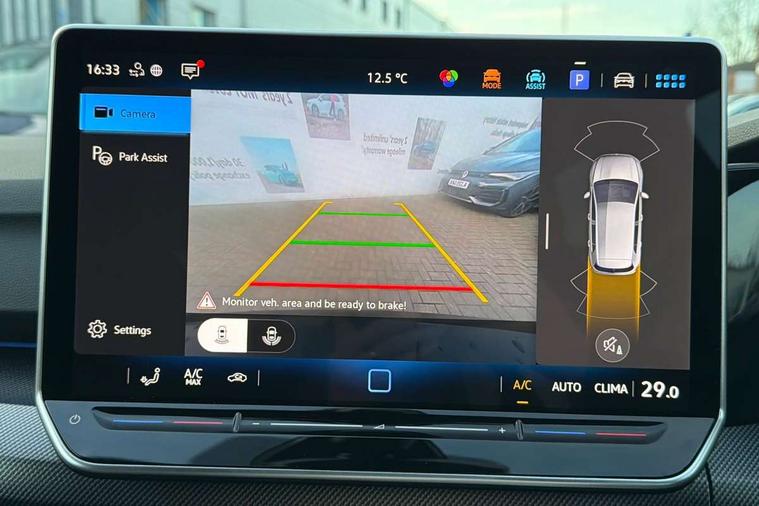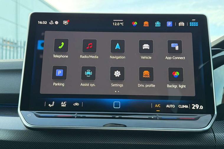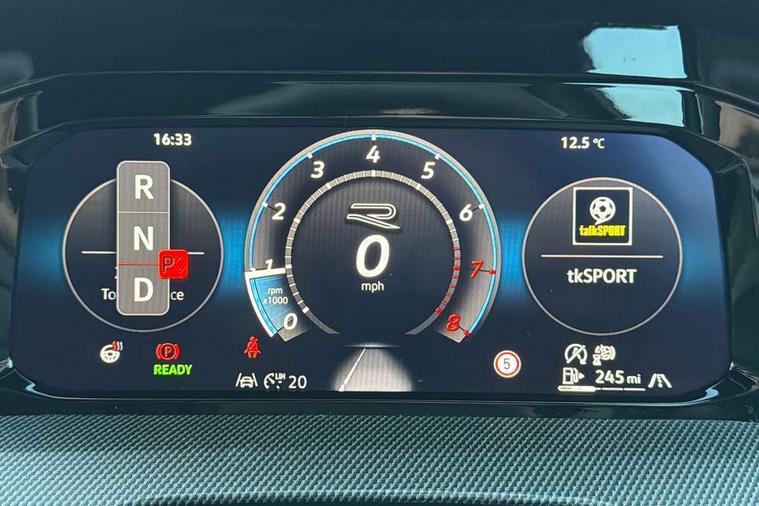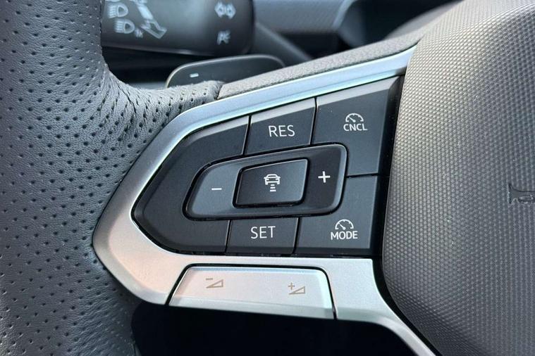 Activated carbon canister, Adaptive cruise control (ACC), Advanced driver attention and drowsiness monitor, Dynamic road sign display, Dynamic steering, E-Sim card for online connectivity, eCall emergency call system, Multi-color Digital cockpit pro, selection of different info profile possible, Multifunction front facing camera for distance control, Navigation system, Oncoming vehicle braking when turning including swerve support, Speed limiter, Speedo, rev counter, electronic odometer, trip, service interval display, exterior temperature and fuel gauge, Traffic jam assist, Voice enhancer and voice control, Warning signal and warning light for front and rear seatbelts not fastened, We connect plus preparation, We connect preparation, Wireless app connect, Hybrid propulsion system, Petrol Particulate Filter, Start-stop system with battery regeneration (recuperation - energy recovery during braking), XDS electronic differential lock for improved traction and handling, 2 USB C ports in front, 2 USB charging sockets on the centre console in the rear charging capacity upto 45W, Digital radio reception (DAB), Diversity antenna for FM reception, Gaming platform via car app, Infotainment system with 12.9" display, Mobile phone interface with inductive charging feature, 3rd brake light, Automatic headlamp activation with Coming home and Leaving home feature, Body colored bumpers in R-Line style, Body colour door handles, Exterior mirrors convex on the left and aspherical on the right, Front and rear electric windows, Heat insulating windshield made of laminated glass, LED separate daytime running light, Rear exhaust tailpipe, Rear fog light on one side and reversing lights on both sides, Rear side wing doors, Rear windscreen washer and wiper with interval delay, Remote electrically foldable door mirrors, puddle lights and reverse activated passenger's door mirror, Welcome light with surround lighting, 12V socket in front centre console, 12V socket in luggage compartment, 3 rear head restraints, 3 seat bench in 2nd row, Ambient lighting with 30 colour including LED light unit in front footwell with selectable light colour, Black roof lining, Brushed stainless steel pedals, Chrome plated radiator grille inserts, air vent surrounds and light switch surrounds, Door insert, side trim panel and arm support in leatherette, Front + rear black carpet mats, Front centre armrest, Front seat lumbar support adjuster, Integrated front head restraints, ISOFIX anchors for child seats on outer rear bench seats and on front passanger seat compatible for i-Size, Luggage compartment lighting, Manual height adjustable front passenger seat, Manually height adjustable driver seat, Plastic gear knob, Premium sports seats in front, Rear cupholder and loadthough, Sardegna cloth upholstery with front and outer rear seats Art Velour inner sides of bolsters, Single front passenger seat, Split folding backrest with centre armrest and unsplit rear seat bench, Sun visors with illuminated vanity mirrors, Titanium black instrument panel, 3 point height adj front seatbelts + pretensioners, 3 rear three point seatbelts, ABS, Autonomous emergency braking front assist with pedestrian and cyclist monitoring, Child locks on rear doors, Driver and front passenger airbag with front passenger airbag deactivation, Electronic parking brake with auto hold, ESC (Electronic Stability Control), Extended pedestrian protection measures, Hill start assist, Rear disc brakes, Two tone horn, Tyre pressure loss indicator, Volkswagen roadside assistance, Anti theft wheel bolts, Preparation for alcohol interlock, Decorative inserts carbon grey for dashboard and front door trim panels, Tool kit for tyre mobility set, Tyre mobility kit Includes 12V compressor and tyre sealant,