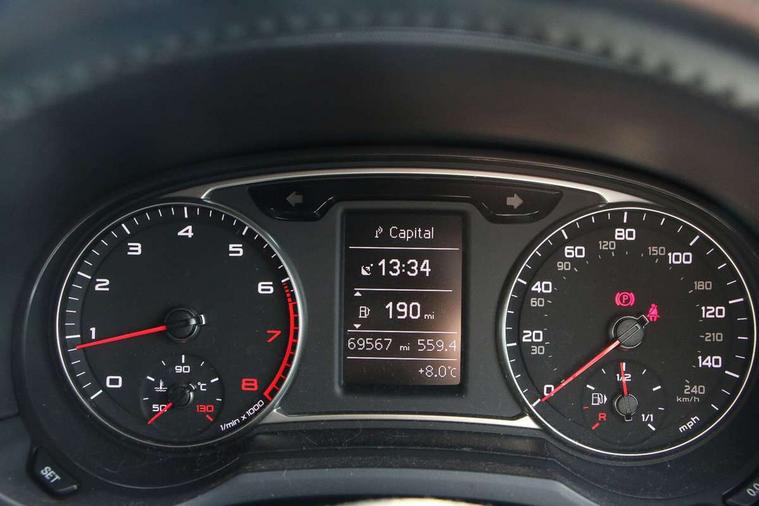 Audi drive select, Electro-mechanical PAS, Low washer fluid indicator, Service interval indicator, Voice control system, Additional SD card reader, Audi music interface, Bluetooth audio streaming, DAB Digital radio, Adaptive brake lights, Electric adjustable door mirrors, Electric front windows, Electric rear windows, Front fog lights, Heat insulating glass, Heated door mirrors, Heated rear windscreen, Rear wiper, 12V Accessory socket in centre console, 3 spoke leather multifunction sports steering wheel, Adjustable rear head restraints, Cupholders in centre console, Door sills trims with aluminium inlays, Front floor mats, Front head restraints, Front sports seats, Height adjustable front seats, Illuminated glovebox, Isofix attachments on outer rear seats, Jack and tool kit, Leather handbrake, Lumbar adjustment for front seats, Rake/reach adjustable steering wheel, Split folding rear seats, ABS/EBD, Brake assist function, Driver and passenger side airbags, Driver/Front Passenger airbags, EDL, ESP with ASR, First aid kit, Front and rear seatbelt reminder, Front passenger airbag deactivation, Head airbags, Height adjustable front seatbelts, Tyre pressure monitor, Warning triangle, Locking wheel bolts, Remote control central locking, Thatcham category 1 alarm + immobiliser, Tyre repair kit,