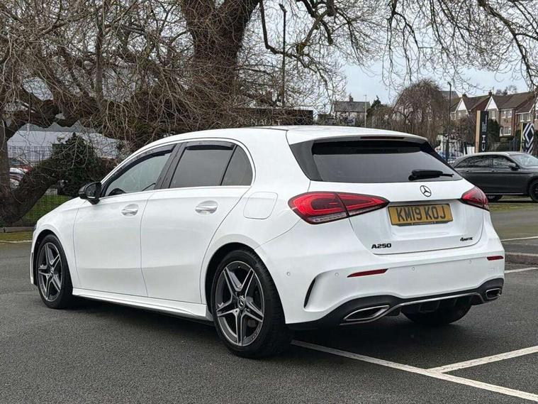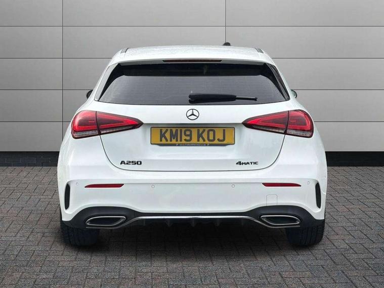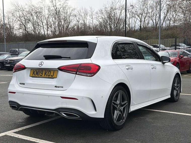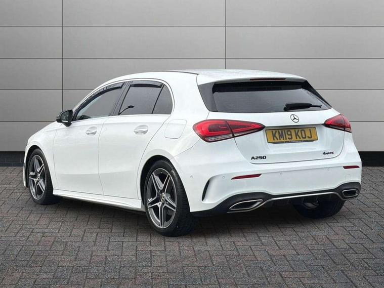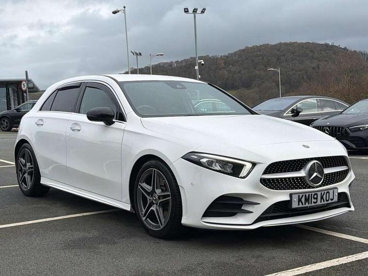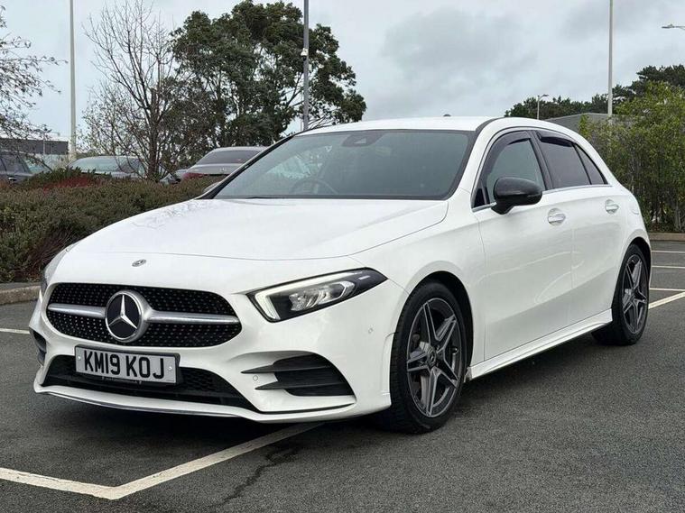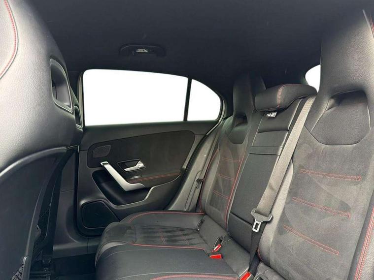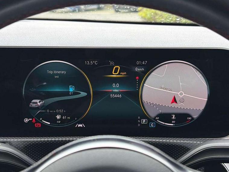 180 degree rear view camera with parking guidelines, 7" colour screen in instrument panel, 7" touchscreen media display, Active lane keep assist, Attention assist, Brake pad wear indicator warning light, Cruise control + speed limiter, Direct steering, DYNAMIC SELECT with a choice of driving modes (ECO, Comfort, Sport and Individual), Fluid level warning indicator for fuel, oil, coolant and washer fluid, Hard-disk navigation, Lamp failure indicator, Mercedes me connect including emergency call system, accident recovery, breakdown and maintenance management, Outside temperature gauge, Radio aerial integrated into roof spoiler, Service indicator (ASSYST), Speed sensitive power steering, Stop/start system, Trip computer, Voice activation, Lowered sports suspension, DAB Digital radio, Dual bluetooth interface, 2 USB ports (type C), MBUX multimedia system with DAB digital radio and touchpad including satellite navigation, Adaptive brake lights, AMG front, rear apron and side skirts, Body colour bumpers, Body colour door handles, Body colour side skirt, Body coloured door mirrors, Chrome beltline trim, Diamond radiator grille with chrome pins and silver louvre + chrome insert, Electric adjustable and heated door mirrors with integrated LED side indicators, Electric front windows, Electric rear windows, Exhaust system - Twin trapezoidal tailpipes in polished stainless steel, Headlamp assist automatic headlamp activation, Heated glass rear windscreen + timer control, LED high performance headlamps with integrated LED daytime running lights, LED tail lamp, LED third brake light, Rain sensor windscreen wipers, Rear fog lights, Rear wiper, 1/3 to 2/3 split folding rear seats, 12V socket, 3 Spoke flat bottom leather multi function steering wheel with perforated leather in grip area, Air vents surround and cruciform nozzle in silver chrome, AMG floor mats with red stitching, Artico man-made leather/Microfibre Dinamica upholstery with red contrast stitching, Auto Mercedes-Benz child seat recognition sensor, Black roof lining, Brushed stainless steel sports pedals with rubber studs, Controller on centre console with chrome surround, Cup holder and stowage compartment lighting, Exit lights, Front centre armrest with storage compartment, Front door sills with Mercedes Benz lettering, Front doors with ambient and signal light, Front footwell lights, Front reading lamps, Front seat backs luggage nets, Front seat cushion length adjustment, Front signal exit lamp, Front vanity lights, Gearshift paddles on steering wheel, Handle recess/closing light, Height/reach adjustable steering column, Illuminated glovebox, ISOFIX Child seat top tethers and anchor fixings, Load securing rings in luggage compartment, Luggage compartment cover, Manual height adjustable front seats, Oddments tray lighting, Rear head restraints, Rear Reading Lamps, Seat occupancy sensor for front passenger seat, Sports seats with integrated headrests, Storage compartment under load area floor, Sunvisors with illuminated vanity mirrors, Touchpad, Touchpad illumination, Twin front cupholders, Two zone thermotronic luxury automatic climate control, Seat comfort pack - A Class, 3 rear 3 point seatbelts, ABS with Brake Assist, Active bonnet, Active brake assist includes forward collision warning system with autonomous braking, Adaptive brake assist with hold function and hill start assist, Brake calipers with Mercedes-Benz lettering + perforated brake discs, Childproof locks manually operated for rear doors and electrically operated for rear power windows, Crash responsive emergency lighting, Driver and passenger head and side airbags, Drivers knee airbag, Dual stage driver/passenger airbags, Electronic parking brake, ESP curve dynamic assist, ESP with ASR, Front and rear seatbelt reminder, Tyre pressure monitoring system, Warning triangle and first aid kit, Window airbags, Alarm system/interior protection/immobiliser, Keyless Go, Remote central locking and crash sensor with emergency opening function, Chrome air vent surrounds, 18" AMG 5 twin spoke light alloy wheels in titanium grey with highsheen finish, Tirefit sealant kit,