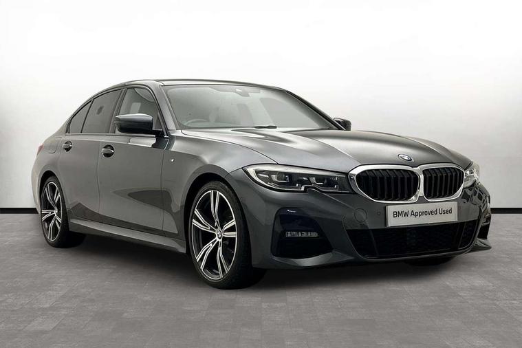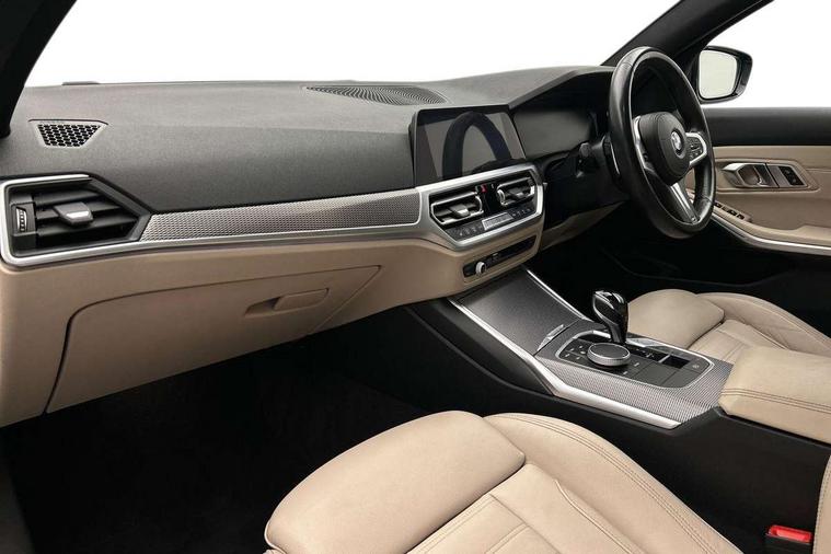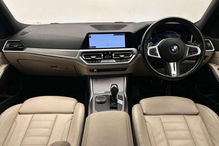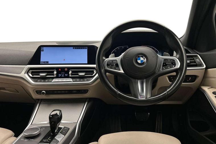 Active guard plus, Attentiveness assist, Auto start-stop, BMW ConnectedDrive online services, BMW iDrive controller on centre console, BMW Live Cockpit Professional sat nav system including 10.25" high resolution display and Intelligent Voice Assistant, BMW service history, BMW Teleservices, Brake pad wear indicator in front and rear, Check Control warning system for monitoring of lights and door/luggage compartment open warning, Condition based service, Electric power steering with Servotronic steering optimised at all speed ranges, Instrument cluster with speedometer with mph readout, tachometer, fuel gauge and oil temperature gauge, Integrated owners handbook, Oil sensor for level and grade, warning by check control system, On board computer - average speed+fuel consumption, service interval, clock/date, odometer/trip meter, outside temperature display and ice warning, Optimum shift indicator, Personal Profile - automatic lock when driving away selectable, Variable sport steering, Balanced 50/50 weight distribution, Battery cut-out switch, Drive performance control - ECO PRO, comfort and sport modes, Electronic differential lock control (EDLC), Larger capacity fuel tank, M sport suspension, Petrol Particulate Filter, Sport automatic transmission with steering-wheel mounted gearshift paddles and launch control, Stroke dependent dampers, DAB tuner, Electronic service booklet, Acoustic glazing, Active airstream chrome frame kidney grille with 8 high gloss black vertical slats, Automatic headlight beam throw control with load dependent regulating reaction, dynamic compensation of braking dive and acceleration squat, Black roof mouldings, Body colour - fuel filler flap, front and rear bumpers, door handles and mirror caps with integrated turn indicator + bottom segment in matt black, Dynamic brake lights, Electric windows - front and rear, with open/close fingertip control, anti-trap facility and comfort closing, Exhaust tailpipe - split left and right, Extended LED headlights, Exterior mirrors - electrically folding with anti-dazzle, Fading support, Front and rear bumper system with replaceable deformation elements, Front black door sill finishers with BMW designation, Green tinted heat protection glazing, High gloss shadow line exterior trim, Interior rear view electrochromatic mirror with automatic anti dazzle function, LED front fog lights, Lightweight engineering, M designation on front side panels, left and right, Matt black exterior B pillar, Model designation on right side of tailgate, Rain sensor with automatic headlight activation, Rear wiper, Shark fin antenna, Two part LED tailights in L-shape with components in smoked glass, brake light, LED turn indicator and rear fog light, Visible VIN plate, Welcome lights in interior and door handle area, Windscreen wipers with integrated washing jets, 12V power socket in front storage compartment, 2 front cupholder in centre console with clamping elements and matt black inlay, 3 rear seats with non folding headrests with 3 point seat belts, 3 zone automatic air conditioning, 4 pieces lashing eyelets in luggage compartment, 40:20:40 split folding rear seat with loading system, Ambient lighting with welcome carpet light, Anthracite headlining, Armrest integrated in front and rear door trim + front centre console armrest, Centred top Luggage compartment lights, Four grab handles integrated in roof lining, Front and rear door exit lighting (left / right), Front and rear door pockets, Front and rear reading lights, Front and rear velour floor mats, Front head restraints, Front sport seats, Heated driver and front passenger seats, Height adjustable mechanically and infinitely variable steering column, Illuminated armrest storage compartment, Illuminated glove compartment with separate small compartment, Interior lighting - front centre over interior mirror with soft light, rear centre and front and rear footwell lighting, M Sport multifunction leather steering wheel, Make-up mirror lights, Rear centre armrest with 2 cupholders, Rear centre console with storage compartment and ventilation grille, Sunvisors with vanity mirrors and ticket pocket, Toolkit located in luggage compartment, Connected pack professional - 3 Series Saloon/Touring, M Aerodynamics pack - 3 Series Saloon/Touring, 2 tone horn, BMW emergency call, Brake energy regeneration, Braking pre-tensioning, Child proof locking system in rear door, Child seat ISOFIX attachment rear outer seats, Coasting in idle in ECO PRO mode, Crash sensor activating of airbags, Unlocking doors, hazard warning lights, interior light, safety battery terminal, Driver and front passenger side airbags, integrated in the door side seat backrest bolsters for all seat variants, Driver/Front Passenger airbags, Dry braking, Dynamic brake control, Dynamic stability control + (DSC+) - Anti-lock Braking System (ABS) with brake assist and cornering brake control + Automatic Stability Control (ASC), Dynamic Traction Control - DTC, Electric parking brake including automatic hold function and automatic release of the parking brake when driving off, Front passenger manual airbag deactivation, Head airbags for all 4 outer seats, Hill start assist, Seat belt security check for driver and front passenger, Side impact protection, Three 3 point seat belts on all seats including front belt stopper, pyrotechnic belt tensioners and belt force limiters, Tyre pressure monitoring with three level warning strategy, Ventilated front and rear disc brakes, Warning triangle and first aid kit, Alarm system (Thatcham 1) with remote control and electronic engine immobiliser, Central locking switch for all doors, fuel filler cap and luggage compartment, Remote control with integrated key one button open/close vehicle and windows, sole opening of the luggage compartment lid and panic mode, Start/stop button with Comfort Go keyless engine start and auto Start/stop deactivation button, Vehicle key with M specific designation, Reduced rolling 
