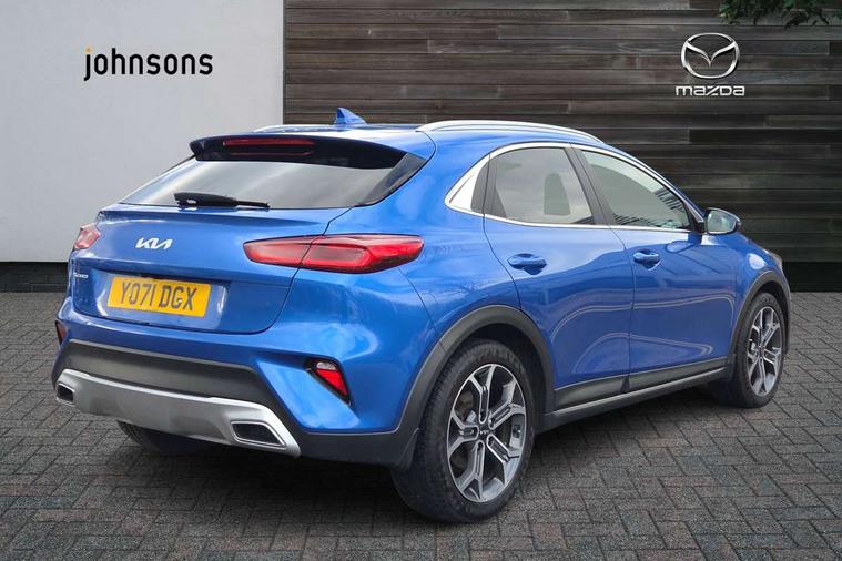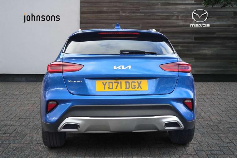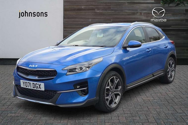 10.25" touchscreen satellite navigation with telematics, 4.2" supervision colour cluster display, Android auto with voice control, Apple car play with voice control, Bluetooth with Voice Recognition & Music Streaming, Cruise control + speed limiter, Driver attention warning, Forward Collision-Avoidance Assist (FCA) - City/Pedestrian, Kia connected services featuring TomTom live, Lane keep assist, Motor driven power steering, Reversing camera with dynamic guide lines, Trip computer, UVO connect, Intelligent Stop and Go, 7 speakers, DAB Radio with MP3, Front USB port, Steering wheel mounted controls, All-round Electric Windows with Auto Up & Down Function, Automatic headlights, Black wheel arch extensions, Body colour bumpers, Body colour exterior door handles, Body colour side sill mouldings, Body coloured door mirrors with matt black lower housing, Body coloured rear spoiler, Body coloured shark fin antenna, Electrically folding, adjustable and heated door mirrors with integrated LED indicator lights, Heated rear window with timer, High beam assist, High Gloss Black and Satin Chrome Radiator Grille, LED Bi-Function projection headlights, LED daytime running lights, LED High-mounted Brake Light, LED rear fog light, LED rear lights, Premium paint, Privacy glass - Rear windows and tailgate, Projection front fog lights, Rear wiper, Satin chrome window surround, Silver roof rails, Smaller XCeed badge on rear left hand tailgate, Tinted glass, Wide view drivers door mirror, Windscreen Washer Level Warning, 12V power socket in front console (x2), 12V socket in luggage compartment, 60/40 split folding rear seat, Air conditioning, All-round height adjustable headrests, Centre console with cupholders and sliding cover, Centre Console with Storage Box and Sliding Armrest, Chrome interior door handles, Cloth/faux leather upholstery, Driver + front passenger electric lumbar support, Driver's seat height adjuster, Faux leather door trim, Front and rear door storage, Front cabin map light with sunglasses case, Front Passenger Seat Height Adjuster, Front seat and rear pockets, Illuminated driver and front passenger sunvisors with vanity mirror, ISOFIX Child seat top tethers and anchor fixings, Leather steering wheel and gearshift, Luggage area light, Luggage area parcel shelf, Luggage hooks, Rear cabin light, Rear centre armrest with cupholders, Tilt/telescopic adjustable steering wheel, ABS with Electronic Brakeforce Distribution (EBD) and Brake Assist System (BAS), All round 3-point seatbelts, Dual front side airbags, Dual horn, Electronic parking brake, Electronic stability control (ESC) and vehicle stability management (VSM), Front passenger airbag cut off switch, Height adjustable front seatbelts, Hill start assist control (HAC), Impact sensing auto door unlocking, Rear door child safety locks, Seatbelt reminder warning, Traction control, Twin curtain airbags, Twin front airbags, Tyre pressure monitoring system, Alarm system, Engine Immobiliser & Deadlocks, Keyless entry with keyhole illumination, Locking wheel nuts, Remote central door locking with fold away key, 18" Alloy wheels, Tyre mobility kit,