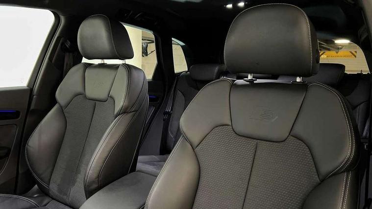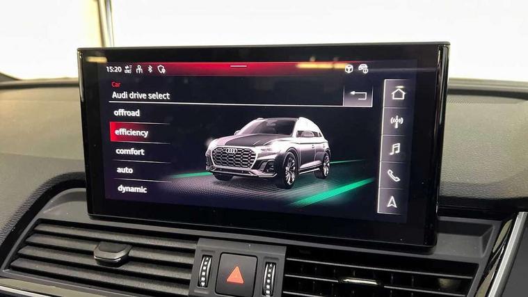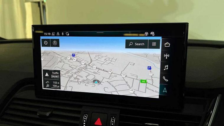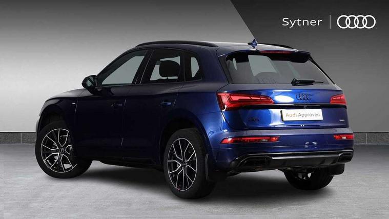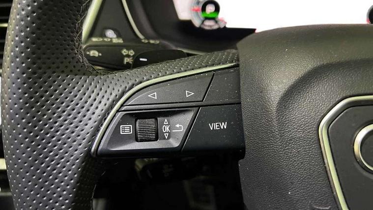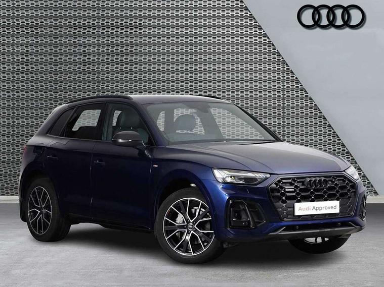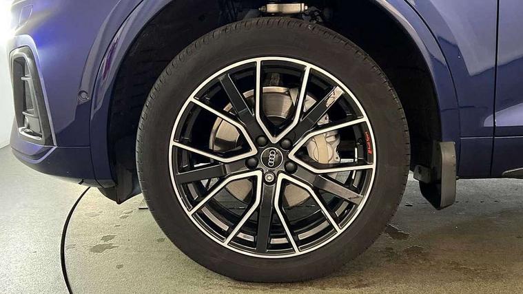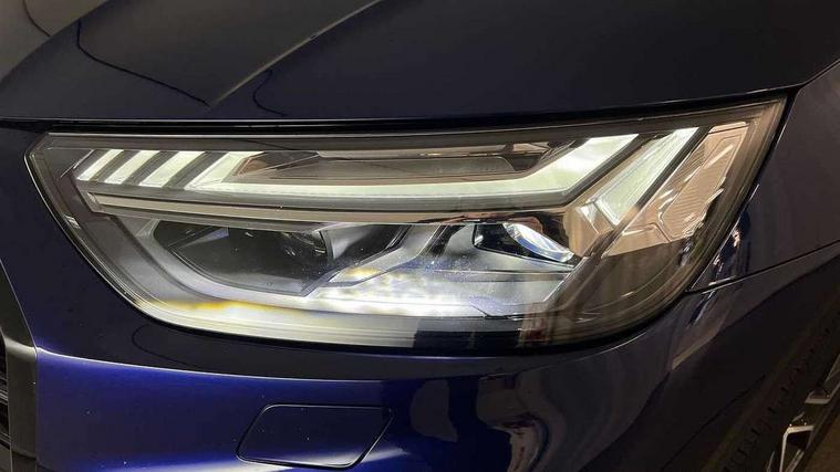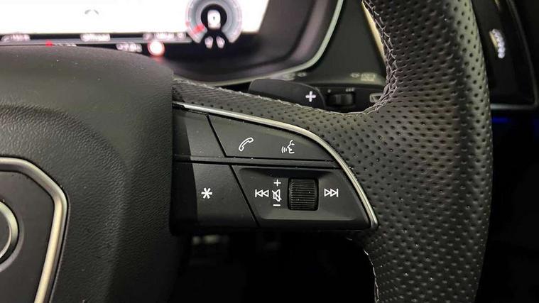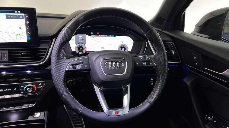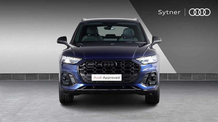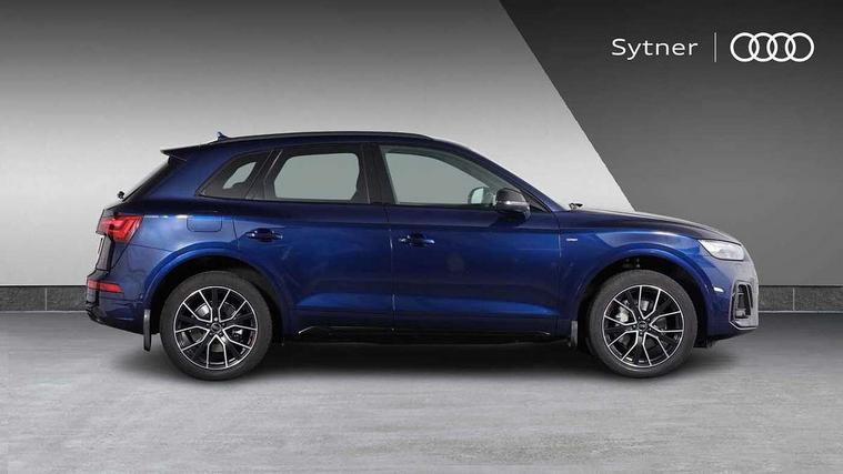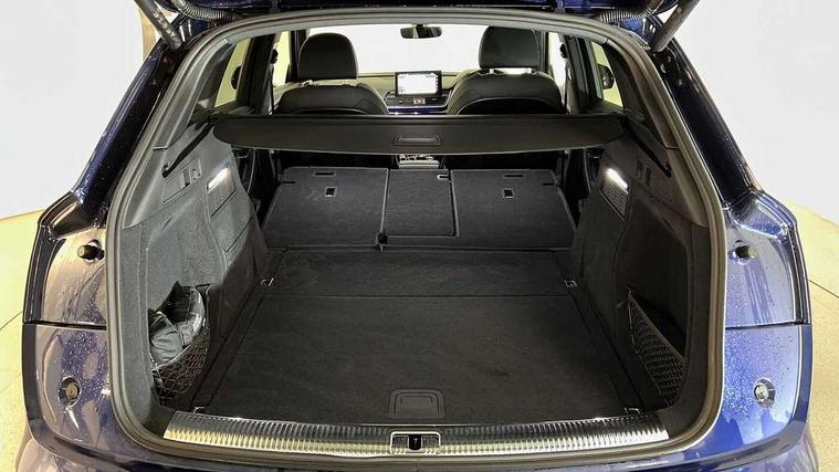 Acoustic front and rear parking sensor, Audi connect safety and service (e-call), Audi drive select, Audi virtual cockpit plus with 12.3" screen and three different layout designs, Audi wireless smartphone interface, Automatic start-stop system with coasting functionality and efficiency programme, Bluetooth interface, Camera based traffic sign recognition, Electro - mechanical power assisted steering, Lane departure warning, MMI navigation plus with 10.1" touch screen, Power tailgate, Reversing camera, Service interval indicator, Voice control system with Audi hotword activation "Hey Audi", Diesel particulate filter, Quattro on demand, S line sports suspension, 2 x USB charging port with aux input socket, 8 loudspeakers, DAB Digital radio, Acoustic windscreen, Auto dimming door mirrors, Auto dimming frameless rear view mirror, Automatic headlight adjustment, Automatic headlights and windscreen wipers, Black roof rails, Black styling with black rings, Body colour bumpers, Body colour rear diffuser with matt aluminium silver surrounds, Body colour underbody protection, Chrome plated exhaust trims, Daytime running lights, Door sills in Selenite silver, Electric adjustable/heated/folding door mirrors, Front air inlet surrounds in aluminium, Front and rear electric windows, Front radiator grille in honeycomb design, LED 3rd brake light, LED headlights and LED tail lights, Loading edge protection in stainless steel, Lower bumpers painted in contrast Manhattan grey, Rear chrome trim strip below lights, Rear privacy glass and rear side windows, Rear side wing doors, Rear wiper, Roof bars, S Line badges on the front wing panels, S Line front and rear bumpers, S Line rear spoiler, S Line side skirts, 3 rear headrests, Black cloth headlining, Comfort front centre armrest, Contrast stitching on seats, steering wheel and gear lever gaiter, Deluxe 3 zone electronic climate control, Front head restraints, Front sport seats with S embossed logo, Front/rear floor mats, Gear lever in black leather, Heated front seats, Height/reach adjustable steering column, Illuminated door sill trims with S logo, Luggage compartment cover, Manual seat adjustment with 4-way electric lumbar support, Single front passenger seat, Stainless steel pedals, Sunvisors with vanity mirrors, Top surface of the rear centre armrest in artificial leather, High gloss pack - Q5, LED interior light pack - Q5, 3 point seatbelts on all seats, 6 airbags - Driver, front passenger, curtain and side airbags, Attention and drowsiness assist, Electrically operated child locks on rear doors, Electromechanical parking brake, Electronic stabilisation control including ABS, ASR and EDL, First aid kit with warning triangle and vests, Front passenger airbag deactivation, Hill descent control, Hill hold assist, ISOFIX child seat mounting for front passenger seat and ISOFIX child seat mounting with Top Tether for outer rear seats, Multi collision brake assist, Pop-up bonnet for pedestrian protection, Pre sense city, Seatbelt monitoring, Tyre pressure warning, Anti theft alarm, Anti-theft wheel bolts, Remote central locking, Remote control key with SAFELOCK and keyless go, Air vents inserts and centre console in gloss black, Tool kit, Tyre repair kit,