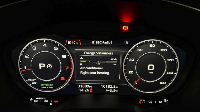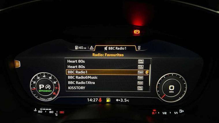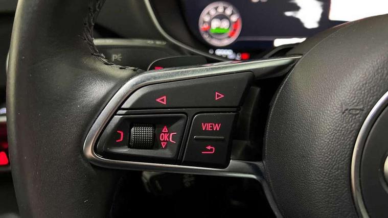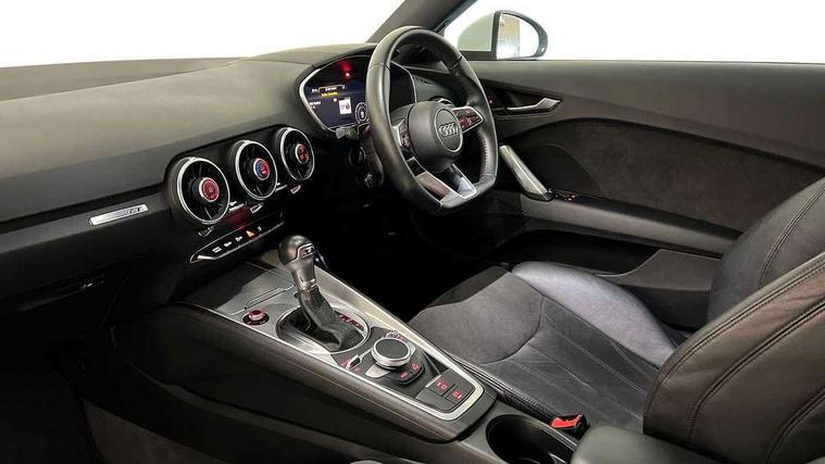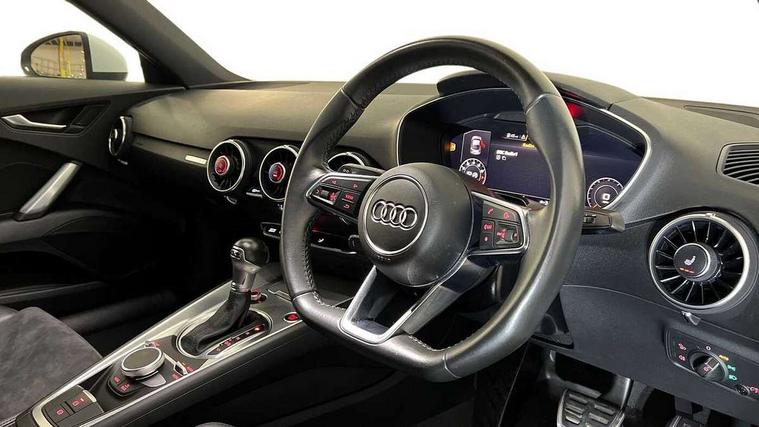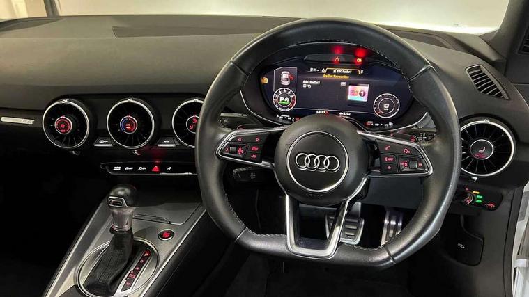Audi drive select with 4 Pre configured modes, Audi smartphone interface, Audi virtual cockpit - 12.3" high-resolution LCD display with fully customisable instrument cluster, Cruise control + speed limiter, MMI touch panel, Mobile phone preparation with bluetooth interface, Progressive power assisted steering, Service interval indicator, Start/Stop system with energy recuperation, TP memo, Sports suspension, AM/FM radio, Bluetooth audio streaming, DAB Digital radio, MMI Radio with CD player and SD/XC card slot, Auto dimming rear view mirror, Body colour bumpers, Body colour electrically adjustable and heated door mirrors with built in LED side indicators, Electric folding door mirrors, Electric front windows, Front fog lights, Green tinted heat insulating glass, Light and rain sensors, Retractable rear spoiler, Sunband for windscreen, Xenon headlights with LED daytime running lights with automatic headline range control + LED rear lights, brake lights and rear indicators, 12V socket, 3 spoke flat bottomed high multi-function leather sport steering wheel with gearshift paddles, Alcantara/Leather upholstery includes seat centre panels, door trim inserts in black Alcantara with side bolsters, head restraints in black leather, Aluminium door sill trims, Front centre armrest, Front sports seats, Heated front seats, Height adjustable driver's seat, Height adjustable front head restraints, Height/reach adjust steering wheel, ISOFIX child seat mounting for front passenger seat with airbag deactivation, Rear head restraints, Rear top tether child seat ISOFIX attachment, Split folding rear seat, Tool kit, Non smoking pack - TT/TT RS, 3 point front seat belts, ABS, ASR traction control, Curtain airbags, Driver and front passenger airbag with front passenger airbag deactivation, EDL traction control, Electromechanical parking brake, ESP, First aid kit, Front side airbags, Head airbags, Hill hold assist, Seatbelt warning, Tyre pressure loss indicator, Warning triangle, Anti theft alarm, Anti theft wheel bolts, Immobiliser, Keyless Go, Remote central locking, Aluminium design inlays, Tyre repair kit,