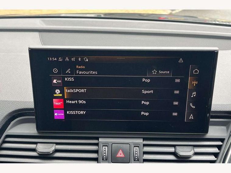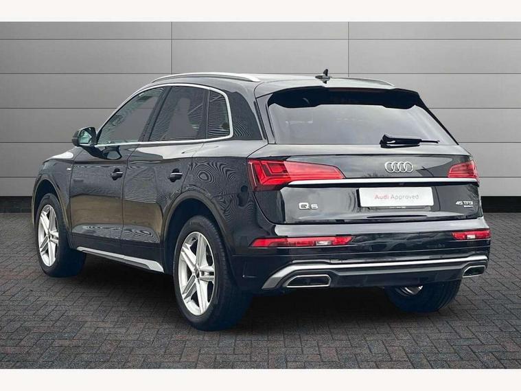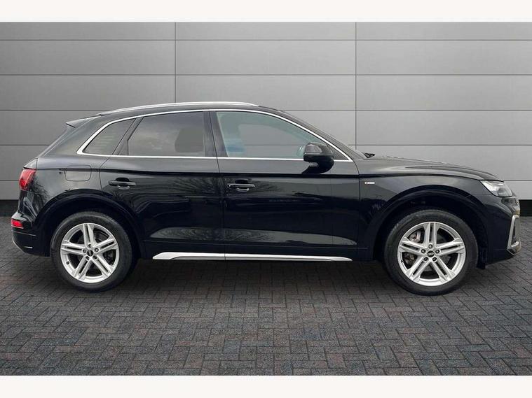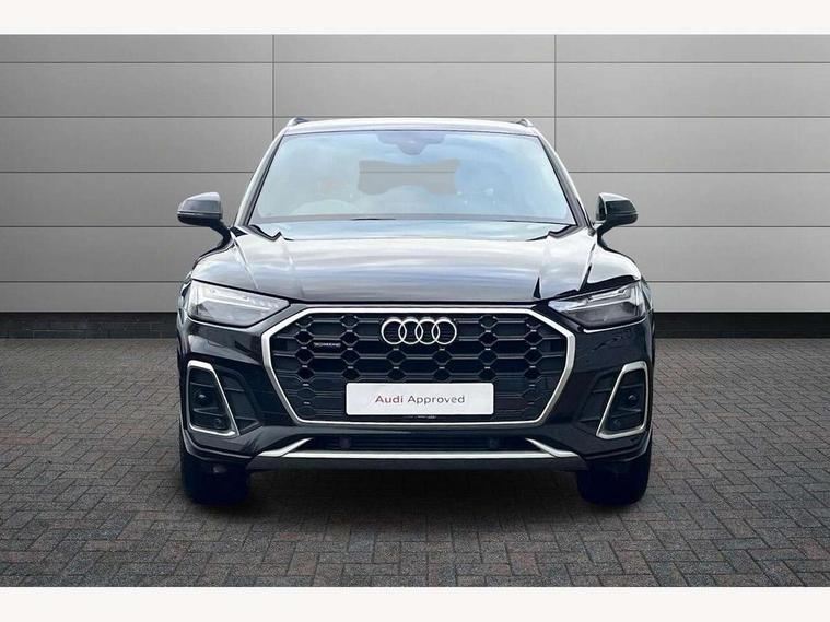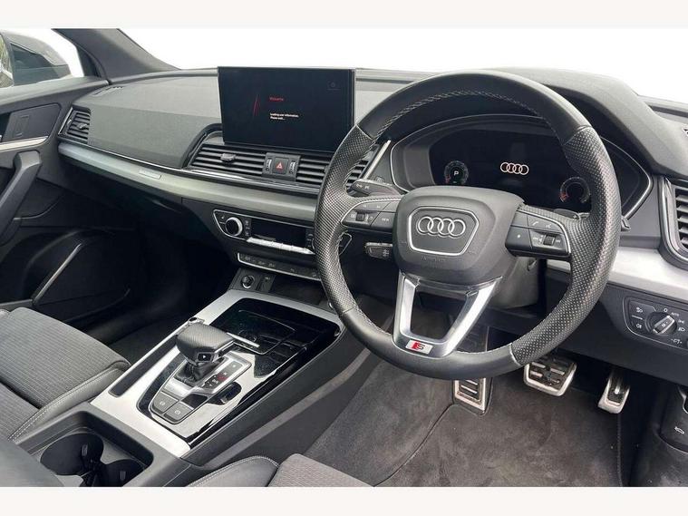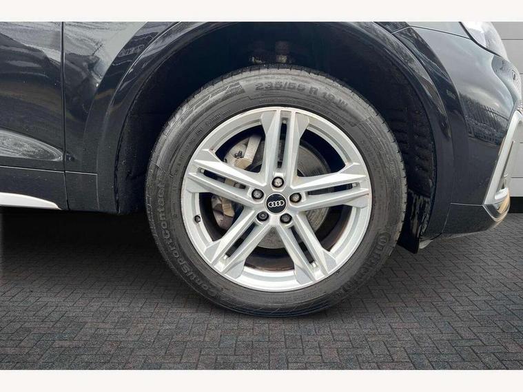 Audi connect safety and service (e-call), Audi connect with Amazon Alexa Integration, Audi drive select, Audi virtual cockpit plus with 12.3" screen and three different layout designs, Audi wireless smartphone interface, Automatic start-stop system with coasting functionality and efficiency programme, Bluetooth interface, Electro - mechanical power assisted steering, MMI navigation plus with 10.1" touch screen, Power tailgate, Reversing camera, Service interval indicator, Voice control system with Audi hotword activation "Hey Audi", Quattro on demand, S line sports suspension, 2 x USB charging port with aux input socket, DAB Digital radio, 3rd brake light, Acoustic windscreen, Aluminium roof rails, Audi matrix LED headlights with dynamic front and rear indicators, Auto dimming rear view mirror, Automatic headlights and windscreen wipers, Body colour bumpers, Body colour door mirrors, Body colour rear diffuser with matt aluminium silver surrounds, Body colour underbody protection, Chrome plated exhaust trims, Daytime running lights, Door sills in Selenite silver, Electric adjustable/heated/folding door mirrors, Front air inlet surrounds in aluminium, Front and rear electric windows, Front radiator grille in honeycomb design, Headlight washers, Lower bumpers painted in contrast Manhattan grey, Rear chrome trim strip below lights, Rear privacy glass and rear side windows, Rear side wing doors, Rear spoiler, Rear wiper, Roof bars, S Line badges on the front wings, S Line front and rear bumpers, S Line side skirts, 3 rear headrests, 40:20:40 split folding 3 rear bench seat in 2nd row with rear centre armrest, Black cloth headlining, Comfort front centre armrest, Contrast stitching on seats, steering wheel and gear lever gaiter, Deluxe 3 zone electronic climate control, Front/rear floor mats, Gear lever in black leather, Heated front seats, Height adjustable front head restraints, Height/reach adjustable steering column, Illuminated door sill trims with S logo, ISOFIX child seat mounting and top tether, Luggage compartment cover, Manual seat adjustment with 4-way electric lumbar support, Removable luggage compartment floor, Single front passenger seat, Stainless steel pedals, Sunvisors with vanity mirrors, High gloss pack - Q5, LED interior light pack - Q5, 3 point seatbelts on all seats, 6 airbags - Driver, front passenger, curtain and side airbags, Electrically operated child locks on rear doors, Electromechanical parking brake, Electronic stabilisation control including ABS, ASR and EDL, Front passenger airbag deactivation, Hill descent control, Hill hold assist, Multi collision brake assist, Pop-up bonnet for pedestrian protection, Pre sense city, Seat belt force limiter, Seatbelt monitoring, Tyre pressure warning, Warning triangle and first aid kit, Anti theft alarm, Anti-theft wheel bolts, Keyless Go access/ignition system, Matt brushed aluminium inlays,