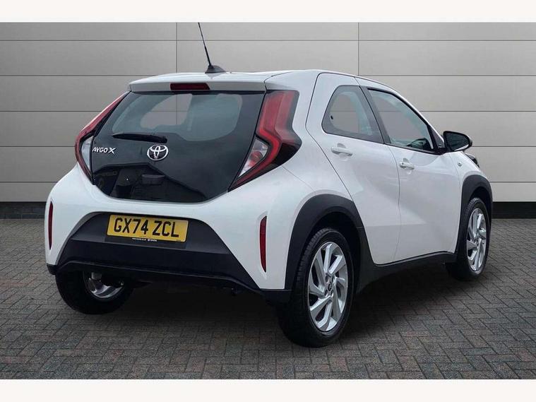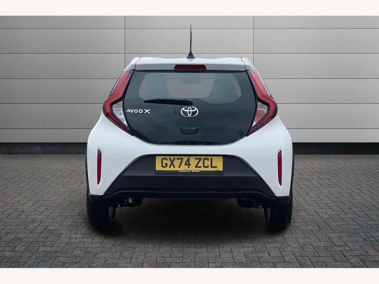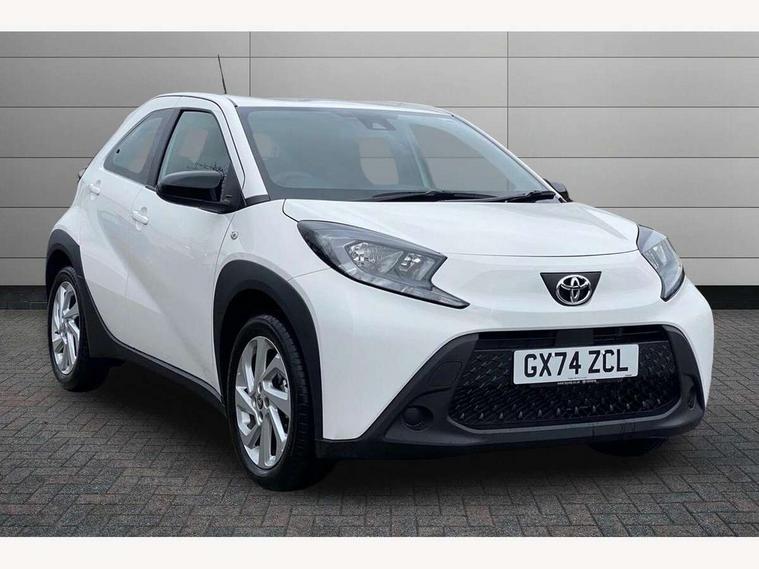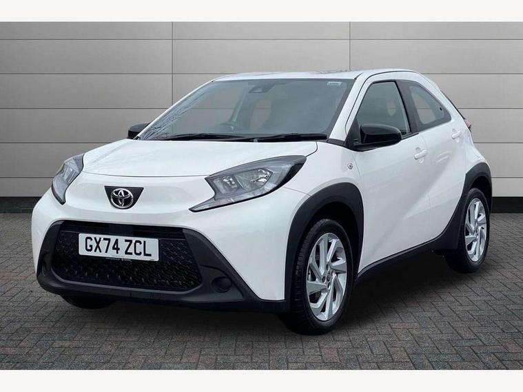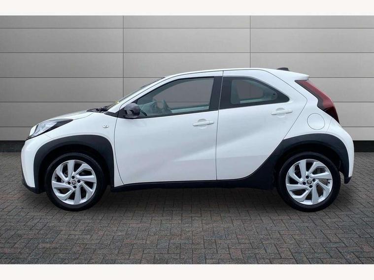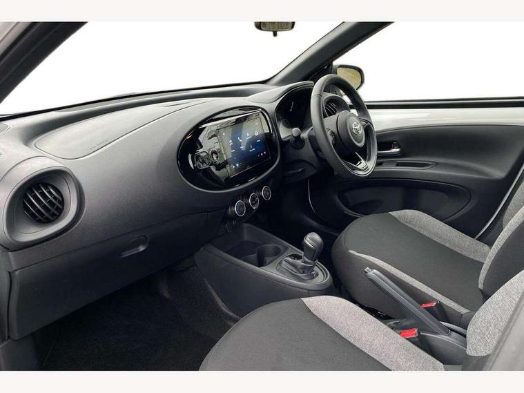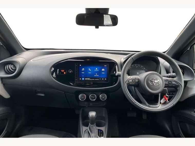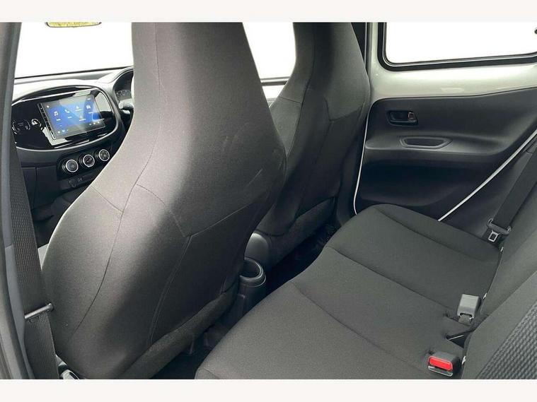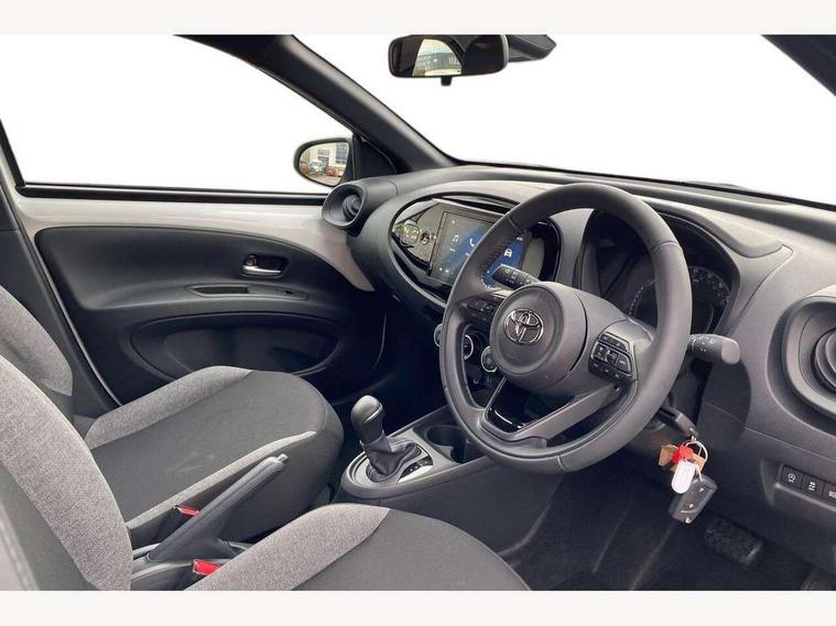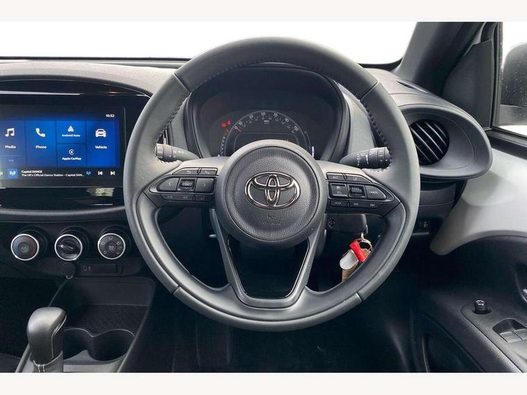 4.2" TFT colour screen, Adjustable speed limiter, Analogue speedometer, Bluetooth connectivity, Digital tachograph, Driver attention alert system, eCall emergency call system, ECO-driving indicator, Electric power steering, Intersection turn assist, Key reminder warning, Noise reduction kit, Pre collision system with emergency steering assist, Reversing camera with static guide lines, Smart phone integration with Apple car play/Android Auto, Speed limit display, Start and stop, Vehicle Stability Control (VSC), 4 speakers, 9" HD multimedia display touch screen with Toyota smart connect, DAB digital audio broadcast, USB connector, Auto headlights, Automatic headlights cut-off, Bicycle towing hook, Black lower front grille, Black rear bumper, Black side protection mouldings, Black upper front grille, Black wheel arch mouldings, Body colour door handles, Body coloured front bumper, Boot door scuff plate, Electric heated door mirrors, Follow me home headlights, Front power windows, Gloss black door mirrors, Headlight cut-off reminder, LED daytime running lights, LED front light guide, LED High mounted stop lamp, Manual day/night rear view mirror, Manual headlight levelling, Pagoda roof, Power adjustable door mirrors, Power back door, Projector halogen headlights, Rain sensor, Rear combination lights LED bulb type, Rear side wing doors, Rear windscreen defogger, Rear windscreen wiper, Short antenna, Variable intermittent windscreen wipers, 12v power outlet - front, 2 seat bench in 2nd row, 3 spoke leather steering wheel, 50/50 split folding rear seat, Adhesive roof headlining, Adjustable speed limiter switch on steering wheel, Audio and telephone switches on steering wheel, Black insert on steering wheel, Boot light, Centre room light, Chrome interior door handles, Chrome surround on air conditioning buttons, Clean air filter, Fabric upholstery, Floor mats, Front and rear cup holders, Front head rest deco art, Front head restraints, Gear shift indicator, Height adjustable driver seat, Intelligent adaptive cruise control switch on steering wheel, ISOFIX child restraint system on rear seats, Lane departure alert switch on steering wheel, Leather gearshift knob, Light grey roof lining, Manual air conditioning, Manual tilt steering wheel, Manually reclining and sliding driver seat, Manually reclining and sliding front passenger seat, Multimedia switches on steering wheel, Pollen filter, Rear door pockets, Rear head restraints, Resin console box storage, Satin silver insert on gear shift knob, Silver stitching on gear shift knob, Single compartment glovebox with lights, Single front passenger seat, Soft tonneau cover, Sun visors with mirror on driver and passenger side, Voice recognition switch on steering wheel, Toyota safety sense pack - Aygo X, Anti lock braking system + Electronic brake force distribution, Child safety door lock, Emergency brake light signal (EBS), Hill start assist control (HAC), Passenger airbag on/off switch, Seat belt reminder for front and rear seats, Supplement restraints system (SRS) - 6 airbags, Traction control, Tyre pressure warning system, Immobiliser, Remote power door locks, Black air vent surround, Black wheel centre caps, Tyre repair kit,