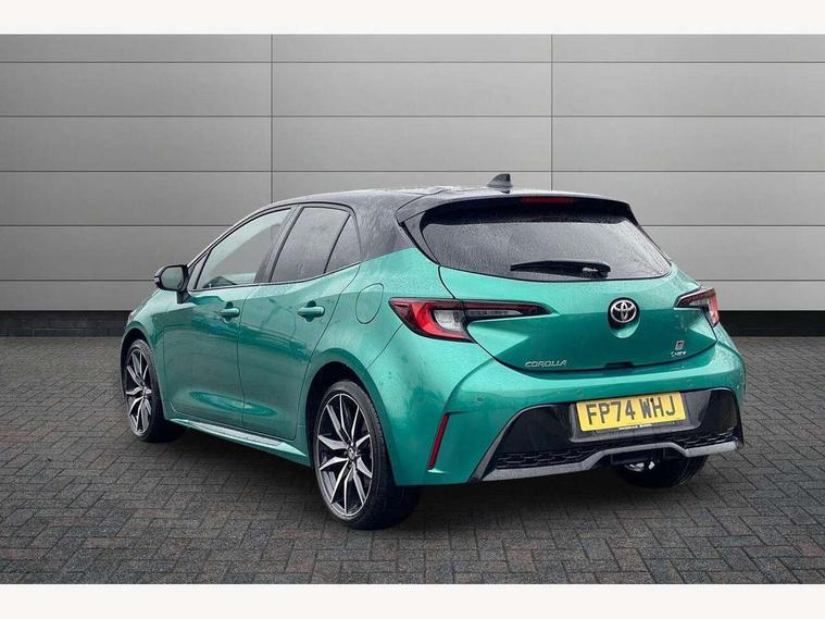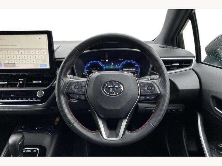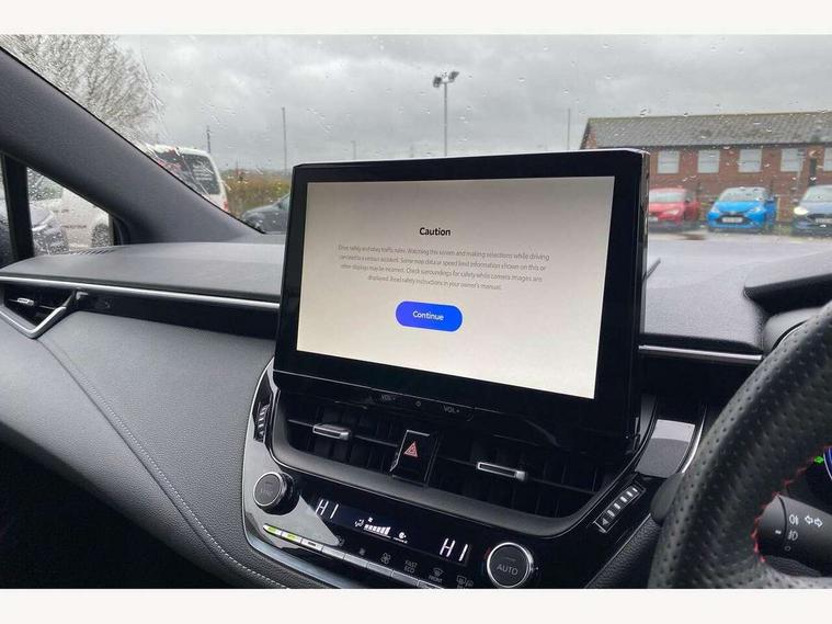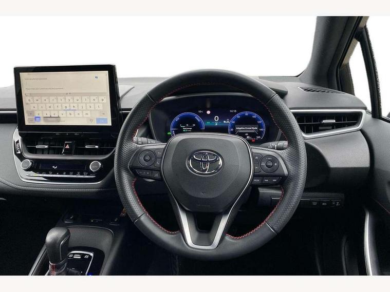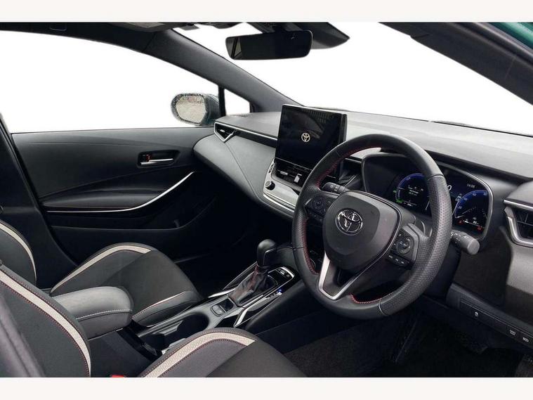 10.5" Multimedia display screen, Bluetooth telephone connectivity, Connected car functionality upgrade, tracker, remote status and e-care, Drive mode select (Eco, Normal), E-call, Electrically assisted power steering, EV drive indicator, Front and rear parking sensors with auto brake, Full Digital 12.3" TFT Digital Combimeter, Key reminder warning, Lane Departure Alert (LDA) switch on steering wheel, Memory on adjustable speed limiter, MyT connected services, Proactive driving assist (PDA), Reversing camera, Smart entry and push button start with GR Logo, Smartphone integration with Apple CarPlay and wired android auto, Tailgate, Toyota remote services, Toyota smart connect navigation, Wireless charger, Gasoline particulate filter, Vehicle Stability Control (VSC), 6 speakers, AM/FM radio, DAB Digital radio, Front USB-C in centre console, Front USB-C in dashboard, Smart voice assist/ Voice recognition, USB and Aux in connectors + 12V front outlet, Anti-jam protection on power windows, Auto up and down function on all power windows, Automatic folding mirrors, Automatic headlights with high beam assist, Black centre and side air vents, Black toyota logo in front, Body coloured bumpers, Body coloured door mirrors, Body coloured outside door handles, Dark chrome lower grille, Electrochromatic mirror, Follow me home headlights, GR Sport dark chrome front mesh grille and black rear grille, GR Sport exclusive under guard, GR sport scuff plates, LED daytime running lights, LED dual beam projector headlights, LED front fog lights, LED High mounted stop light, LED rear combi lights with LED lightguide, Manual headlight levelling system, New grille pattern, Noise reduction layer on windscreen, Piano black diffuser, Power adjustable heated door mirrors, Power front windows, Power rear windows, Privacy glass with UV filter, Rain sensing wipers, Rear side wing doors, Rear window defogger, Rear window wiper, Reverse tilting door mirrors, Rocker and door lower moulding, Roof spoiler, Satin chrome insert on front air vents, Satin chrome insert on front door assist grips, Satin silver front spoiler, Shark fin antenna, Tailgate release with push button, Time adjustment on intermittent wiper, Turning signal integrated indicators in door mirrors, Unique lower skirt, Unique side rocker with black insert, UV-filter on driver and passenger windows, 2 Shopping bag hooks in luggage compartment, 3 rear headrests, 3 seat bench in 2nd row, 3 spoke leather steering wheel with satin insert/red stitching + gear knob, 4 tie down hooks in luggage compartment, 60/40 split folding rear seat, Adaptive cruise control (ACC) switch on steering wheel, Adjustable speed limiter switch on steering wheel, Audio, multimedia and telephone switches on steering wheel, Black armrest on centre console box, Black gear shift console, Boot light, Centre room light, Driver and front passenger personal light, Driver and passenger assist grip, Driver and passenger seatback pockets, Driver and passenger sun visor with mirror and light, Dual zone automatic air conditioning with ECO mode switch, Fabric/synthetic leather upholstery, Front and rear cup and bottle holders, Front door pockets, Front head restraints, Front passenger seat, Front sliding synthetic leather armrest, GR Sports seats with partial leather bolsters, Heated seats, Illuminated entry system in room lamp, ISOFIX seat fixing (2 fixings on rear outer seats), Manual height adjustable for driver and front passenger seat, Manually tilt with sliding driver and front passenger seat, Nanoe-X air purifier, Parcel shelf, Pollen filter, Power window switches with satin chrome inserts, Rear armrest with 2 cupholders, Rear passenger coat hooks (2), Red stitching on gear shift, Remote air conditioning, Satin chrome inside door handles, Satin chrome surround on speedometer, Sliding armrest on centre console box, Slow opening glovebox with lights, Textile floor mats, Tilt/telescopic steering column, Voice recognition switch on steering wheel, Whiplash Injury Lessening (WIL) feature (active headrest) for seats, White ambient lighting on open tray and front cup holder, Toyota safety sense 3 pack - Corolla, 3x3 point rear seatbelts, Adjustable driver and front passenger seat belt extender to top anchor point, Anti lock braking system + Electronic brake force distribution, Brake assist function, Child locks on rear doors, Downhill Assist Control (DAC), Electronic parking brake, Emergency brake light signal (EBS), Front passenger airbag on/off switch, Front seatbelt reminder, HAC - Hill start assist control, Rear seat belt reminder, Seatbelt pretensioners and force limiters, Supplemental restraint system (SRS) 7 airbags - dual driver, dual side curtain, side impact and driver knee airbags, Traction control, Tyre pressure warning system, Acoustic vehicle alert system (AVAS), Alarm with motion sensor and immobilizer, Power passenger window lock, Remote central locking + deadlocks, GR Sport interior styling with accents and exterior styling, Satin chrome dash trim, Soft touch texture on upper dashboard, Stitching on lower dashboard, 18" Black machined face 10 spoke alloy wheels, Tyre repair kit, Unique wheel finish with red wheel cap,