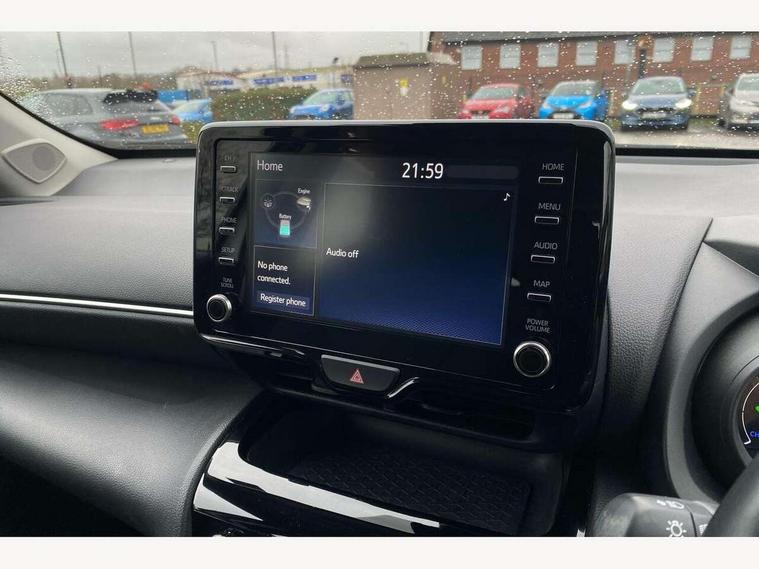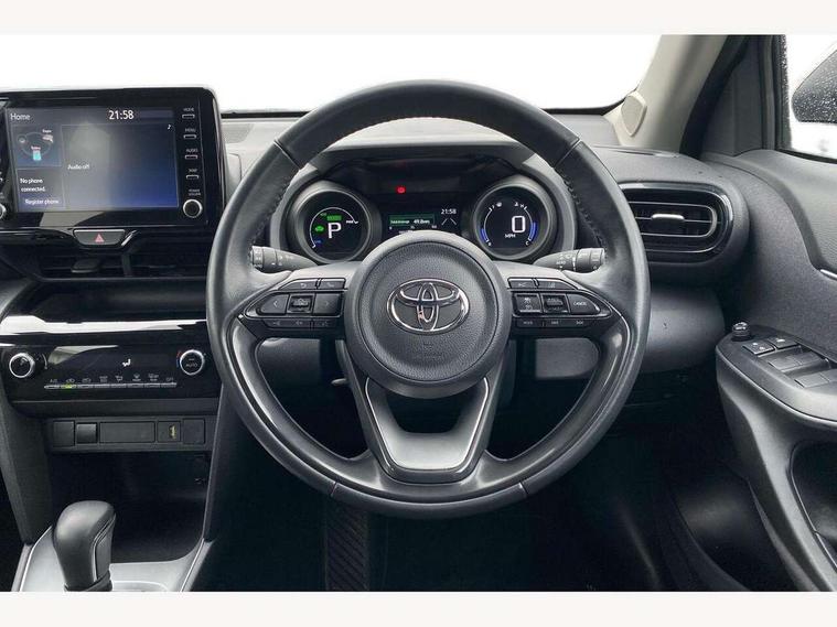 4.2" multi information display, 8" Toyota touch 2 multimedia system with Smartphone integration with Apple CarPlay and Android auto, Adjustable speed limiter, Bluetooth connectivity, Digital speedometer, Driver attention alert system, eCall emergency system, Electric power steering, Full range intelligent adaptive cruise control, Hybrid system indicator, Key reminder warning, Lane trace assist, Multimedia, audio, telephone and voice recognition switches on steering wheel, My T Connected services, Pre-collision system enhanced with emergency steering assist, Reversing camera, Road sign assist - RSA, Steering assisted vehicle stability control, 6 speakers, DAB Digital radio, USB connection, 3rd brake light, Acoustic windscreen glass, Anti-jam protection on power windows, Auto high beam [AHB] with on/off switch, Automatic headlights, Black lower front grille, Black Shark-fin antenna, Black upper front grille, Black wheel arch mouldings, Body colour door handles, Body colour front bumper, Body colour rear bumper, Electric adjustable heated door mirrors, Follow me home headlights, Front and rear electric windows with auto up/down function, Front intermittent wipers, Halogen projector headlights, Headlight cut off reminder, Indicators integrated on door mirrors, Intermittent rear wiper, LED daytime running lights, LED Indicators, Manual headlight levelling, Manually retractable door mirrors, Noise reduction layer on windscreen, Rain sensor, Rear side wing doors, Rear spoiler, Rear window defogger, 12v power outlet - front, 2x Rear coat hooks, 3 seat bench in 2nd row, 3 spoke leather steering wheel, 60/40 split folding rear seat, Adjustable speed limiter switch on steering wheel, Auto air conditioning, Boot light, Central armrest, Driver and front passenger personal lights, Fabric door trim, Fabric upholstery, Front console box, Front cup holders, Front head restraints, Glovebox, Grey roof lining, Height adjustable driver's seat, Height adjustable front passenger seat, ISOFIX child restraint system, Lane departure alert switch on steering control, Leather gearshift, Manual telescopic and tilting steering wheel, Mirror on driver and passenger sun visor, Pollen air filter, Rear head restraints, Single front passenger seat, Soft tonneau cover, 3x3 point rear seat belts, ABS+EBD+Brake assist, Driver and passenger central airbags, Driver and passenger front airbags, Driver and passenger side airbags, Electronic parking brake, Emergency brake light system (EBS), Front seat belt reminder, Hill start assist control (HAC), Passenger airbag on/off switch, Pre-collision system with pedestrian and cyclist detection, Rear door child safety locks, Rear passenger side airbags, Rear seat belt reminder, Traction control, Tyre pressure warning system, Immobiliser, Intrusion alarm, Keyless smart entry with push button start, Power door locks, Power passenger window lock, Remote door lock, 16" 10 spoke alloy wheels, Tyre repair kit,