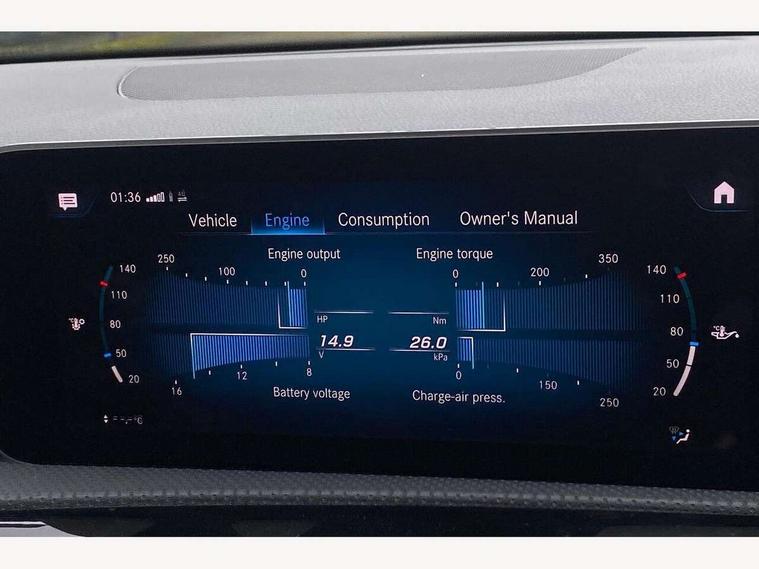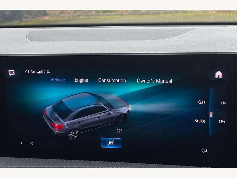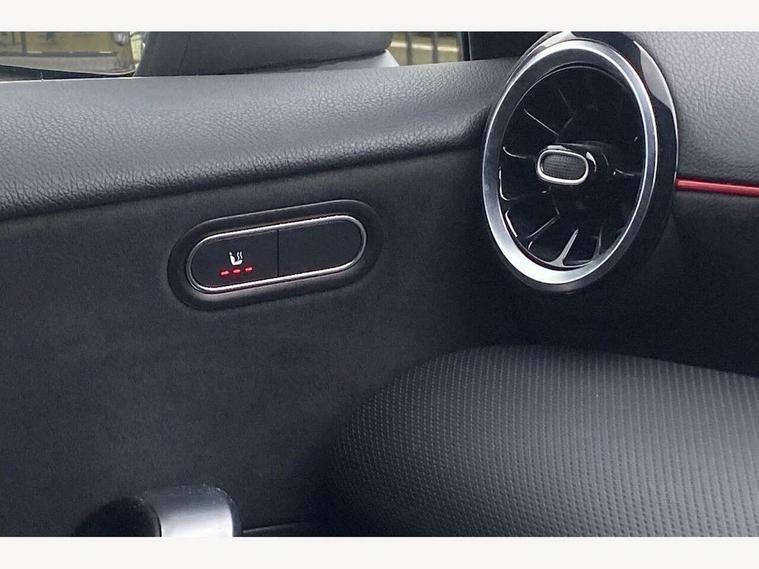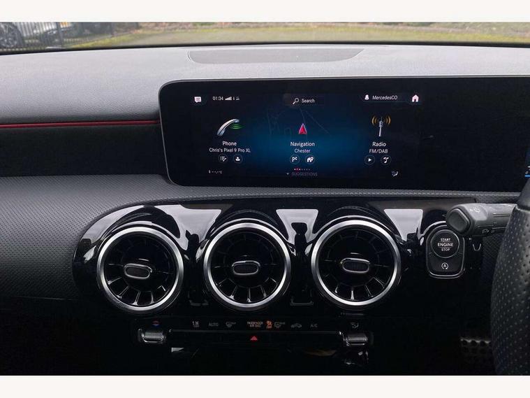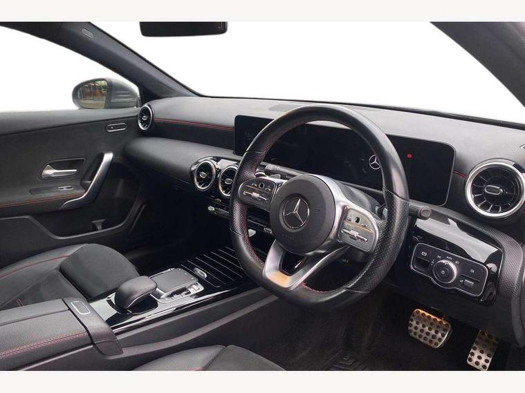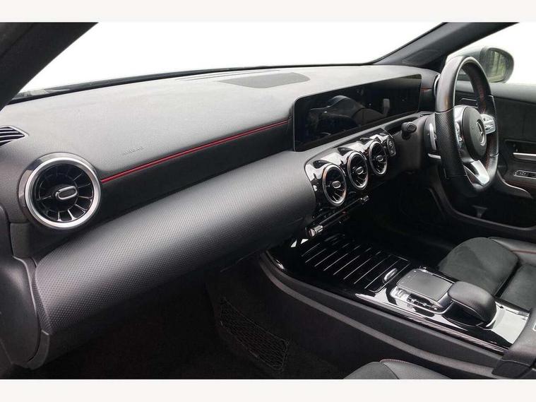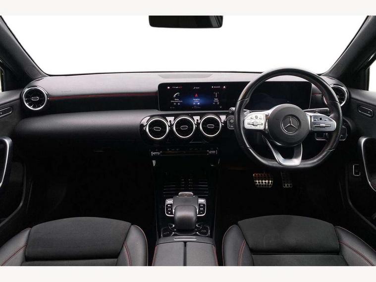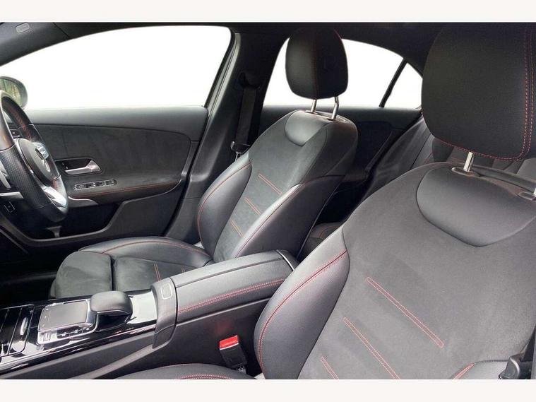 10.25" media display, 180 degree rear view camera with parking guidelines, 7" colour screen in instrument panel, Active lane keep assist, Active park assist with parktronic system including front and rear parking sensors, Attention assist, Brake pad wear indicator warning light, Cruise control + speed limiter, Direct steering, Dual bluetooth interfaces, DYNAMIC SELECT with a choice of driving modes (ECO, Comfort, Sport and Individual), ECO start/stop function, Fluid level warning indicator for fuel, oil, coolant and washer fluid, Hard-disk navigation, Hey Mercedes Voice activation, Lamp failure indicator, MBUX multimedia system with DAB digital radio and touchpad including satellite navigation, Mercedes me connect including emergency call system, accident recovery, breakdown management and maintenance, Outside temperature gauge, Owners manual in English, Pre-installation for car sharing, Pre-installation for Vehicle Monitoring, Pre-installation for Vehicle Setup, Preinstallation for Mercedes Benz link, Service indicator (ASSYST), Smartphone integration with Apple CarPlay and Android auto, Speed sensitive power steering, Trip computer, Wireless charging, Lowered comfort suspension, Rear axle torsion beam, 2 USB ports (type C) in rear stowage compartment and one in front of center console, 6 speakers, DAB Digital radio, Mercedes-Benz sound system - 100W, 4 Electric Front and Rear windows, Adaptive brake lights, AMG bodystyling - Front apron with splitter in chrome, rear apron with chrome trim and chrome visible trim elements in tailpipe, Black weather strip, Body colour bumpers, Body colour door handles, Body colour side skirt, Body coloured door mirrors, Chrome beltline trim, Diamond radiator grille with chrome pins and silver louvre + chrome insert, Electric adjustable and heated door mirrors with integrated LED side indicators, Exhaust system - Twin visible tailpipes in polished stainless steel, Headlamp assist automatic headlamp activation, Heated glass rear windscreen + timer control, LED high performance headlamps with integrated LED daytime running lights, LED tail lamp, LED third brake light, Privacy glass, Radio aerial, Rain sensing windscreen wipers with two sensitivity settings, Rear fog lights, Window line trim strip in chrome, 3 Spoke flat bottom leather multi function steering wheel with perforated leather in grip area, 40:20:40 split folding rear seats, Artico man-made leather/Microfibre Dinamica upholstery with red contrast stitching, Auto Mercedes-Benz child seat recognition sensor, Black air vents with surround in silver chrome, Black roof lining, Brushed stainless steel sports pedals with rubber studs, Controller on centre console with chrome surround, Floor mats with stitched edging and AMG lettering, Front centre armrest with storage compartment, Front door sills with Mercedes benz lettering, Front seat backs luggage nets, Front seat cushion length adjustment, Galvanished gear shift paddles on steering wheel, Heated front seats, Height/reach adjustable steering column, ISOFIX and top tether child seat fixing points in two outer rear seats, Manual height adjustable front seats, Rear head restraints, Seat occupancy sensor for front passenger seat, Spectacles compartment for driver, Sports seats with adjustable head restraints, Stowage compartment in centre console with retractable cover, Sunvisors with illuminated vanity mirrors, Touchpad on center console, Twin front cupholders, Two zone thermotronic luxury automatic climate control, Light and sight pack - A Class, Mirror package - A Class, Seat comfort pack - A Class, 3 rear 3 point seatbelts, ABS with Brake Assist, Active bonnet, Active brake assist includes forward collision warning system with autonomous braking, Adaptive brake assist with hold function and hill start assist, Black seatbelts, Childproof locks manually operated for rear doors and electrically operated for rear power windows, Crash responsive emergency lighting, Driver and passenger head and side airbags, Drivers knee airbag, Dual stage driver/passenger airbags, Electronic parking brake, ESP curve dynamic assist, ESP with ASR, Front and rear seatbelt reminder, Front brake callipers with Mercedes Benz lettering, Tyre pressure monitoring system, Warning triangle and first aid kit, Window airbags, Alarm system/interior protection/immobiliser, Keyless Go, Remote central locking and crash sensor with emergency opening function, Dinamica microfibre trim in black, 18" AMG 5 twin spoke light alloy wheels in titanium grey with highsheen finish, Summer tyres, Tirefit sealant kit,