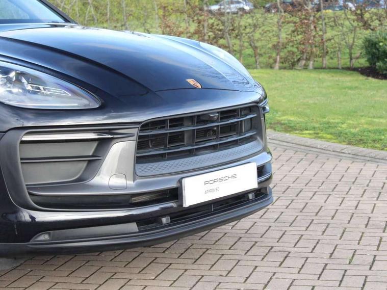 Analogue clock on dashboard, Automatic start/stop system, Automatic tailgate, eCall emergency call system, Instrument cluster with high resolution 4.8-inch TFT display, gear indicator for PDK, service interval display, external temperature indicator, fuel gauge, Off-road button, On board computer, Porsche Communication Management (PCM) including online navigation module, mobile phone preparation, audio interfaces and voice control system, 7-Speed Porsche Doppelkupplung (PDK) with automatic mode and manual controls (gearshift paddles) on steering wheel, Direct fuel injection (DFI), Gasoline particulate filter, VarioCam camshaft control for inlet and exhaust valves, 2 USB sockets in rear centre console, Apple CarPlay with Siri voice recognition, Connect Plus including online navigation, LTE communication module with SIM card reader, wireless internet access, Porsche Car Connect services, DAB Digital radio, Porsche Vehicle Traking System Plus (PVTS Plus), Two USB C charging and connectivity ports in the front centre console storage compartment, Active radiator grille shutters, Automatic headlight activation including welcome home lighting, Bumper system with high strength cross members and two deformation elements + One threaded fixture point for towing eye contained in onboard tool kit, Dynamic cornering lights, speed-sensitive headlight and dynamic range control, adverse weather function, four-point LED daytime running lights, Electric front and rear windows with remote closing function + anti trap + one touch, Electrically folding and heated exterior mirrors, Front light modules with LED position lights and direction indicators, Front windscreen wipers with two speeds, intermittent wipe and rain sensor, Front with integrated cooling air intakes, Fully galvanised body, Heated rear window with automatic switch off, High gloss black side window trims, High level 3rd LED brake light integrated into roof spoiler, Loading edge protection in aluminium, Rear side wing doors, Rear window wiper with intermittent function and washer jet, Roof spoiler in agate grey metallic, Towbar preparation, 3 adjustable rear headrests, 3 rear seats, 40:20:40 split folding rear bench seat, Cloth hook b-pillar, Floor mats with Porsche logo, Fold up centre console armrest with fore/aft adjustment, Front and rear bottle holders in door panels, Front headrests, Front passenger seat, Glove compartment, Isofix fastening system for child seats on outer rear seats, Luggage compartment cover, Particle/pollen filter with active carbon filter, Rear armrest with 2 cupholders, Storage bin in centre console, Storage compartment in side of luggage compartment and storage compartment in spare wheel recess, Storage pocket in front and rear doors, Two integrated cup holders in front with variable diameter, Two socket 12V power outlets in front console and luggage compartment, uncovered storage compartment in centre console, Ambient comfort lighting pack - Macan, Lower exterior trim package in black - Macan, Sport chrono package including mode switch - Macan T, 3-point automatic seatbelts with front and outer rear seats pretensioners and force limiter + manually height adjustable seatbelt + reminder warning, Auto hold function, Black painted brake calipers, Child locks on rear doors, Curtain airbags along entire roof frame and side windows from A pillar to the C pillar, Electronic parking brake, Front passenger airbag deactivation facility for installation of child seats indicator in overhead console, Front side airbags integrated into seat, Full size driver and passenger airbags, Internally vented brake discs with diameter of 350mm at front and 330mm at rear, Multi-Collision braking, Porsche hill control (PHC), PTM(Porsche Traction Management) and All-wheel drive with map-controlled multi-plate clutch, Roll over sensor for curtain airbag and seatbelt pretensioners, Side impact protection in doors, Tyre pressure monitoring system, Vehicle stability system, Porsche stability management (PSM) including ABS, ASR, ABD, MSR and trailer stability management, Vented discs brake with 4 piston aluminium monobloc fixed caliper at front, Vented discs brake with combination floating calipers at rear, Alarm system with ultrasonic interior surveillance, Engine immobiliser with key transponder, Remote control central locking, Accent trims with silver coloured finish,