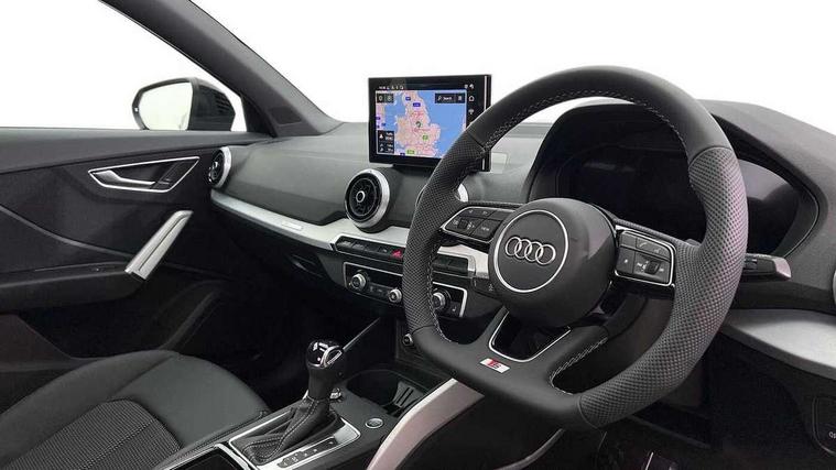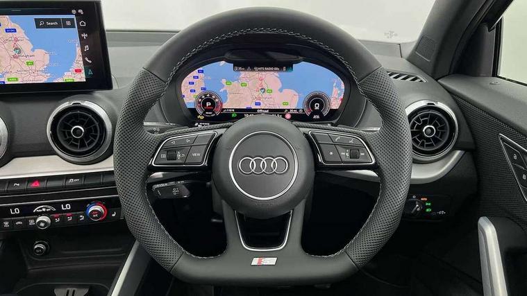 3D map display, Audi connect navigation and infotainment includes innovative services, Audi connect remote and control connects your vehicle to your smartphone, Audi drive select: S tronic - power steering assistance + engine + gearshift (modes: comfort, auto, dynamic, efficiency, individual), Audi smartphone interface - Apple carplay/Android Auto, USB connect, 2xSDXC card readers, voice control for navi, telephone, music and 3rd party apps, Audi virtual cockpit, Automatic start/stop system with recuperation, Bluetooth interface includes bluetooth audio streaming, Camera based traffic sign recognition, Cruise control, Distraction and Fatigue warning, E-call, Jukebox hard drive memory for music (10GB), Lane departure warning, MMI navigation plus with 8.8" touchscreen, Natural voice recognition, Power operated tailgate, Progressive steering, Rear parking sensors, Sport suspension, 6 passive loudspeakers, DAB Digital radio, USB type C port, Audi beam, Auto dimming rear view mirror, Black window trims, Bumper in full body colour paint finish, Electrically adjustable, folding, auto dimming and heated door mirrors with integrated LED side indicators, Front windscreen with grey tinted sunband, LED daytime running lights, LED headlights with dipped beam, high beam, position lights, indicators, LED rear lights, LED third brake light, Privacy glass - dark tinted rear and rear side windows from B-pillar backwards, Rear side wing doors, Rear wiper, Variable front intermittent wipers, Wheel arch trims in manhattan grey, 12V socket in front, 3 seat bench in 2nd row, 3 spoke flat bottomed multi-function leather sport steering wheel with gear shift paddles, 4-way electric lumbar support for front seats including manual seat height adjustment for both front seats, 60/40 split folding rear seat bench, Black carpets, Black cloth headlining, Front and rear head restraints, Front centre armrest, Front sport seats, Front/rear floor mats, Height/reach adjust steering wheel, Illuminated door sill trims with S logo, ISOFIX child seat mounting in front passenger and rear outer seats, Manual air conditioning, Single front passenger seat, Stainless steel pedals, Black styling pack - Q2, 3x3 point rear seatbelts, 6 airbags - Front, curtain and front side airbags, Electromechanical parking brake, Electronic stabilisation control including ABS, ASR and EDL, Front passenger airbag deactivation, Hill hold assist, Pre-sense front with pedestrian recognition, Seatbelt monitoring, Tyre pressure warning light with visual and acoustic warning, Warning triangle and first aid kit, Anti theft wheel bolts, Electronically operated child locks, Remote central door locking, Thatcham category 1 alarm, Aluminium interior element, Black dashboard, Gloss black centre console, Matt brushed aluminium trim inlays, Tool kit,