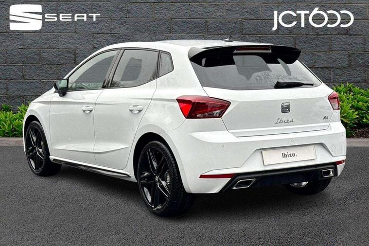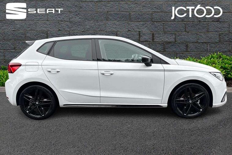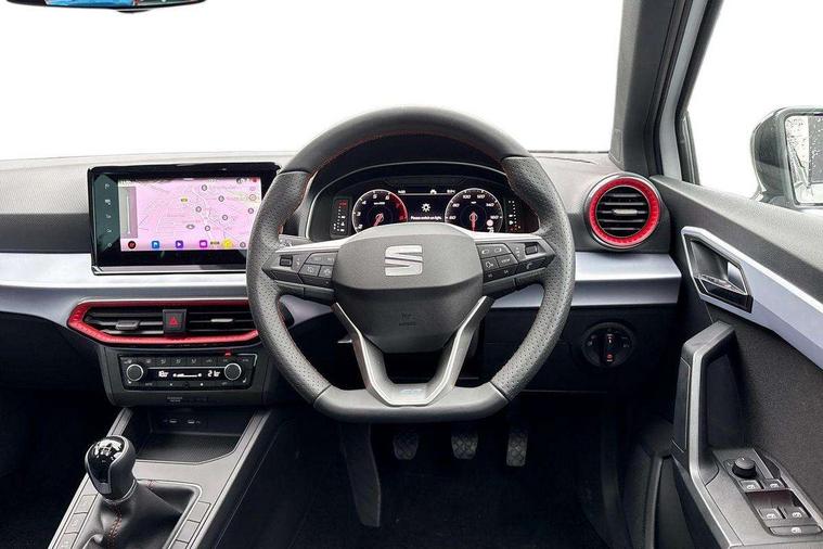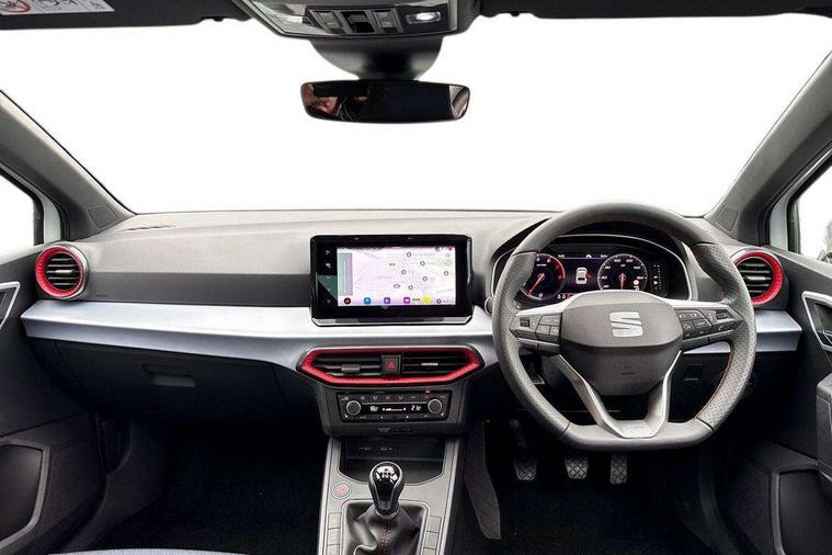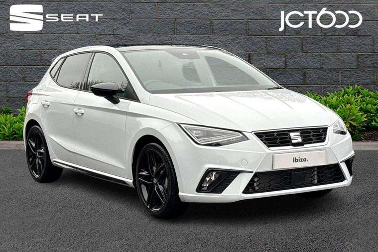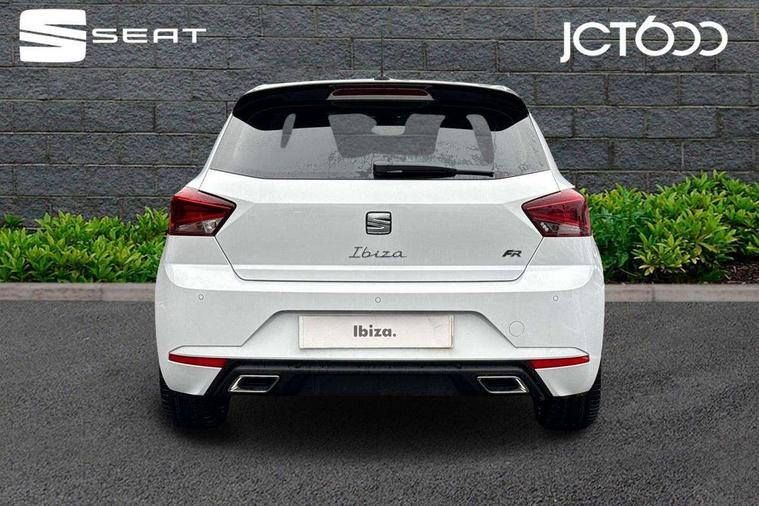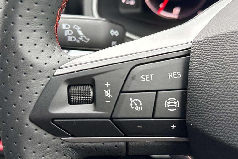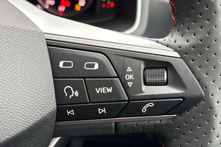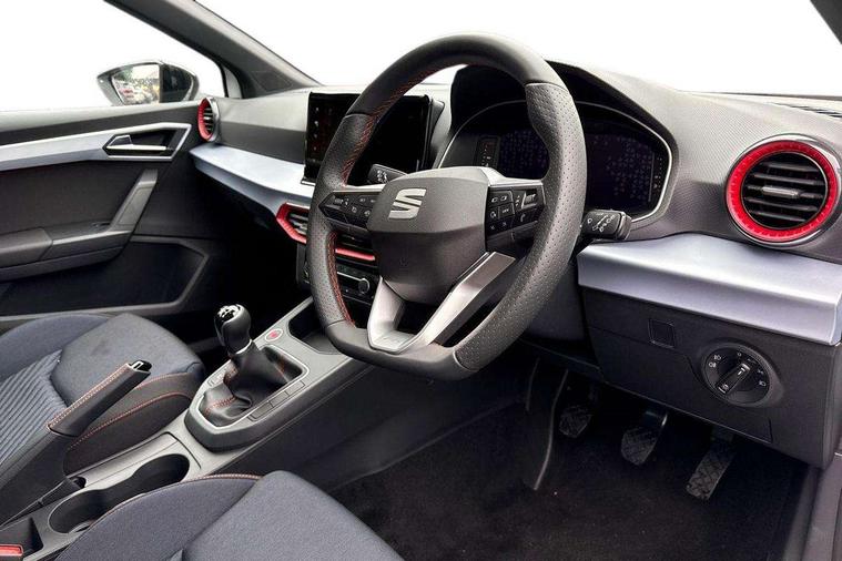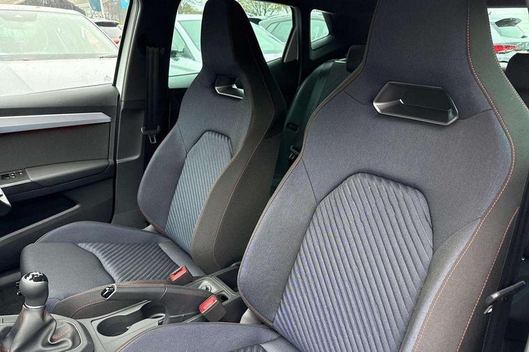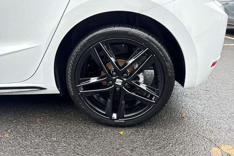 'Lights On' Reminder warning buzzer, 10" Digital cockpit, 9.2" touchscreen navigation system with type C USB socket, Voice control and DAB/AM/FM radio, Auto start and stop system, Bluetooth audio streaming with handsfree system, Digital clock, E-call, Full link smartphone integration with mirror link, wireless apple carplay, Google android auto + USB Type C cable for apple and android devices, Lane assist, Low fuel warning light, Outside temperature gauge, Power Steering, Rear parking sensor, Seat connect plus with safety, service, remote and online, SEAT drive profiles and ECO function, SEAT logo boot release, Speed limiter, Traffic sign recognition, Trip computer, Sports suspension, Auxiliary input socket, Radio/MP3 player, SD card slot, Steering wheel mounted controls, Anti theft roof antenna, Auto dimming rear view mirror, Automatic rain sensing wipers, Black door mirror caps, Black roof spoiler, Black side skirts, Body colour bumpers, Body colour door handles, Brilliant black window surrounds, Dark tinted rear windows, Electric adjustable/heated/folding door mirrors, Electric front windows, Electric headlight adjustment, Electric panoramic sunroof, Electric rear windows, Front/rear fog lights, FULL LED automatic headlights with dynamic headlight range control, coming and leaving home, LED daytime running lights, LED 3rd brake light, LED tail lights, Rear roof spoiler with FR twin exhausts, Rear side wing doors, Rear wiper, 3 seat bench in 2nd row, 60/40 split folding rear seat, Ambient interior lighting, Chrome detailing and black headlining, Dual zone climate control with combination filter, Front courtesy lights, Front cupholders x 2, Front reading lights, Front sport bucket seats, Gear shift indicator, Glovebox, Heated front seats, Height adjustable front and rear headrests (five), Height adjustable front seats, Height/reach adjust steering wheel, Illuminated air vent surrounds, Illuminated boot, Instrument lighting with brightness control, Isofix, Leather multifunction flat bottomed sports steering wheel, Microsuede cloth upholstery, Passenger sunvisor, Single front passenger seat, Storage pockets on back of front seats, Sunvisors with mirror and driver side card holder, Safety and driving pack (S) - Ibiza, ABS, Active front headrests, Child locks on rear doors, Electronic stability control, Energy recovery system, Front driver and passenger side airbags with curtain airbag and front passenger airbag deactivation, Hill hold control, Multi-Collision braking, Seat belt reminder for front and rear seats, Tiredness recognition system, Tyre pressure monitoring system, KESSY Keyless entry and go, Locking wheel bolts, Perimeter alarm and interior monitoring with backup horn and tow away protection, Remote central locking + deadlocks, 18" Performance alloy wheels in glossy black,