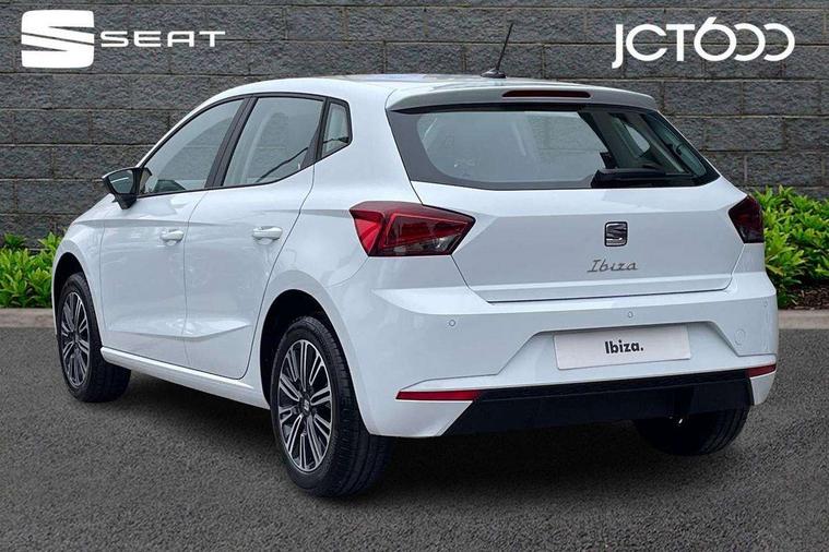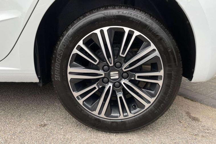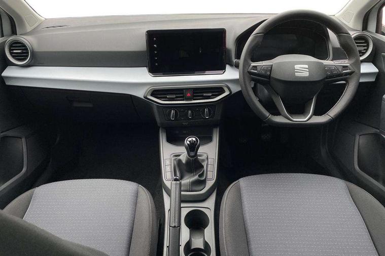 'Lights On' Reminder warning buzzer, 8" Digital cockpit, 9.2" touchscreen navigation system with type C USB socket, Voice control and DAB/AM/FM radio, Auto start and stop system, Bluetooth audio streaming with handsfree system, Cruise control, Digital clock, E-call, Full link smartphone integration with mirror link, wireless apple carplay, Google android auto + USB Type C cable for apple and android devices, Lane assist, Low fuel warning light, Outside temperature gauge, Power Steering, Rear parking sensor, Seat connect plus with safety, service, remote and online, SEAT logo boot release, Speed limiter, Traffic sign recognition, Trip computer, Comfort suspension, Auxiliary input socket, Radio/MP3 player, SD card slot, Steering wheel mounted controls, Anti theft roof antenna, Body colour bumpers, Body colour door handles, Body colour door mirror caps, Dimming interior rear view mirror, ECO LED automatic headlights and LED daytime running lights, Electric front windows, Electric headlight adjustment, Electrically adjustable door mirrors, Front/rear fog lights, LED tail lights, Rain sensor, Rear side wing doors, Rear wiper, Third brake light, 3 seat bench in 2nd row, 60/40 split folding rear seat, Air conditioning with dust and pollen filter, Chrome interior detailing and grey headlining, Cloth upholstery, Comfort seats, Front courtesy lights, Front cupholders x 2, Front reading lights, Gear shift indicator, Glovebox, Grey interior air vents, Height adjustable front and rear headrests (five), Height adjustable front seats, Height/reach adjust steering wheel, Illuminated boot, Instrument lighting with brightness control, Isofix, Leather multifunction flat bottomed sports steering wheel, Passenger sunvisor, Single front passenger seat, Sunvisors with mirror and driver side card holder, Safety and driving pack (S) - Ibiza, 3 point seatbelts on all 3 rear seats, ABS, Active front headrests, Child locks on rear doors, Electronic stability control, Energy recovery system, Front assist forward collision warning and autonomous emergency braking, Front driver and passenger side airbags with curtain airbag and front passenger airbag deactivation, Hill hold control, Multi-Collision braking, Seat belt reminder for front and rear seats, Tiredness recognition system, Tyre pressure monitoring system, Electronic engine immobiliser, Locking wheel bolts, Remote central locking + deadlocks, 16" Design machined alloy wheels in Nuclear grey,