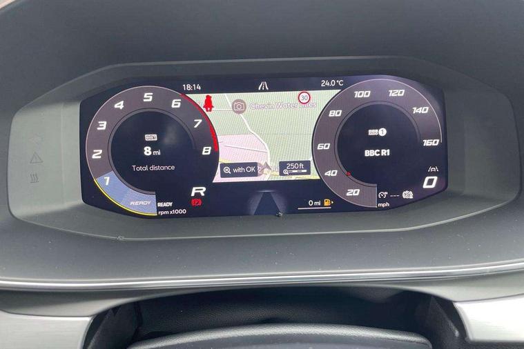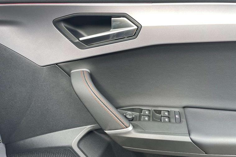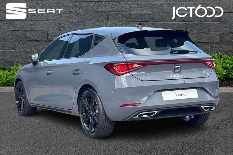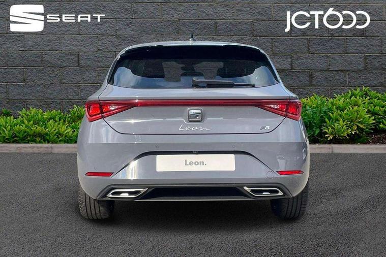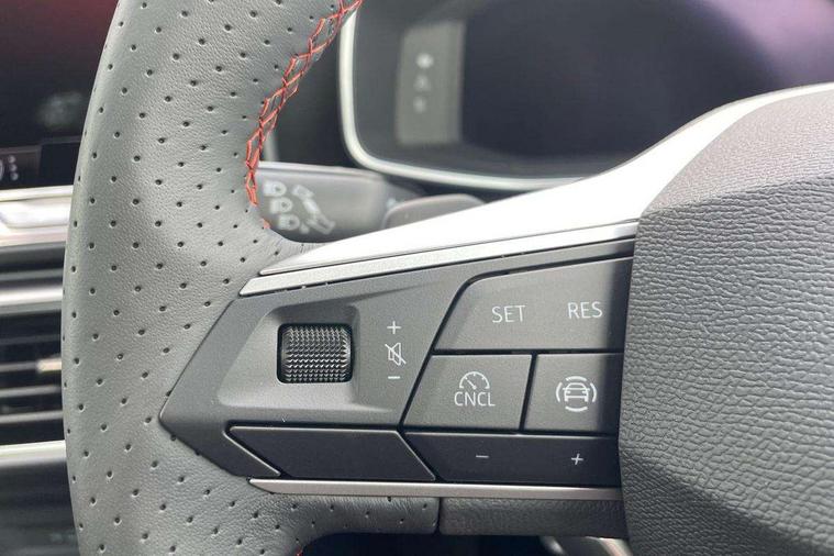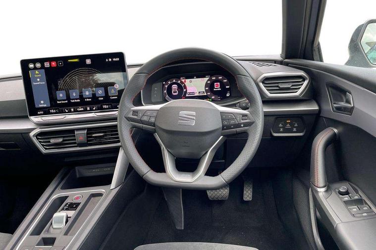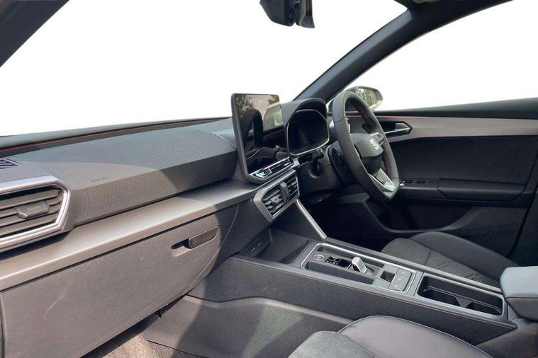 Digital cockpit with multifunction display, Driver attention alert with drowsiness warning, E-call, Front assist with forward collision warning braking reaction to vehicles, pedestrians and cyclists, Full link smartphone integration with Mirror Link, wireless Apple CarPlay and wired Google Android Auto, Intelligent speed assist, Lane assist, Lockable tailgate, Park assist (inc front/rear parking sensors), Power assisted speed sensitive electro-mechanical steering, Rear view camera, RPM, trip computer, outside temp gauge, instrument light brightness, low fuel warning light, lights on reminder, gearshift indicator, SEAT drive profile with 4 modes (Eco/Normal/Sport/Individual), throttle response and gearshift mode, Service interval indicator, Start/stop system with regenerative braking, Sports suspension, XDS electronic differential lock and dynamic traction support, 2 front and 2 rear USB-C ports, Auxiliary input socket, Auto dimming rear view mirror, Black door mirror housings, Black roof spoiler, Black side skirts, Body colour door handles, Body coloured bumpers, Dark tinted rear windows, Door mirror LED indicator lights, Dynamic headlight range control, Electric front/rear windows, Electrically adjustable, heated and folding door mirrors, FR sports bumper, Illuminated front door sill, LED front fog lamps, LED rear fog lamp with rear coast to coast light, Matrix LED headlights and beams with variable light distribution, LED rear light and dynamic turn signals, Panoramic sunroof, Rear side wing doors, Rear wash/wipe, Separate daytime running light with automatic headlight control and coming home feature, Third brake light, Welcome light silhouette from exterior mirrors, Windshield wiper intermittent control with light/rain sensor, 12v power point in centre console, 3 seat bench in 2nd row, 60/40 split rear bench seat with armrest, Ambient lighting with glovebox, footwell and single monocolour, Black headlining, Dust/pollen filter, Folding boot cover, Front and rear height adjustable headrests, Front and rear reading lights X 4, Front centre armrest, Front seatback storage pockets, Heated front seats, Height/reach adjust steering wheel, Interior wraparound lighting (FR), ISOFIX points in outer rear seats with top tether anchorage points, Luggage tie-down hooks, Lumbar adjustment for front seats, Manual driver seat with memory and height adjustable passenger seat, Microsuede cloth upholstery, Single front passenger seat, Sunvisors with covered illuminated mirror, Three zone climate control, Media system plus with navigation - Leon, 3 point seatbelts on all rear seats, ABS, Brake control system - ESC and brake booster, Child proof door locks, Driver and front passenger airbags with front passenger airbag de-activation, front side and curtain airbags, Electronic parking brake, Extended safety system - seat belt tensioner, window closure and hazard lights, Hill hold control, Rear disc brakes, Seat belt reminder for front and rear seats, Tyre pressure monitoring system, Anti theft alarm system with interior monitoring in cab, backup horn and towing protection, KESSY Advanced - Keyless start, keyless entry, Locking wheel bolts, Wireless phone charging, Chrome interior detailing, 18" Black alloy wheels, Tool kit without jack,