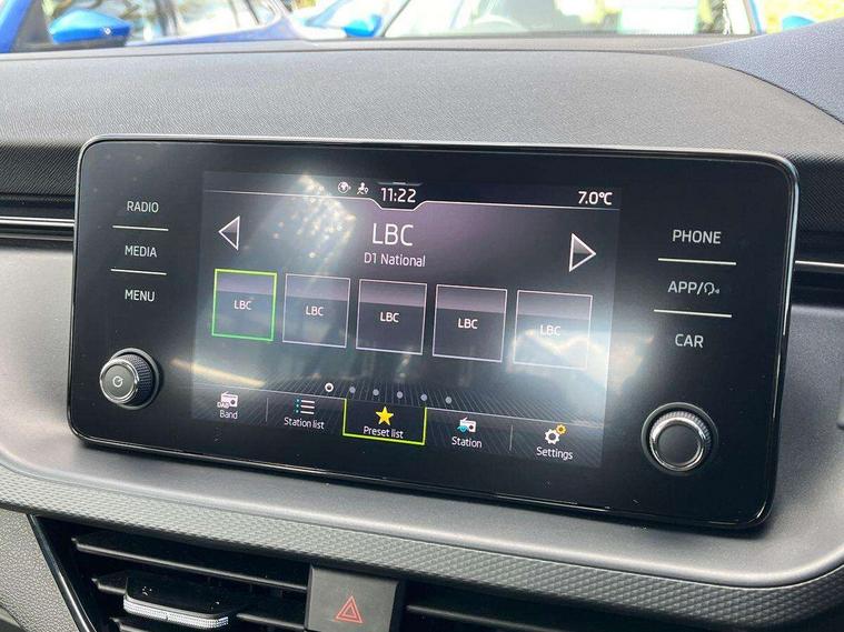 Bluetooth system, E-call, Front assist system, PAS, Service indicator, Speed limiter, Wireless Smartlink for Apple CarPlay (wired for Android Auto), 8 Speakers, Auxiliary input socket, DAB Digital radio, Body colour bumpers, Body colour door mirrors and handles, Chrome grille surround, Dimming rear view mirror with black surround, Electrically adjustable and heated door mirrors, Front and rear electric windows, Headlight range control, Heated rear window, LED rear lights - low functionality, LED third brake light, Light sensors, Rain sensor, Rear fog lights, Rear side wing doors, Rear wiper, 12V Accessory socket in centre console, 3 seat bench in 2nd row, Chrome inner door handles, Cloth upholstery, Front head restraints, Glove compartment with illumination, Ice scraper, Isofix child seat fittings on outer rear seats, ISOFIX on front passenger seat, Manual lumbar support for front seats, Rake/reach adjustable steering wheel, Reading lights, Single front passenger seat, Sun visors with illumination on front passenger, Textile floor mats, Third rear headrest, Top tether for front passenger seat, Umbrella in driver's door, 3x3 point rear seatbelts, Airbags - driver and front passenger, ESP, Front passenger airbag deactivation switch, Front side airbags with curtain airbags, Hill hold control, Manual parking brake, Manual rear child locks, One tone horn, Rear disc brakes, Seatbelt reminder for driver an co-driver, Traction control, Tyre pressure monitor, Anti-theft alarm system with interior monitoring, backup horn, towing protection and remote central locking with SAFE system, Anti-theft wheel bolts, Electronic engine immobilizer,