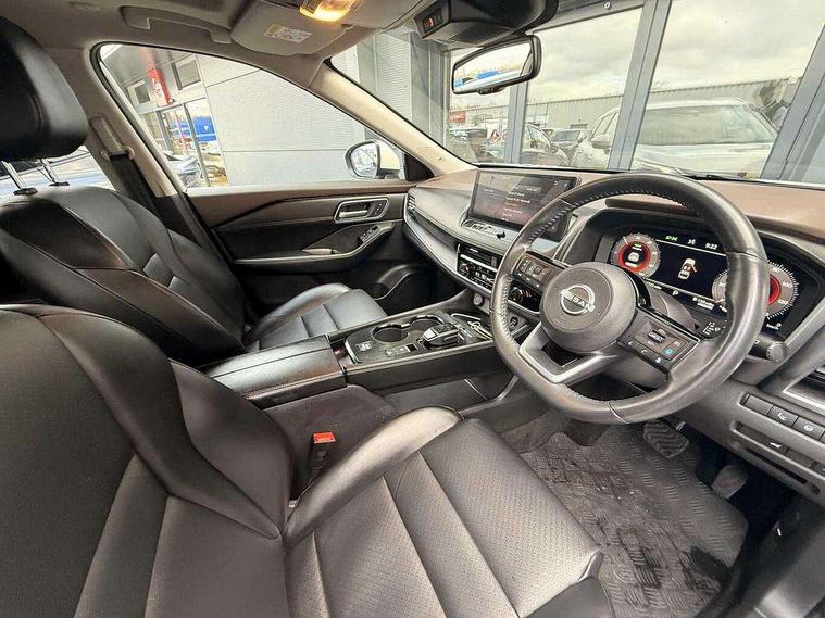 Advanced 10.8" head up display, Android auto/Apple CarPlay (Wired), Blind spot warning, Drive modes (sport, normal, eco), e-Pedal step, Electric speed sensitive power steering, Emergency and breakdown call, Front and rear parking sensors, Full Digital 12.3" TFT Digital Combimeter, Google maps services - search, weather, 3D maps and Google street view, Hands free power tailgate, Idle stop/start system, Intelligent around view monitor, Intelligent driver alert system, Intelligent forward collision warning, Intelligent lane departure warning, Intelligent lane intervention, Intelligent lane keep assist, Lane departure prevention, Maximum speed limiter, Moving object detection, Nissan connect 12.3 inch touchscreen infotainment system, Nissan connect nav with TomTom traffic, Pro pilot and head up display, ProPilot park, Push button starter, Rear cross traffic alert, Rear view camera, Remote control services - door locks, lights, horn and car locator, Telematics - notifications and connectivity services, TomTom live traffic services, Traffic jam pilot, Traffic sign recognition with legal speed adjustment, Trip computer, Virtual personal assistant and firmware over the air capability, Wireless apple carplay, Wireless charging pad, 6 speakers, AM/FM audio system with DAB, Bluetooth audio streaming, Front USB connections (Type-A and Type-C), Rear USB charging only ports (Type-A and Type-C), 3rd brake light, Auto dimming rear view mirror, Auto rear wiper when reversing, Body colour mirror caps, Body coloured door handles, Bodyside mouldings, Chrome side window finisher, e-POWER badging, Electric auto folding door mirrors, Electrically adjustable and heated door mirrors, Follow me home headlights, Headlights auto levelling system, High beam assist, Intelligent auto headlights, LED daytime running lights, LED headlights with adaptive driving beam, LED rear lights, One touch front and rear electric windows with remote opening and closing, Partially body coloured bumpers, Rain sensing wipers, Rear privacy glass, Rear reversing light (bulb lighting), Rear roof spoiler, Rear side wing doors, Rear styling plate, Shark fin antenna, Splash free wipers, Super UV and infrared cut glass, Thermaclear heated windscreen, Three blink turn signal, 12v power socket in dashboard and luggage, 3 bench rear seats in 2nd row, 3 rear headrests, Butteryfly console, Chrome interior door handles, Driver and front passenger sunvisors with illuminated vanity mirrors, Driver seat back pocket, Electric adjustable 2 way lumbar support for driver, Electric adjustable 2 way lumbar support for passenger seat, Electrically adjustable driver seat, Front and rear heated seats, Front centre console and armrest, Front cupholders, Front door with bottle holders, Heated steering wheel, Height adjustable driver's seat, Height adjustable front headrests, Height adjustable passenger seat, Leather shift knob, Leather steering wheel, Luggage board system, Luggage space lighting, Multifunction steering wheel, Passenger seat back pocket, Rear armrest with 2 cupholders, Rear door bottle holders, Single front passenger seat, Sliding second row seats, Split folding 2nd row - 40/20/40, Steering column mounted gear shift paddles, Synthetic leather monoform upholstery, Tilt/telescopic adjustable steering wheel, Tri zone automatic climate control with pollen filter, Two rear isofix child seat anchorage points with top tether, Sky pack - X-Trail, 3x3 point rear seatbelt pretensioners + load limiters, ABS with EBD and brake assist, Active brake limited slip, Auto hold function, Child locks on rear doors, Curtain and front side, far side airbags, Driver and passenger airbags, Driver, passenger and 2nd row rear seat belt reminder, Electronic parking brake, Front seatbelt pretensioners + load limiters, Height adjustable front seatbelts, Hill start assist, Intelligent blind spot intervention, Intelligent front emergency braking with pedestrian, cyclist recognition and junction assist, Intelligent rear automatic braking, Tyre pressure monitoring system, Vehicle dynamic control, Engine immobiliser, Intelligent Key, Remote central door locking with deadlocking, Thatcham Cat.1 alarm, 19" Diamond cut alloy wheels, Tyre puncture repair kit,
