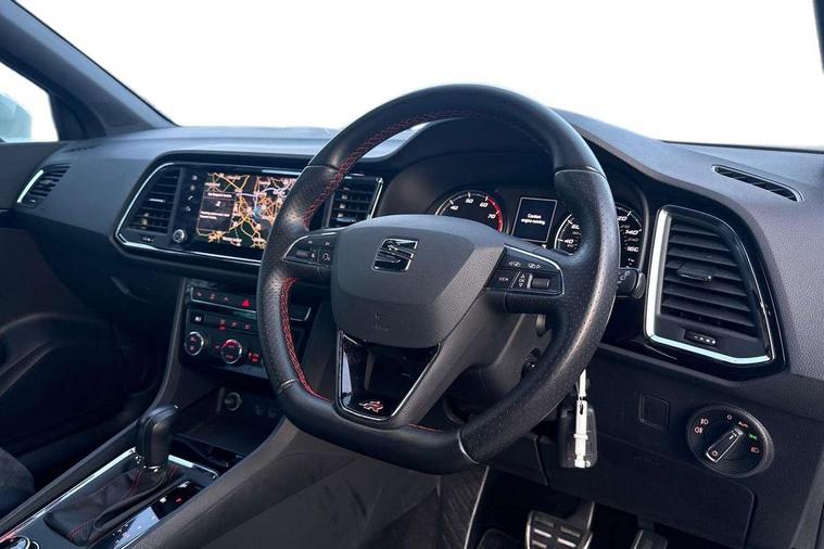 8" Digital cockpit, Colour multi-function on board computer display, E-call, Electric tailgate, Outside temperature gauge, Progressive power assisted steering, Rear view camera, SEAT drive profile with driving experience button - Normal, Sport, Eco and Individual mode, gearshift, steering and throttle response, Self parking functionality (includes front and rear parking sensors), Start/stop system, Trip computer, wired and wireless full link smartphone integration, Wireless phone charger, Steering wheel mounted audio/phone controls, Black wheel arch surrounds, Body colour bumpers, Chrome front grille frame, Chrome roof rails, Chrome side window trim, Dark tinted rear windows, Daytime running lights, Door mirrors with welcome light silhouette, Dynamic headlight range control with self adjusting whilst driving, Electric adjustable/heated/folding door mirrors, Front and rear electric windows, Front grille hot stamping, Full LED headlamps with lens and LED front fog lamps with cornering function, Heat reflecting windscreen, Illuminated aluminium front door sill, LED 3rd brake light, LED rear tail lights with dynamic indicators, Rear exhaust tailpipe, Rear fog lights, Rear side wing doors, Rear wash/wipe, Reflex silver side mouldings, Variable front intermittent wipers, 12V socket in front, 3 seat bench in 2nd row, 60/40 split folding rear seat, Dinamica upholstery with front comfort seats, Drawer under right front seat, Dual zone climate control, Front and rear head restraints, Front centre armrest, Front seat back storage pockets, Height adjustable driver and passenger seat with lumbar adjustment, ISOFIX points in outer rear seats with top tether anchorage points, Leather sports steering wheel and gear knob, Rear armrest and easy back seat release mechanism from boot, Single front passenger seat, Steering wheel mounted gearshift paddles, Convenience pack - Ateca, Interior lighting pack - Ateca, Navigation system pack with DAB - Ateca, Safety and driving pack (M) - Ateca, Safety and driving pack with attention and drowsiness assist - Ateca, 3x3 point rear seatbelts, ABS, Traction control system (TCS), Electronic stability control (ESC) and Electronic differential lock system (XDS), Airbags - Driver and front passenger airbag with deactivation, front side, two curtain and driver's knee airbags, Electric parking brake with auto hold function, Front and rear seatbelt reminder, Hill hold control, Manual rear child locks, Single tone horn, Tiredness recognition system, Tyre pressure monitoring system, Alarm, Keyless entry, Locking wheel bolts, Remote central locking, Chrome interior detailing, 18" Brillaint silver alloy wheels,