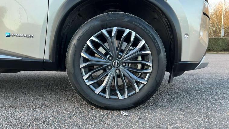 Advanced 10.8" head up display, Android auto wireless, Blind spot warning, Drive assist custom mode, Drive modes (sport, normal, eco), Driver drowsiness and attention warning, e-Pedal step, Electric speed sensitive power steering, Emergency and breakdown call, Event data recorder, Front and rear parking sensors, Full Digital 12.3" TFT Digital Combimeter, Google maps services - search, weather, 3D maps and Google street view, Hands free power tailgate, Idle stop/start system, Intelligent around view monitor, Intelligent Cruise control (ICC), Intelligent driver alert system, Intelligent forward collision warning, Intelligent lane departure warning, Intelligent lane intervention, Intelligent lane keep assist, Lane departure prevention, Maximum speed limiter, Moving object detection, Nissan connect 12.3 inch touchscreen infotainment system, Nissan connect nav with TomTom traffic, Propilot assist with Navi-Link, ProPilot park, Push button starter, Rear cross traffic alert, Rear view camera, Remote control services - door locks, lights, horn and car locator, Reversing detection, Telematics - notifications and connectivity services, Traffic jam pilot, Traffic sign recognition with legal speed adjustment, Trip computer, Virtual personal assistant and firmware over the air capability, Wireless apple carplay, Wireless charging pad, AM/FM audio system with DAB, Bluetooth audio streaming, Bose premium acoustimass bass box with digital amplifier, Bose premium sound system with 10 speakers, Digital amplifier, Front USB connections (Type-A and Type-C), Rear USB charging only ports 2 Type-C, Auto rear wiper when reversing, Body colour mirror caps, Body coloured door handles, Bodyside mouldings, Chrome side window finisher, e-POWER badging, Electric auto folding door mirrors, Electric sunroof/sunshade, Electrically adjustable and heated door mirrors, Follow me home headlights, Headlights auto levelling system, High beam assist, Intelligent auto headlights, LED 3rd brake light, LED daytime running lights, LED front fog lights, LED headlights with adaptive driving beam, LED rear lights, Memory function for door mirrors, One touch front and rear electric windows with remote opening and closing, Partially body coloured bumpers, Rain sensing wipers, Rear privacy glass, Rear reversing light (bulb lighting), Rear roof spoiler, Rear side wing doors, Rear styling plate, Reverse tilting door mirrors, Roof rails, Shark fin antenna, Smart rear view mirror with auto dimming, Splash free wipers, Super UV and infrared cut glass, Thermaclear heated windscreen, Three blink turn signal, 12v power socket in dashboard and luggage, 3 bench rear seats in 2nd row, 3 rear headrests, 40/20/40 folding rear seats with recline, Butteryfly console, Chrome interior door handles, Dark headlining, Driver and front passenger sunvisors with illuminated vanity mirrors, Driver seat back pocket, Electric adjustable 2 way lumbar support for driver, Electric adjustable 2 way lumbar support for passenger seat, Electric adjustable driver and passenger seat with memory function, Fore/Aft adjustable rear seats, Front and rear heated seats, Front centre console and armrest, Front cupholders, Front door with bottle holders, Heated steering wheel, Height adjustable driver's seat, Height adjustable front headrests, Height adjustable passenger seat, Leather shift knob, Leather steering wheel, Luggage board system, Luggage space lighting, Multifunction steering wheel, Passenger seat back pocket, Quilted premium leather upholstery, Rear armrest with 2 cupholders, Rear door bottle holders, Single front passenger seat, Sliding second row seats, Steering column mounted gear shift paddles, Tilt/telescopic adjustable steering wheel, Tri zone automatic climate control with pollen filter, Two rear isofix child seat anchorage points with top tether, Sky pack - X-Trail, 3x3 point rear seatbelt pretensioners + load limiters, ABS with EBD and brake assist, Active brake limited slip, Auto hold function, Child locks on rear doors, Curtain and front side, far side airbags, Driver and passenger airbags, Driver, passenger and 2nd row rear seat belt reminder, Electronic parking brake, Front seatbelt pretensioners + load limiters, Height adjustable front seatbelts, Hill start assist, Intelligent blind spot intervention, Intelligent front emergency braking with pedestrian, cyclist recognition and junction assist, Intelligent rear automatic braking, Tyre pressure monitoring system, Vehicle dynamic control, Advance intelligent key with driver memory storage (seats, mirrors, audio), Approach unlock and walk away lock, Engine immobiliser, Remote central door locking with deadlocking, Thatcham Cat.1 alarm, Tyre puncture repair kit,