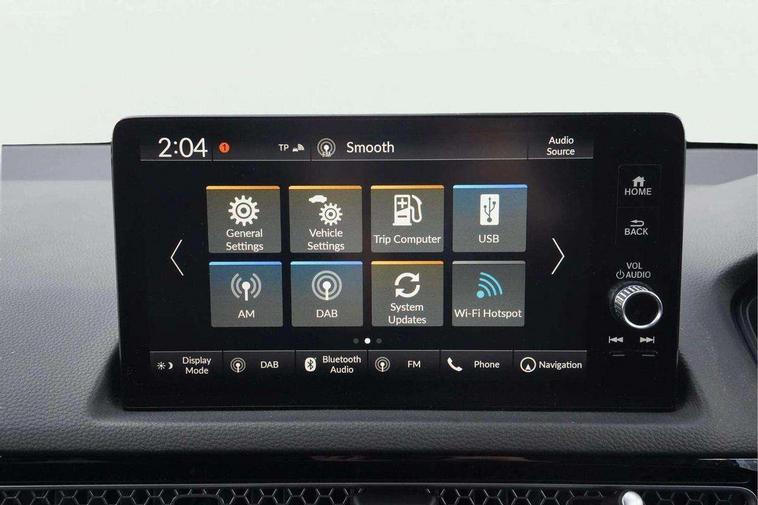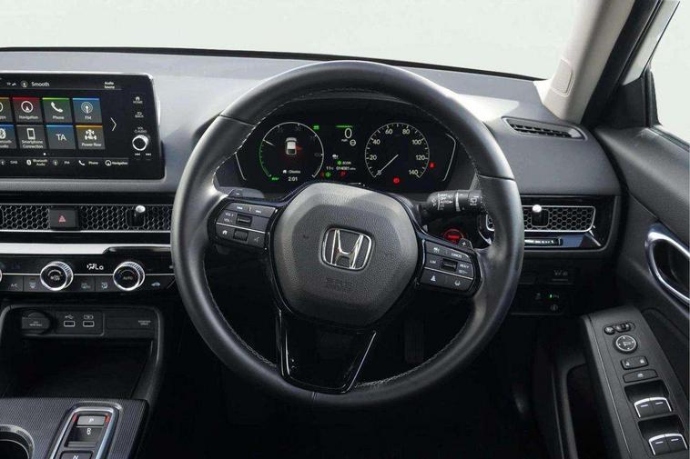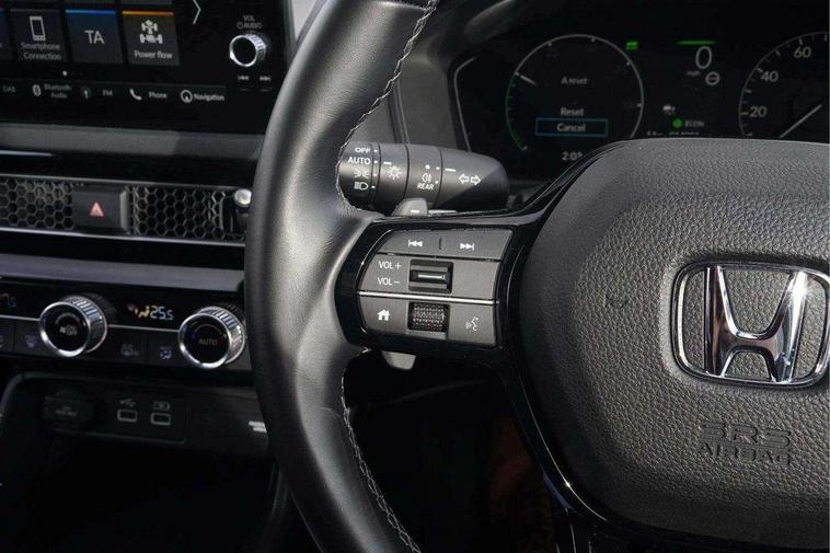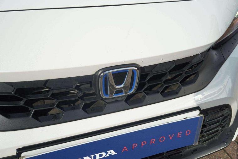 7" Multi information display screen, Adaptive cruise control, Adaptive motion for electric power steering, Adjustable speed limiter, Agile handling assist, BLIS (Blind Spot Information System) with Cross Traffic Monitor, Bluetooth hands free telephone connection, Driving modes, Economy mode, Electric power steering wheel with variable gear ratio steering, Emergency call service, Emergency stop signalling system, Forward collision warning, Front and rear parking sensors, Honda CONNECT with Navigation 9" touchscreen, AM/FM/DAB, Apple Carplay and Android Auto, live traffic info, Honda sensing, Idle stop, Intelligent speed limiter, Lane departure warning system, Lane keep assist, Low speed following, Power meter, Rear parking camera, Road departure mitigation, Tailgate, Traffic jam assist, Traffic sign recognition, Wireless apple carplay, Vehicle stability assist, 'Shark fin' mobile antenna, 2x USB Front socket (1 data & 1 charge), 8 Speakers, Digital Audio Broadcast (DAB) Tuner, Front tweeters, Steering wheel mounted audio controls, Aspherical driver door mirrors, Auto headlight adjuster, Auto headlights, Automatic coming/leaving home lighting function, Automatic rain sensing wipers, Body colour door handles, Body colour door mirrors, Chrome window garnish, Electric adjustable heated door mirrors, Electric front and rear windows, Electrically folding door mirrors, Headlight extension black, High beam assist, High level LED brake light, LED daytime running lights, LED front turn type, LED Headlights, LED rear lights, Material finish grille, Pop up hood, Privacy glass, Rear side wing doors, Rear wiper, Single hidden exhaust pipe, Variable front intermittent wipers, 3 seat bench in 2nd row, 60/40 split folding rear seat, Cargo accessory power socket, Cargo net hooks, Driver and front passenger seat armrests, Driver's electric lumbar adjustment, Driver's seat height adjustment, Dual climate control air conditioning system, Fabric upholstery, Front accessory power socket, Front map lights, Front/rear courtesy lights, Glovebox light, Heated front seats, Hybrid emblem, Isofix points/i size, Leather steering wheel, Meter Illumination white, Passenger seat back pocket, Platinum chrome interior door handles, Rear head restraints, Rear reading lights, Rear seat centre armrest, Single front passenger seat, Sunvisors with illuminated vanity mirrors, Tilt/telescopic adjustable steering wheel, Tonneau cover, Trunk light, USB Rear number 2 x charge, White ambient roof light, 3x3 point rear seatbelts, ABS+EBD+Brake assist, Airbags - driver and front passenger, Airbags - Knee (AS), Airbags - Knee (DR), Anti-whiplash front headrests, Brake hold function, Collision mitigation braking system, Collision mitigation throttle control, Deflation detection system, Driver SRS airbag (single stage inflation), Electronic parking brake with auto hold, Front and rear curtain airbags, Front and rear seat belts with emergency locking retractor (ELR), Front centre airbag, Front side airbags, Hill start assist, Low speed brake system, Manual child lock in rear doors, Passenger airbag deactivate switch, Rear airbags, Regenerative braking/deceleration paddle control, Immobiliser, Mirrors and windows key fob, Remote central locking with 2 jack knife keys, Security alarm, Selectable door unlock, Smart entry + Smart start, Superlocking, Tilt sensors, Ultrasonic security sensor, 17" 2 tone diamond cut alloy wheels, Tyre repair kit,