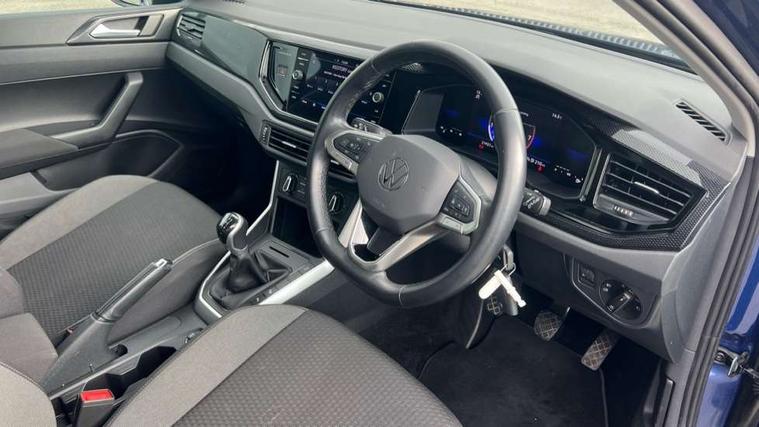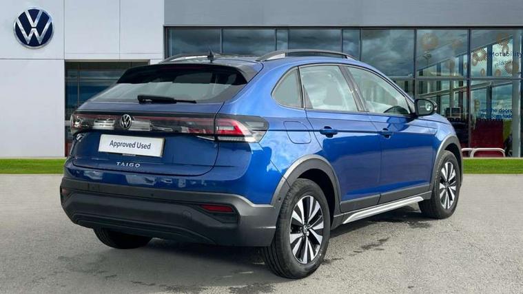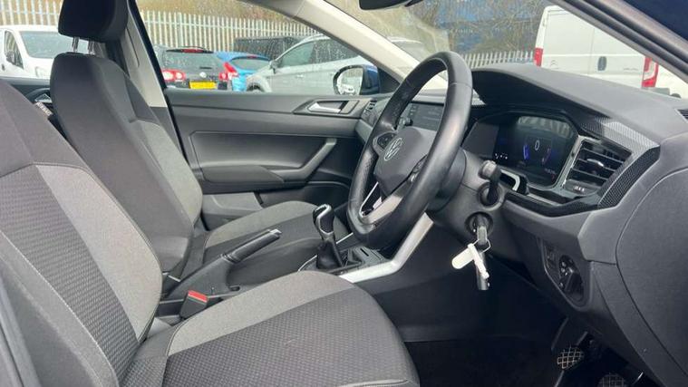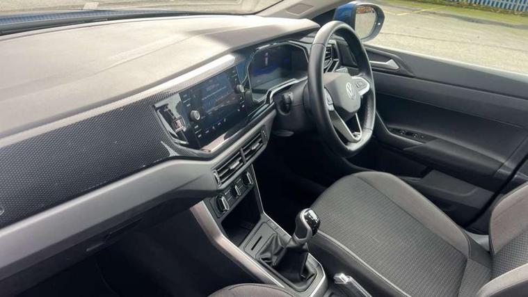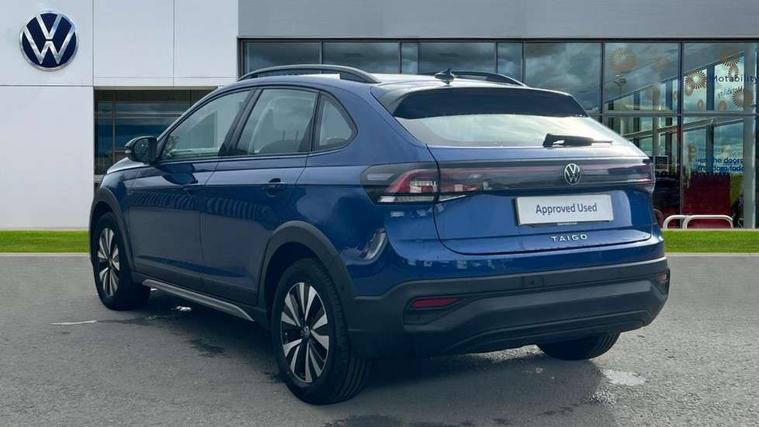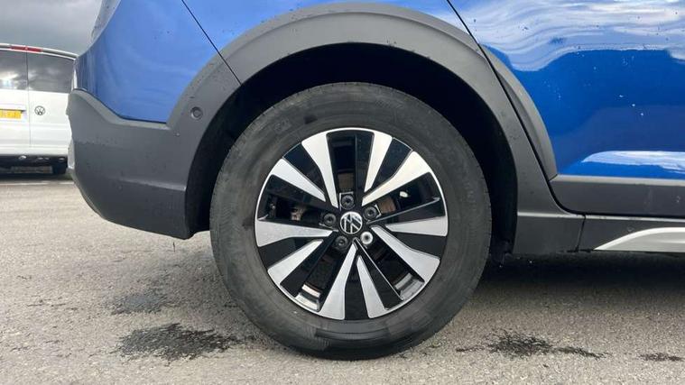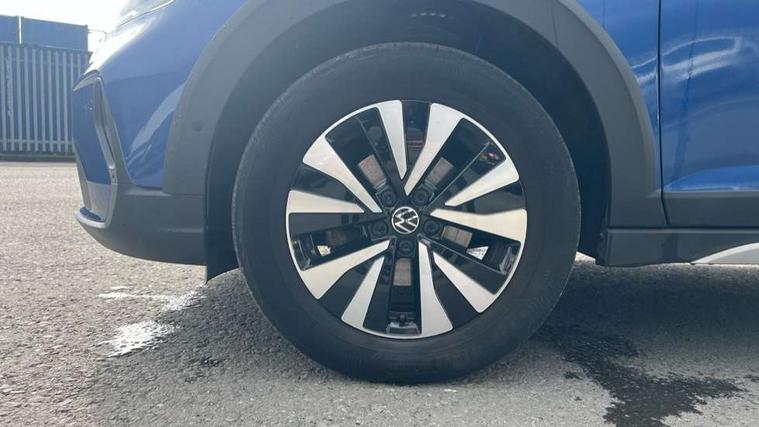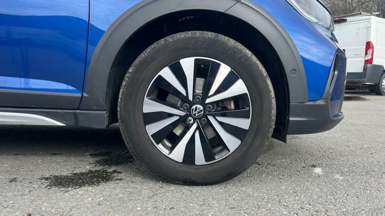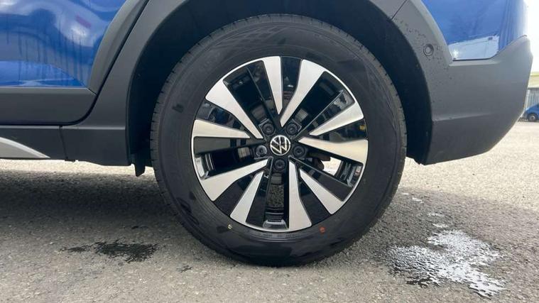 Driver alert system, e-Call (emergency call), Power Steering, Travel assist including emergency assist, Washer fluid level indicator, Wireless Charging including Bluetooth, Start-stop system with battery regeneration (recuperation - energy recovery during braking), WeConnect plus, Ambient lighting with logo projection, Aspherical driver's exterior mirror, Auto headlights, Body coloured bumpers, Body coloured exterior mirror housings and door handles, Electric windows, External USB type C socket and charging sockets, Front fog lamps with cornering function, Headlight range control, Heat insulating glass windscreen, LED headlamps, LED rear combination lamp, LED third brake light, Left convex exterior mirror, Power folding adjustable/heated exterior mirrors and front passenger exterior mirror lowering function, Rear fog light on one side, reversing light on both sides, Rear side wing doors, Rear wash/wipe with intermittent wipe setting, 'Slash/ Austin' Cloth upholstery, 12V socket in centre console, 2 front reading lights, 3 rear head restraints, 3 seat bench in 2nd row, Black carpets, Child seat anchor for child seat system i-Size, 2x top tether and child seat anchor in front on front passenger side, Door and side trim panels in titan black, Driver and front passenger seat height adjustment, Front centre armrest, Handbrake lever handle in leather, Height and reach adjustable steering wheel, Leather trimmed gear knob, Leather wrapped multifunction steering wheel, Luggage compartment floor, Luggage compartment light, Lumbar support for driver's and front passengers seat, Seat covers in titanium black, Single front passenger seat, Split folding backrest with centre armrest and unsplit rear seat bench, Storage compartment under front seats, Sun visors with illuminated vanity mirrors, Chrome Package - Taigo, Drivers assistance pack - Taigo, Light and Sight pack including High beam assist - Taigo, 2 x 3-point seatbelts/outer rear seats with ECE label, 3-point seat belts in front with pretensioner and height adjustment, 3-point seatbelt for centre rear seat, Driver and front passenger airbags with front passenger airbag de-activation, front side and curtain airbags, Driver and front passenger safety-optimised head restraints, Electronic stability control, Extended and predictive pedestrian/ cyclist protection, Front and rear disc brakes, Front curtain and side airbags with center airbag, Hill start assist, Manual rear child locks, Single tone horn, Tyre pressure loss indicator, Anti-theft alarm system with interior monitoring, backup horn, and towing protection, Anti-theft wheel bolts, Lava stone black gloss/matt decorative inserts in dash and front door panels, Low rolling resistance tyres,