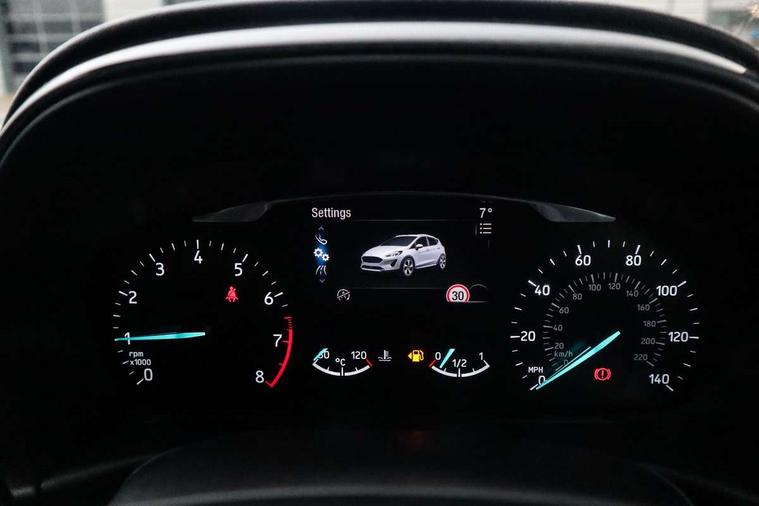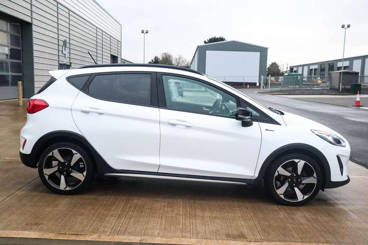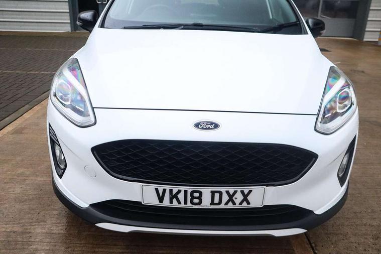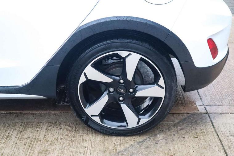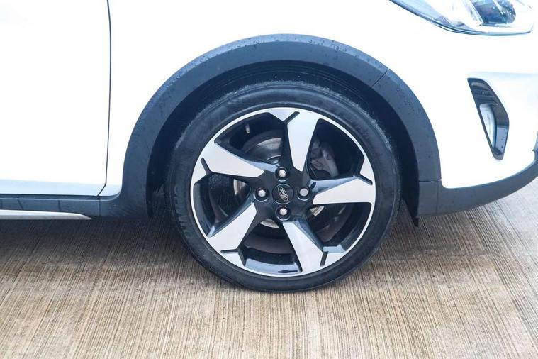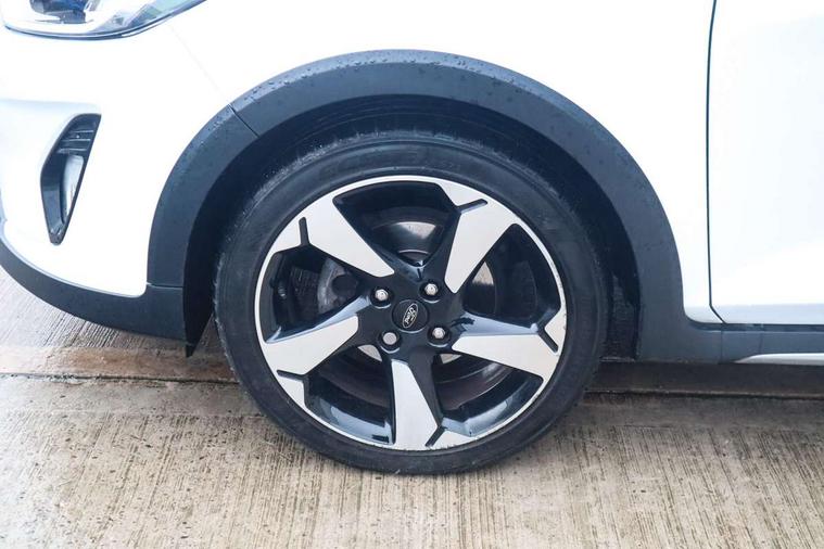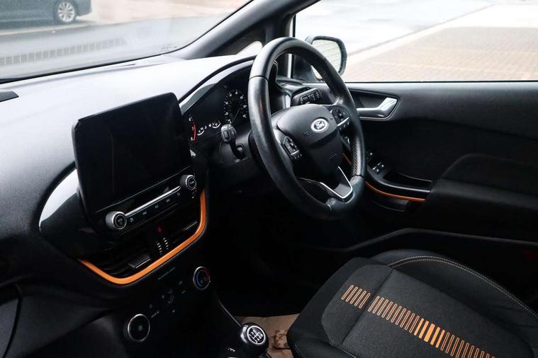 Bluetooth system, Cruise control, Drive mode selector, Driver alert system, Electric power steering, Lane keep assist, Speed limiter, SYNC Emergency Assistance, Traffic sign recognition, Trip computer, 2 USB ports, Auxiliary input socket, Bang and Olufsen premium sound with 10 speakers, Ford SYNC 3 DAB radio, apple car play and android auto with voice control, Steering wheel mounted controls, Auto dimming rear view mirror, Auto high beam, Automatic headlights, Black electric adjustable heated door mirrors, Black roof, Black roof rails, Body colour bumpers, Body colour door handles, Body colour rear spoiler, Chrome beltline trim, Chrome door handles, Cornering front fog lights, Electric front windows/one touch facility, Electric rear windows, LED daytime running lights, LED rear lights, Privacy glass, Quickclear heated windscreen, Rear wiper, Tinted glass, Upper front grille chrome surround, 12V Accessory socket in centre console, 3 spoke leather steering wheel, 60/40 split folding rear seat, Adjustable head restraints, Ambient lighting, Black headlining, Boot carpet, Centre console with armrest, Chrome inner door handles, Cloth upholstery, Driver's lumbar support, Footwell illumination, Front map reading lights, Front seat and rear pockets, Front/rear floor mats, Height adjustable driver's seat, Illuminated cup holders, Illuminated glovebox, Leather gear knob, Leather trimmed handbrake handle, Load area light, Manual air conditioning, Overhead console with sunglasses holder, Pollen filter, Rake/reach adjustable steering wheel, Rear centre head restraint, Yellow pack - Fiesta, 3 point seatbelts on all rear seats, ABS+EBA, Curtain airbags, Driver and passenger airbags, Drivers knee airbag, ESP + traction control, Front passenger airbag deactivation, Front side airbags, Hill start assist, Seatbelt warning, Tyre pressure monitoring system, Immobiliser, MyKey system, Remote central locking, Thatcham Cat.1 alarm, 17" 5 spoke alloy wheels with shadow black machined finish, Tyre repair kit,