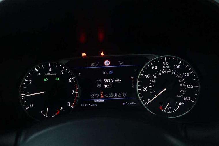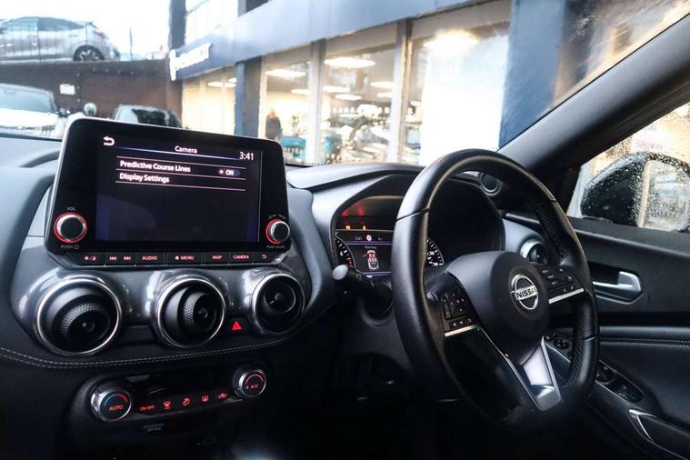 7" full colour TFT screen combimeter, 8" infotainment colour display with touch screen, Apple CarPlay and Google Android auto, Drive modes select (Eco, normal and sport), Emergency and breakdown call, Front parking sensor, Idle start/stop system, Intelligent lane intervention, Lane departure warning system, Nissan connect nav with TomTom traffic, Nissan connect services and Wifi connection, Outside temperature sensor, Power Steering, Rear parking sensor, Traffic sign recognition, Trip computer, Gasoline particulate filter, 6 speakers, Bluetooth system, USB, Aux-in and 12V socket, DAB Digital radio, Rear console USB port, Auto dimming interior rear view mirror, Automatic hazard signal with emergency stop signal, Body colour bumpers, Body colour door handles, Electrically adjustable door mirrors with integrated indicators, Follow me home headlights, Front and rear electric window with one touch driver window, Heated and auto folding door mirrors, High beam assist, LED daytime running lights, LED headlamps, LED rear fog lamp, LED rear lamps, Rain sensor windscreen wipers, Rear privacy glass, Rear wiper, Three blink turn signal, 3 height adjustable rear headrests, 60/40 split folding rear seat, Automatic climate control, Card holder on driver sunvisor, Cloth upholstery, Driver and passenger sliding and reclining seats, Driver side rear coat hanger, Driver/passenger sunvisors and vanity mirrors, Front and rear cabin lights, Front armrest, Front door pockets with bottle holders, Front head restraints, Front/rear passenger grab handles, Grey synthetic leather kneepad, Height adjustable driver's seat, Internal chrome door handles, Leather gearshift knob, Leather steering wheel, Luggage board, Luggage space lighting, Monoform sporty seats, Multifunction steering wheel, Rear door bottle holders, Telescopic steering wheel adjustment, Two cupholders in front centre console, Two rear isofix child seat anchorage points with top tether, Voice recognition switch on steering wheel, Welcome light and console tray ambient lighting, ABS with EBD and brake assist, Active ride control, Active Trace Control, Driver and passenger airbags, Driver and passenger side airbags, Electric handbrake with auto hold function, Electronic Stability Programme (ESP), Front and rear curtain airbags, Height adjustable seatbelts, Hill start assist, Intelligent emergency braking with pedestrian and cyclist recognition, Seatbelt reminder for driver/front passenger and rear seats, Single tone horn, Three 3 point rear seatbelts, Traction control, Tyre pressure monitoring system, VDC Dynamic Vehicle Control, Ventilated rear brake discs, Alarm, Immobiliser, Intelligent Key with push button starter, Remote central locking,