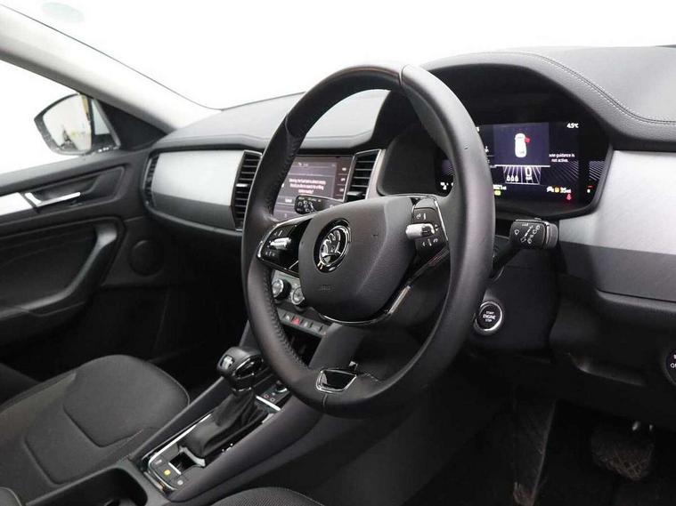 8" Digital display, Amundsen satellite navigation with 8" touchscreen, integrated Wi-Fi, web radio, Bluetooth system, Digital voice enhancement, e call+, ECO Stop/start function, Exterior temperature indicator, Power assist steering, Rear view camera, Smartlink wireless for apple carplay and wired for android auto, Speed limiter, Tailgate unlocking from outside, USB C Port x 2 in front centre console, 8 Speakers, DAB Digital radio, Aero front windscreen wipers with intermittent function, Aero rear window wiper, Auto dimming rear view mirror, Black wheel arch surrounds, Body colour bumpers, Body colour door mirrors and handles, Electric front and rear windows, Extended rear spoiler with finlets in gloss black, Front fog lights, Headlight washers, Heated rear window, Invisible tailpipe, LED rear fog light, LED third brake light in rear spoiler, Light assistant (coming/leaving home/tunnel light), Off-road style lower front bumper element, Privacy glass, Radiator grille frame in matt black with chrome strip, Rain and light sensors, Rear LED lights (high functionality) with welcome effect and dynamic indicators, Rear side wing doors, Safety reflectors on front and rear doors, Window control switches with black trim, 12V socket in boot, 2 rails with 2 hooks, 2 spoke multi-function leather steering wheel with paddle shift, 3 seat bench in 2nd row, 4 foldable roof handles with rear coat hooks, 60:40 foldable rear seat with sliding adjustment and backrest angle adjustment, Bottle holders in door panel in the 1.5 litre front and 1 litre rear, Chrome interior door handles, Cloth upholstery, Coat hooks on B pillar, Covered storage compartment on driver side, Dual zone automatic air conditioning with humidity sensor and control, Front and rear door armrest with black adductor trim, Front centre armrest with storage compartment, cup holder and 12V socket, Gear shift lever with chrome frame and black gloss insert, Grey headlining, Grey stitching in front and rear armrests and door armrests + door inserts, Height adjustable front headrests, Height adjustable front seats, Illuminated glovebox, Illuminated luggage compartment, Isofix child seat fittings in outer rear seats with top tether, Manually adjustable steering column, Net programme in boot (1x horizontal Net, 2x vertical Nets), Overhead glasses storage compartment, Pollen filter, Rear centre armrest with cupholders, Single front passenger seat, Sliding trunk cover, Small Bags on the inner sides of the front backrests, Sunvisors with illuminated vanity mirrors, Three rear height adjustable headrests, Ticket holder on A Pillar, Umbrella in door panel, Auto door release and activation of warning lights in the event of an accident, Driver and front passenger airbag with knee airbag and front passenger airbag deactivation, Electronic parking brake with hill start assist, Emergency rear braking signal, ESC (incl. ABS+MSR+ASR+EDS+HBA+DSR+RBS+MKB), Front assist with autonomous emergency braking, Front side airbags with curtain airbags, Fuel cut off safety device, Height adjustable front 3 point seatbelts + pretensioners, Hill hold control, Rear disc brakes, Safety vest holder in door, Seat belt reminder for all seats, Three point rear seat belts, Two tone horn, Tyre pressure monitor, Alarm with interior monitoring and tilt sensor with safe function, Anti-theft wheel bolts, Immobiliser, Keyless entry and start system (KESSY), Remote central locking with 2 keys, Grey stitching in dashboard,