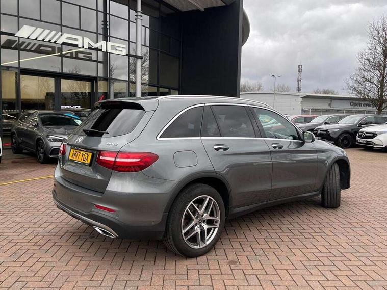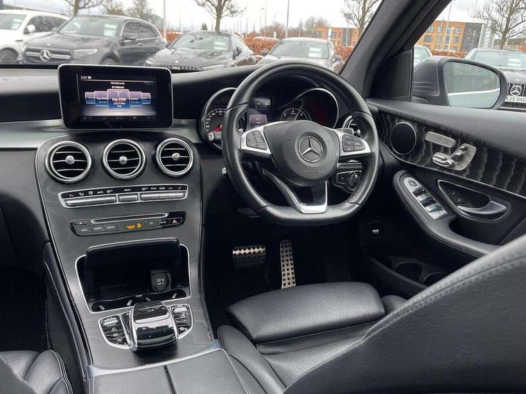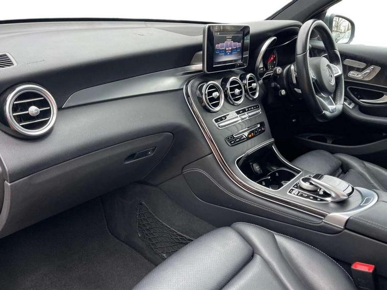 7" colour screen, Active park assist with parktronic system, Attention assist, Bluetooth interface for hands free telephone, Collision prevention assist, Crosswind Assist, Cruise control with speedtronic variable speed limiter, DYNAMIC SELECT with a choice of driving modes (ECO, Comfort, Sport, Sport+ and Individual), Garmin Map Pilot navigation system with SD card, touchpad and voice control, Multi function trip computer, Outside temperature gauge, Power opening/closing tailgate, Remote boot release, Speed sensitive steering, Diesel particulate filter, 5 speakers, DAB Digital radio, Frontbass loudspeakers, Mercedes Audio 20 radio/single CD + telephone keypad, USB connection, Adaptive brake lights, Aerodynamic rear spoiler, AMG bodystyling, Automatic headlights, Body coloured bumpers, Electric panoramic sunroof with sunblind, Electric windows one touch open/close, Electrically adjustable and heated door mirrors, Exhaust tailpipe finisher, Heated windscreen washers, LED daytime running lights, LED rear lamps, Privacy glass (to rear of B post), Rain sensor windscreen wipers, Range adjustable headlights, Rear wiper, Tinted glass all round, 2 cupholders in front centre console, 2 way rear head restraints, 3 spoke flat bottom AMG steering wheel in nappa leather, 4 way adjustable front head restraints, 4 way electric lumbar support for driver and front passenger, 40:20:40 split folding rear seats, AMG floor mats, AMG sports seats, Auto Mercedes-Benz child seat recognition sensor, Automatic climate control, Black roof lining, Dividing net - rear, Electric front seat height adjustment, Front door sills with Mercedes Benz lettering, Gearshift paddles, Heated front seats, Height/reach adjustable steering column, Illuminated glovebox, LED interior illumination, Multifunction steering wheel, Rear top tether child seat ISOFIX attachment, Sports pedals with stainless steel surfaces and rubber studs, Sunvisors with illuminated vanity mirrors, Easy-pack load compartment cover, Interior lighting pack - GLC, Memory pack - GLC, Mirror pack - GLC, Storage pack - GLC, 3 rear 3 point seatbelts, ABS with Brake Assist, Active bonnet, Adaptive brake system, Child proof door locks, Drivers knee airbag, Dual stage driver/passenger airbags, Electronic parking brake, ESP with ASR, Front and rear seatbelt reminder, Front passenger seat occupancy sensor, Front side airbags, Tyre pressure monitoring system, Warning triangle and first aid kit, Window airbags, Alarm system/interior protection/immobiliser, Automatic door locking, Keyless entry and keyless start, Remote central locking, Tyre inflation kit,