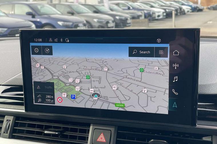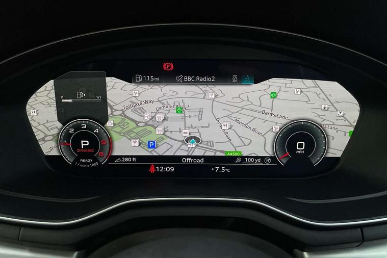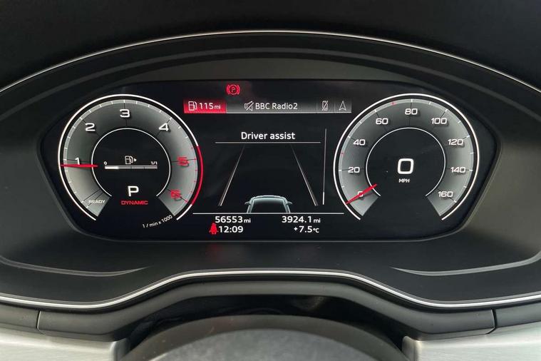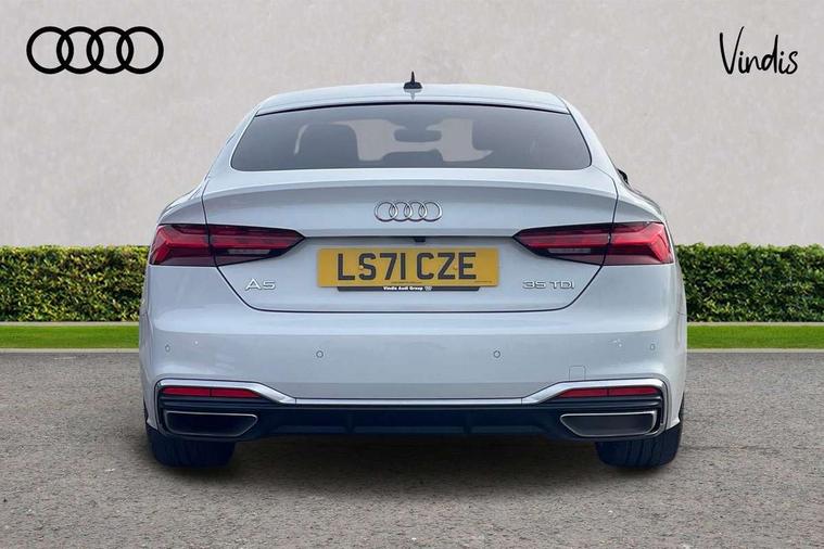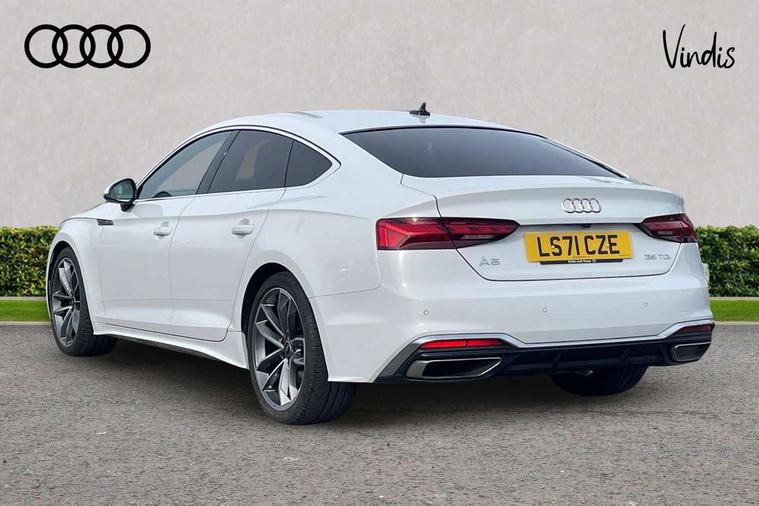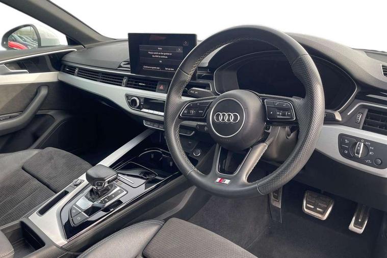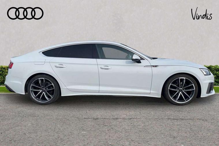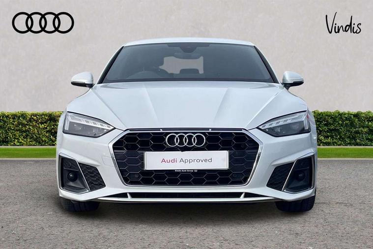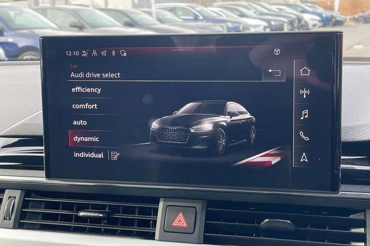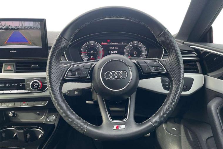 Audi connect safety and service (e-call), Audi connect with Amazon Alexa Integration, Audi drive select (Auto, Comfort, Dynamic, Efficiency and Individual), Audi parking system plus with front and rear sensors, Audi smartphone interface, Audi virtual cockpit - 12.3" full colour digital instrument cluster, vehicle/engine speed, Radio/media information+Driver assistance systems, Automatic start-stop system with coasting functionality and efficiency programme, Bluetooth interface, Electro-mechanical power steering, Email, calendar and text messages displayed via MMI, MMI nav+ with MMI touch - 10.1" high resolution MMI display, touch sensitive, 3D map, route/country info, dynamic route guide, personal route assist, Power operated tailgate, Rear view camera, Service interval indicator, Voice control system, Diesel particulate filter, Sports suspension lowered by 23mm, 8 passive loudspeakers, CD player, DAB digital radio reception, Two additional USB ports for rear passenger in rear centre console, Two SDXC card slots, Audi matrix LED headlights with LED rear lights + dynamic front and rear indicators, Auto dimming rear view mirror, Body colour bumpers, Body colour door handles, Body colour front spoiler lip, Body colour side sill trim, Body coloured door mirrors, Electric adjustable heated door mirrors, Electric folding door mirrors, Electric front windows, Front fog lights, Honeycomb structure radiator grille in grained matt black, LED daytime running lights, Matt aluminium silver tailpipe trim, Privacy glass, Rain and light sensors, S line badges on front wings, S line front and rear bumpers with side skirts, S Line rear diffuser in matt titanium black with trim strip in matt aluminium silver, Side air inlets in grained matt black with matt aluminium silver inlay, Windscreen with acoustic glazing, 4 way electric lumbar support for driver and front passenger, 40/20/40 split folding 3 seater rear bench seat, Adjustable steering column, Black cloth headlining, Black perforated leather gearknob, Contrast stitching on seats, steering wheel and gear lever gaiter, Deluxe 3 zone electronic climate control, Front centre armrest, Front head restraints, Front/rear floor mats, Heated front seats, Illuminated door sill trim with S logo, ISOFIX child seat mounting and top tether, Luggage compartment mat, Manual seat adjustment, Rear headrests, Stainless steel pedals, Sunvisors with vanity mirrors, Tool kit, LED interior light pack - A5/RS5, 3x3 point rear seatbelts, 6 airbags - Driver, front passenger, curtain and side airbags, Electromechanical parking brake, Electronic Stabilisation Control (ESC) including ABS, ASR and EDL, Front passenger airbag deactivation, Height adjustable front seatbelts, Hill hold assist, Multi collision brake assist, Pop-up bonnet for pedestrian protection, Pre sense city, Seatbelt monitoring, Tyre pressure warning, Variable restraint system, Warning triangle and first aid kit, Anti theft alarm system, Anti theft wheel bolts, Immobiliser, Keyless Go, Remote central locking, Matt brushed aluminium inlays, Tyre repair kit,