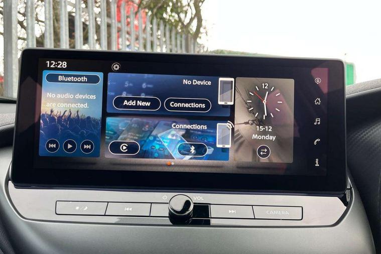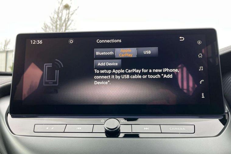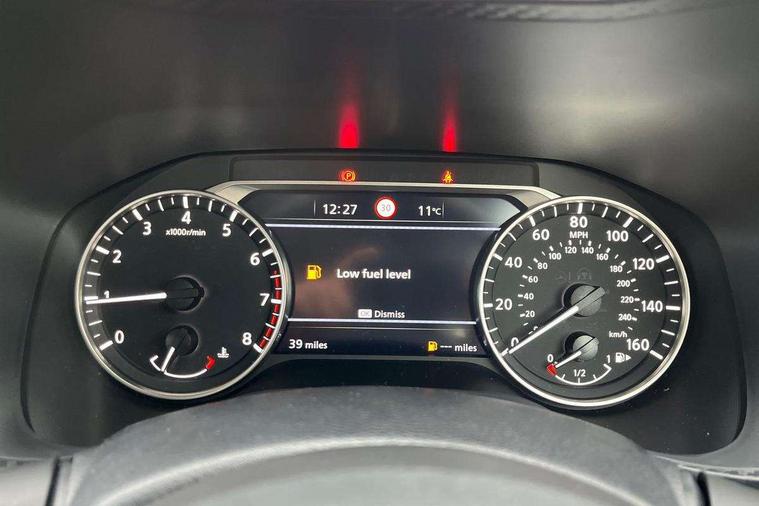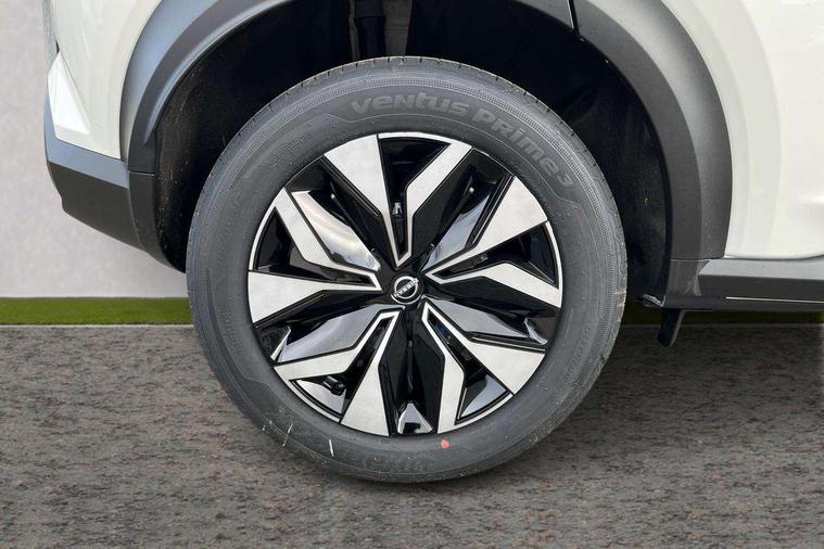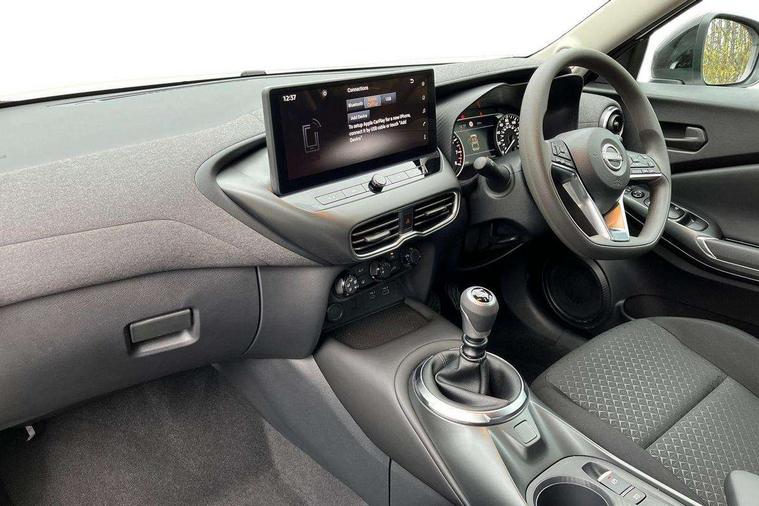 7" full colour TFT screen combimeter, Cruise control + speed limiter, Emergency and breakdown call, Idle start/stop system, Intelligent driver alert system, Intelligent lane intervention, Lane departure warning system, Nissan connect 12.3" touch screen entertainment system, Outside temperature sensor, Power Steering, Rear view camera, Traffic sign recognition, Trip computer, Voice recognition, WiFi connectivity, Wireless Apple CarPlay and Google Android auto, 2 X Rear console USB port, 4 speakers, Bluetooth system, USB, Aux-in and 12V socket, DAB Digital radio, Automatic hazard signal with emergency stop signal, Body colour door handles, Electrically adjustable door mirrors with integrated indicators, Follow me home headlights, Front and rear electric window with one touch driver window, High beam assist, LED 3rd brake light, LED daytime running lights, LED headlamps, LED rear fog lamp, LED rear lamps, Manual dimming framed interior rear view mirror, Rear side wing doors, Rear wiper, Roof spoiler, Shark fin roof antenna in solid Black, Three blink turn signal, 3 height adjustable rear headrests, 3 seat bench in 2nd row, 60/40 split folding rear seat, Cloth upholstery, Driver/passenger sunvisors and vanity mirrors, Front and rear cabin lights, Front armrest, Front door pockets with bottle holders, Front head restraints, Height adjustable driver's seat, Luggage space lighting, Monoform sporty seats, Multifunction steering wheel, Rear door bottle holders, Single front passenger seat, Smooth synthetic leather steering wheel, Telescopic steering wheel adjustment, Two cupholders in front centre console, Two rear isofix child seat anchorage points with top tether, Welcome light and console tray ambient lighting, ABS with EBD and brake assist, Active ride control, Active Trace Control, Driver and passenger airbags, Driver and passenger side airbags, Electric handbrake with auto hold function, Electronic Stability Programme (ESP), Front and rear curtain airbags, Height adjustable seatbelts, Hill start assist, Intelligent emergency braking with pedestrian and cyclist recognition, Rear door child safety locks, Seatbelt reminder for driver/front passenger and rear seats, Three 3 point rear seatbelts, Traction control, Tyre pressure monitoring system, VDC Dynamic Vehicle Control, Alarm, Immobiliser, Remote central locking, 17" Sakura Flex wheels, Tyre puncture repair kit,