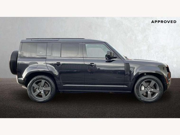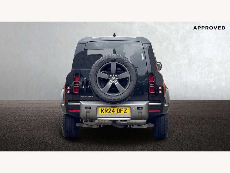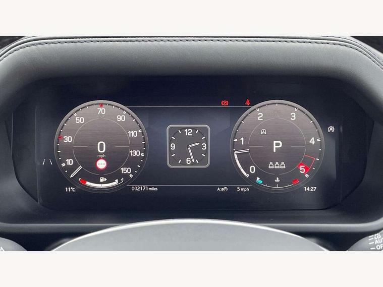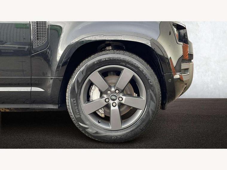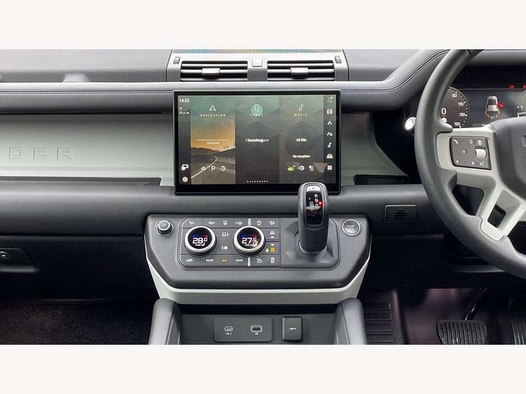 11.4" touchscreen, 360 degree parking aid, 3D Surround Camera with 360 View, 180 Rear View, Front Traffic Detection, Forward Vehicle Guidance, Tow Hitch Assist and clear sight Ground View, Adaptive cruise control, Android Auto, Apple CarPlay, Assisted tailgate with soft close, Blind spot assist, Bluetooth system, Brake pad wear indicator, Clear exit monitor, Connected navigation pro, Driver condition monitor, Electric power assisted steering (EPAS), Interactive driver display, Lane keep assist, Push button start, Rear collision monitor, Rear traffic monitor, Traffic sign recognition with adaptive speed limiter, Trip computer, Wade Sensing, 8 speed automatic transmission, All wheel drive system, Twin speed transfer box, DAB Radio (Digital Audio Broadcasting), Pivi pro connected, Automatic headlight levelling, Automatic headlights, Black exposed rear recovery eyes, Centre high mounted stop light, ClearSight interior rear view mirror, Electric heated/power fold door mirrors with approach lights and auto dimming driver side, Electric windows with one touch open/close and anti-trap, Follow me home lighting, Front fog lights, Heated rear window with timer, Heated windscreen, LED tail lights, Privacy glass, Puddle lights, Rain sensing windscreen wipers, Rear fog lights, Rear side wing doors, Rear wiper, Side hinged tailgate, Trailer stability assist, X-Dynamic badge, 12V power socket in loadspace, 14 way heated and cooled electric adjustable memory front seats with 4 way manual headrests, 3 seat bench in 2nd row, Alpine lights, Configurable cabin lighting, Durable rubber cabin flooring, Durable rubber loadspace flooring, Electric reach + rake adjustable steering column, Extended leather upgrade, Footwell lights, Front passenger isofix child seat attachment, Heated steering wheel, Loadspace cover, Loadspace Hook, Multifunction steering wheel, Overhead stowage for sunglasses, Premium cabin lighting, Rear headrests, Rear ISOFIX, Rear reading lights, Single front passenger seat, Standard seat configuration, Storage glovebox, Sunvisors with illuminated vanity mirrors, Online pack with data plan - Defender, 5 x 3 point seatbelts, ABS, Brake hold function, Cornering brake control (CBC), Customer configurable autolock, DSC - Dynamic Stability Control, EBD - Electronic brakeforce distribution, Electric parking brake (EPB), Emergency brake assist, Emergency braking, ESP + traction control, Front airbags with passenger seat occupant detector, HDC - Hill descent control, Hill launch assist, Low traction launch, Power operated child locks, Remote for (e-Call, Optimised assistance call, InControl app, Climate, beep and flash and door), RSC - Roll stability control, Seat belt reminder, TPMS (Tyre pressure monitoring system), Alarm, Immobiliser, Intrusion sensor, Keyless entry, Locking wheel nuts,