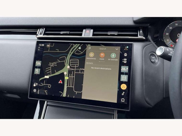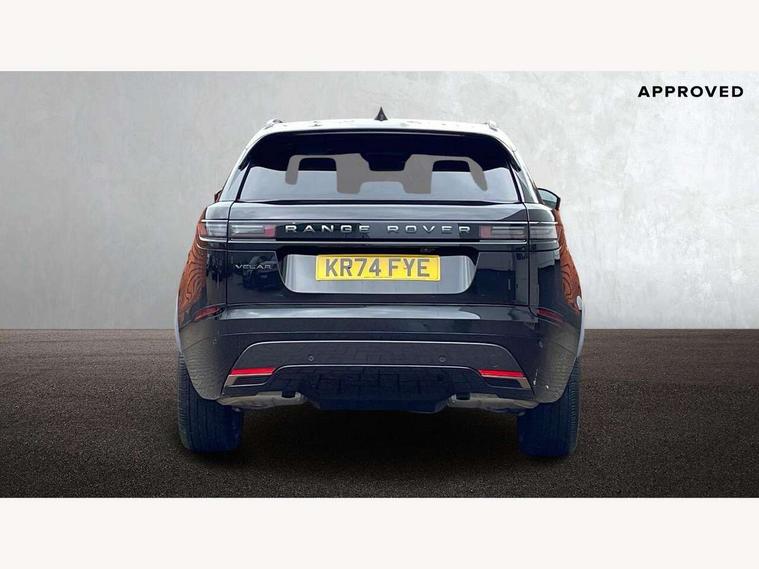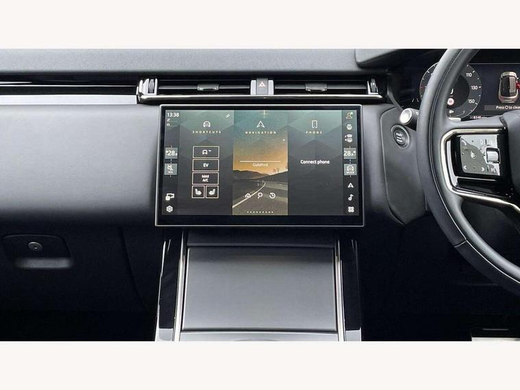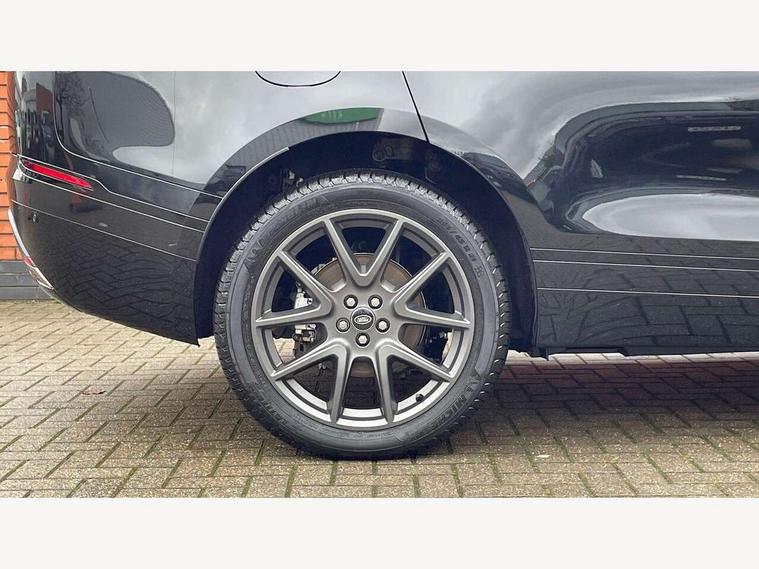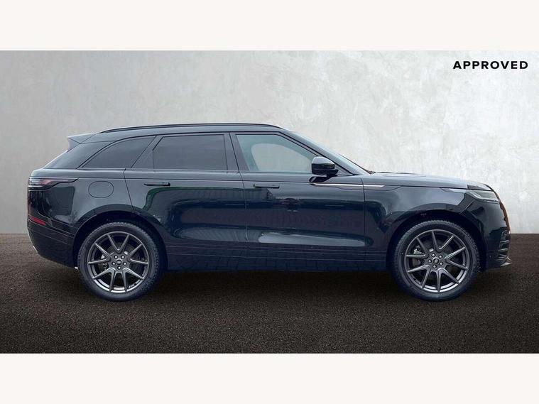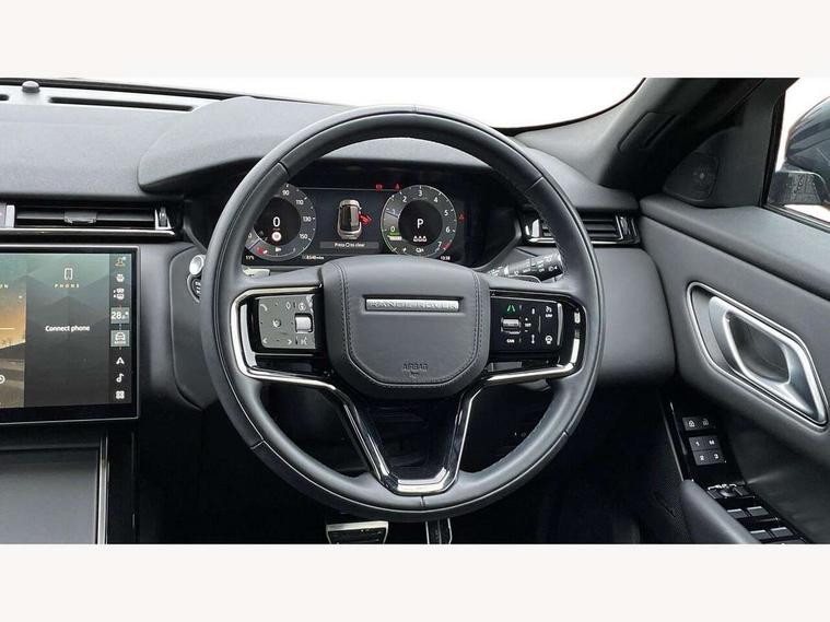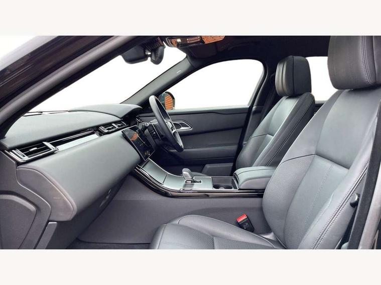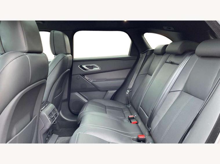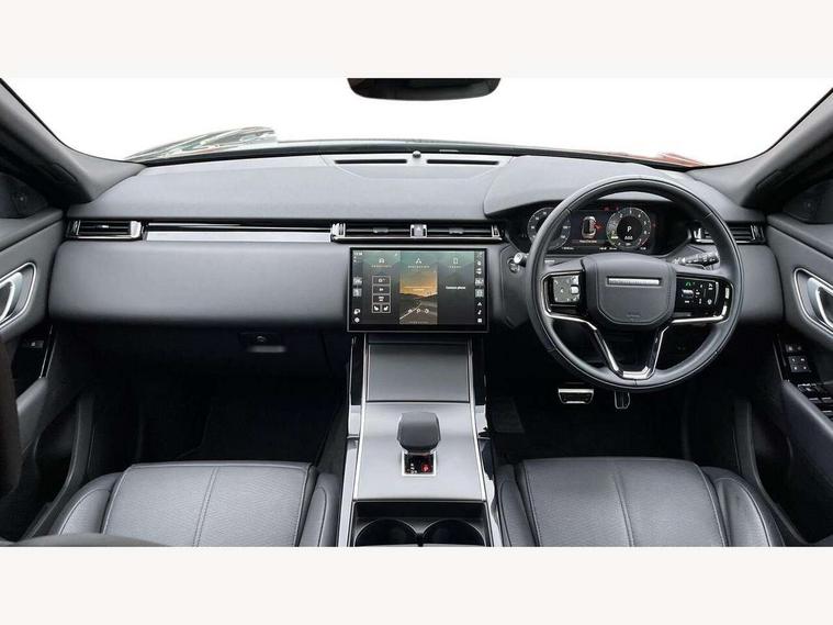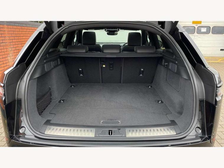 Adaptive cruise control with steering assist, Android Auto, Apple CarPlay, Blind spot assist, Bluetooth connectivity, Brake pad wear indicator warning light, Driver condition monitor, eCall emergency call system, Front and rear parking aid, InControl remote, Land Rover InControl apps, Lane keep assist, Pivi pro with connected navigation, Rear collision monitor, Rear traffic monitor, Service indicator, Speed proportional electronic power assisted steering (EPAS), Traffic sign recognition with adaptive speed limiter, Trip computer, Voice control system, Wireless device charging, 7kw on board charger, 8 speed automatic transmission, AC/DC charging, Adaptive dynamics, All terrain progress control, Coil suspension system, Home charging cable, Open differential with torque vectoring by braking, Public charging cable, Single speed transfer box, DAB radio, Steering wheel mounted controls, 3rd brake light, Acoustic laminated windscreen, Auto dimming interior rear view mirror, Automatic headlamp levelling, Automatic headlights, Body coloured bumpers, Boot protection plate, Electric windows with one touch open/close and anti trap, Flush deployable exterior door handles, Follow me home headlights, Heated rear window with timer, Heated washer jets, Heated windscreen, Metal front tread plates, Metal load space scuff plates, Pixel LED headlights with signature DRL, Power fold, auto-dimming, heated door mirrors with memory and approach lights, Rain sensor windscreen wipers, Rear animated directional indicators, Rear fog lights, Rear side wing doors, Rear wash/wipe, Tailgate/boot lid spoiler, Trailer stability assist, Velar badge, 3 seat bench in 2nd row, Ambient lighting, Bright metal pedals, Carpet mats, Driver/passenger sunvisors with illuminated vanity mirrors, Ebony morzine headlining, Electrically adjustable steering column, Extended leather upgrade, Heated steering wheel, Isofix system on outer rear seats, Loadspace cover, Overhead lighting console, Overhead stowage for sunglasses, Passive front headrests, Rear air vents, Rear centre headrest, Single front passenger seat, Twin front cupholders, Twin sliding front centre armrest, Online pack with data plan - Velar, Power socket pack 2 - Velar, 380mm front brakes and 325mm rear brakes, 3x3 point rear seatbelts, Anti-lock braking system (ABS), Cornering brake control, Curtain airbags, Customer configurable autolock, Door side intrusion beams, Driver airbag, DSC - Dynamic Stability Control, Electronic brake force distribution, Electronic parking brake, Electronic traction control, Emergency braking, Front and rear seatbelt reminder, Hill descent control, Hill launch assist, Low traction launch, Passenger airbag, Power operated child locks, Rear airbags, Roll stability control, Side airbags, Tyre pressure monitoring system (TPMS), Unpainted brake calipers, Global lock and unlock switch on driver door, Immobiliser, Intrusion sensor, Keyless entry, Lock only switch on front passenger door, Locking wheel nuts, Perimetric alarm, Remote central locking, All season tyres,
