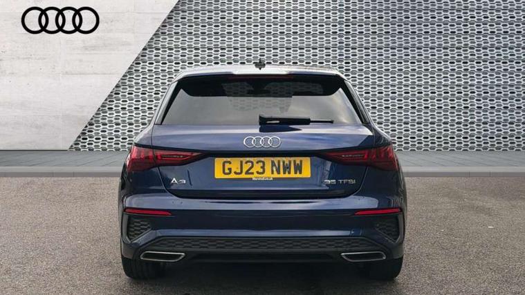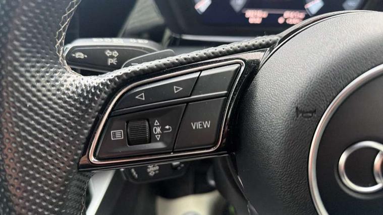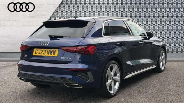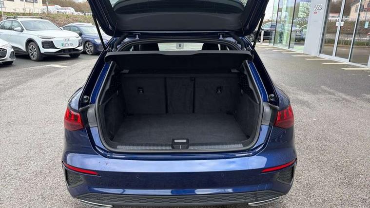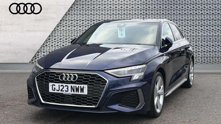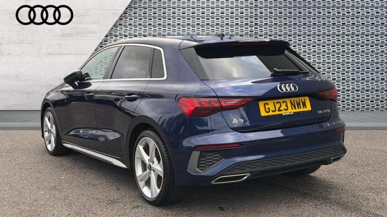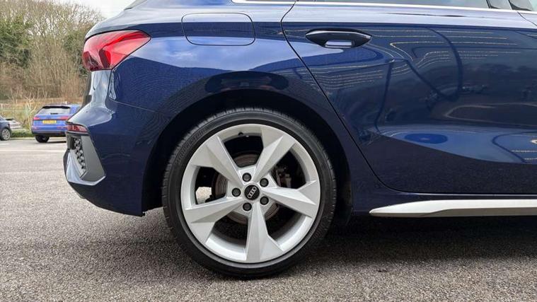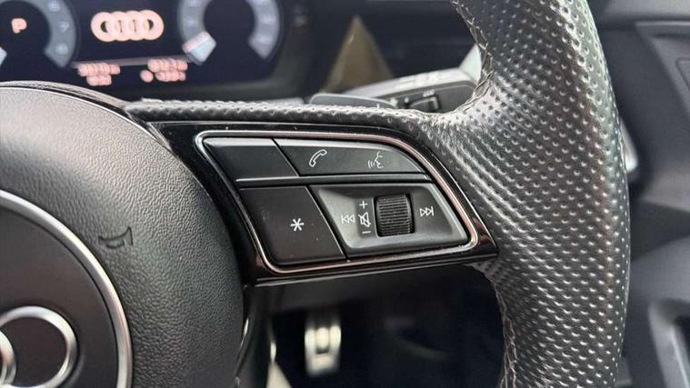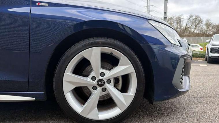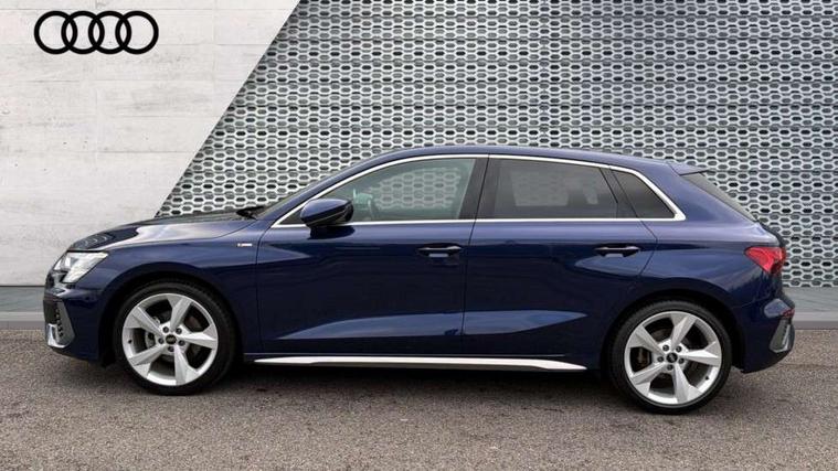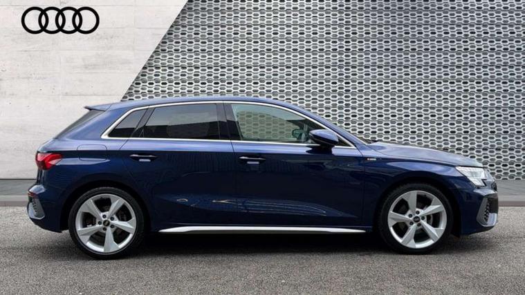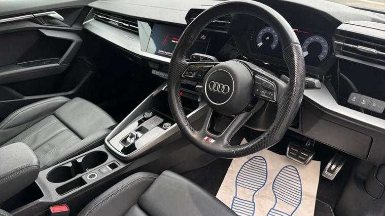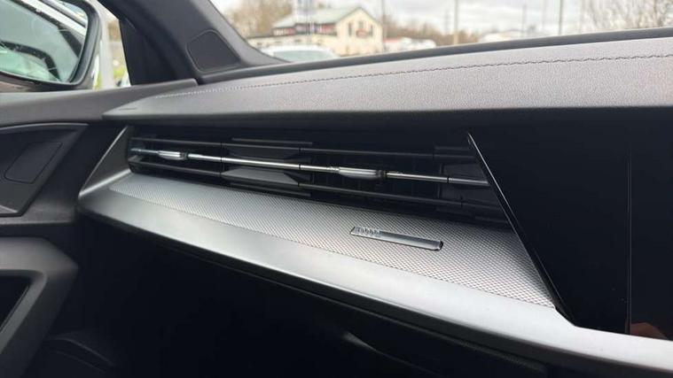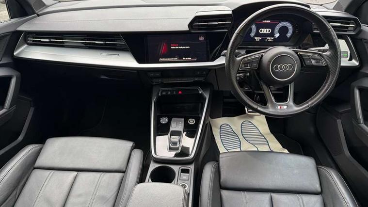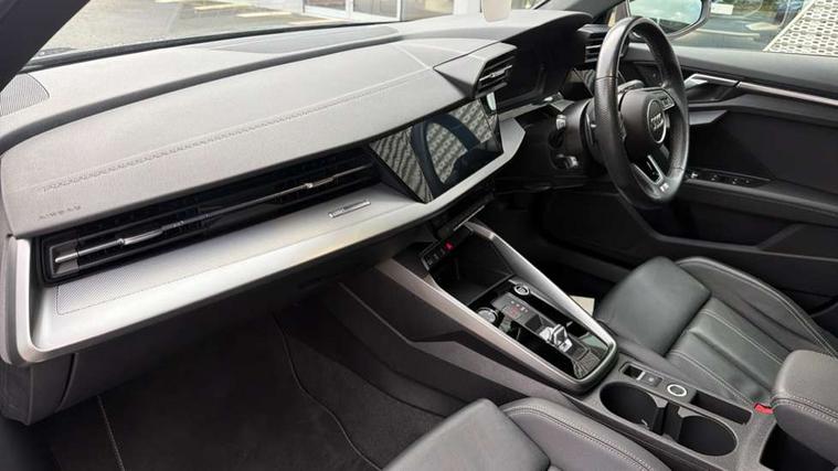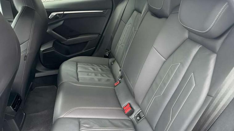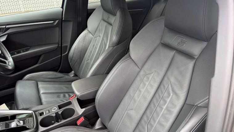 Audi drive select (Auto, Comfort, Dynamic, Efficiency and Individual), Audi smartphone interface, Audi Virtual Cockpit - 10.25" digital and colour instrument cluster, Automatic start/stop system with recuperation, Bluetooth interface, Collision avoidance assistant, e-Call (emergency call), Electromechanical power speed sensitive steering, Lane departure warning system, MMI Navigation Plus with high resolution 10.1" colour touch screen display, Service indicator, Trip computer, Voice control system with natural language interaction, Sports suspension, 2xUSB-C connection with data and charging functions, 6 passive loudspeakers, DAB Digital radio, 3rd brake light, Acoustic glass windscreen, Aluminium window trim, Auto dimming frameless rear view mirror, Body colour exterior mirrors, Electrically adjustable/heated/folding/dimming door mirrors with kerb view includes integrated LED indications + kerb view function for passenger side, Front electric windows, Illuminated aluminium inserts front door sills with S logo, LED daytime running lights, LED headlights with LED rear lights and dynamic rear indicators, Light and rain sensors, Privacy glass - dark tinted rear window, rear door and side windows, Rear electric windows, Rear side air outlets in grained matt black, Rear side wing doors, Rear wiper, S line bumpers, S roof spoiler, 12V socket and storage compartment in front centre console, 3 seat bench in 2nd row, 3 spoke leather multifunction steering wheel with paddle shift, 40/20/40 split folding rear seat bench with cupholder, Black cloth headlining, Dual zone electronic climate control, Front and rear centre armrest in leather, Front and rear headrests, Front/rear floor mats, Height and reach adjustable steering wheel, Illuminated vanity mirror, Interior lighting - glove compartment light and right hand side, Luggage compartment floor covering, Manual boot compartment lid, Manually adjustable front seats, Seat side bolsters, Single front passenger seat, Stainless steel pedals and front footrest in black, Twin leather upholstery with front sports seats S embossed logo, Aluminium interior elements pack - A3 Sportback, LED interior lighting pack - A3 Sportback, S line styling pack - A3 Sportback, 3x3 point rear seat belts, Audi pre sense front, Driver and front passenger airbag with passenger airbag deactivation, Electronic Stabilisation Control (ESC) including ABS, ASR and EDL, First aid kit with warning triangle and 2 safety vests, Front side airbags with head airbags and interaction airbag, Pre-sense front with pedestrian and cyclist detection, Seatbelt monitoring, Tyre pressure loss indicator, Anti theft alarm, Anti-theft wheel bolts, Electronically operated child lock, Immobiliser, Remote control central locking, Accent surfaces in the dashboard and centre console in platinum grey silk effect paint finish, Dark spectrum aluminium inlays,
