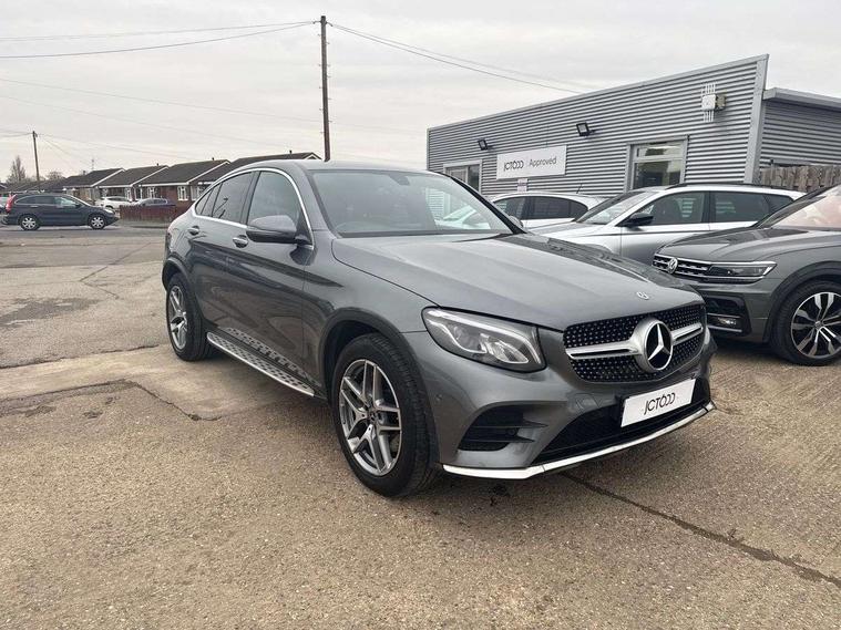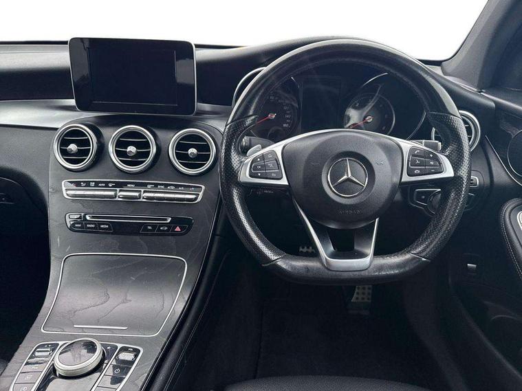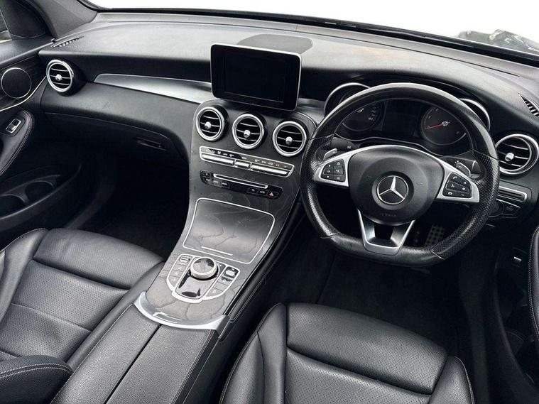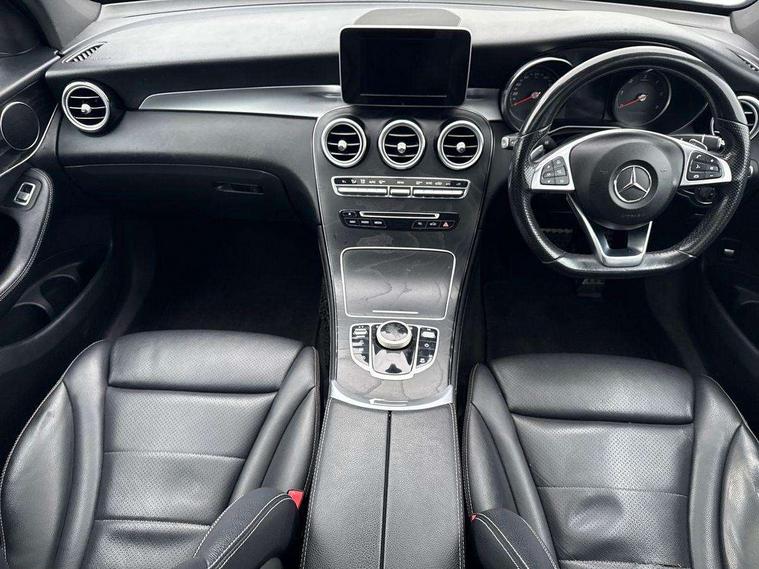 7" colour screen, Active park assist with parktronic system, Attention assist, Bluetooth interface for hands free telephone, Collision prevention assist plus, Crosswind Assist, DYNAMIC SELECT with a choice of driving modes (ECO, Comfort, Sport, Sport+ and Individual), Garmin Map Pilot navigation system with SD card, touchpad and voice control, Instrument cluster with 5.5-inch TFT multi-function display, Multi function trip computer, Outside temperature gauge, Power opening/closing tailgate, Remote boot release, Service indicator (ASSYST), Speed sensitive steering, Diesel particulate filter, 5 speakers, DAB Digital radio, Frontbass loudspeakers, Mercedes Audio 20 radio/single CD + telephone keypad, USB connection, Adaptive brake lights, AMG bodystyling, Automatic headlights, Body coloured bumpers, Chrome exterior trim, Electric sliding glass sunroof, Electric windows one touch open/close, Electrically adjustable and heated door mirrors, Exhaust tailpipe finisher, Heated windscreen washers, LED daytime running lights, LED rear lamps, Privacy glass (to rear of B post), Rain sensor windscreen wipers, Range adjustable headlights, Rear wiper, Tinted glass all round, 2 cupholders in front centre console, 2 way rear head restraints, 3 spoke flat bottom AMG steering wheel in nappa leather, 4 way adjustable front head restraints, 4 way electric lumbar support for driver and front passenger, 40:20:40 split folding rear seats, Ambient lighting, AMG floor mats, AMG sports seats, Auto Mercedes-Benz child seat recognition sensor, Automatic climate control, Black roof lining, Dividing net - rear, Electric front seat height adjustment, Front armrest with storage box, Front door sills with Mercedes Benz lettering, Gearshift paddles, Heated front seats, Illuminated glovebox, Multifunction steering wheel, Rear top tether child seat ISOFIX attachment, Sports pedals with stainless steel surfaces and rubber studs, Sunvisors with illuminated vanity mirrors, Easy-pack load compartment cover, Interior lighting pack - GLC, Memory pack - GLC, Mirror pack - GLC, Storage pack - GLC, 3 rear 3 point seatbelts, ABS with Brake Assist, Active bonnet, Adaptive brake system, Brake calipers with Mercedes-Benz lettering + perforated brake discs, Child proof door locks, Drivers knee airbag, Dual stage driver/passenger airbags, Electronic parking brake, ESP with ASR, Front and rear seatbelt reminder, Front passenger seat occupancy sensor, Front side airbags, Hill hold function, Tyre pressure monitoring system, Warning triangle and first aid kit, Window airbags, Alarm system/interior protection/immobiliser, Automatic door locking, Keyless entry and keyless start, Remote central locking, All season tyres, Tyre inflation kit,