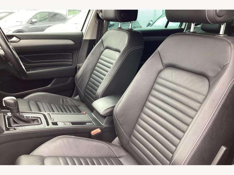Adaptive cruise control including Front Assist, radar sensor controlled distance monitoring system, City emergency braking system, Driver alert system, Driver profile selection, Exterior temperature gauge with frost alarm, Lane assist, Low washer fluid warning light, Multifunction computer includes visual gear, One touch indicator turn signal, Proactive occupant protection, Security and service including e-call, Speed sensitive power steering, Speedo and rev counter, electronic odometer, trip, service interval display and fuel gauge, Start/Stop function, Traffic jam assist, Warning buzzer and light for front seatbelts unfastened, Wireless app connect, Battery regeneration during braking, Diesel particulate filter, Misfuel prevention device, Aerial for radio integrated into rear windscreen, DAB Digital radio receiver, Auto dimming interior rear view mirror, Automatic headlights with dusk sensor, Automatic leaving home and manual coming home lighting functions, Black radiator grille with chrome louvres, Body colour bumpers, Body colour door handles, Body coloured door mirrors with intergrated indicators, Chrome side window surrounds, Front and rear electric windows, Fully galvanised body, Gloss black finish on B pillar, Heated rear window, High level 3rd brake light, LED rear lights, LED rear number plate lights, Plastic load sill protection, Rain sensor, Rear tinted glass from B pillar backwards, approx 65% tinted, Rear window wash/wipe, Remote electrically adjustable and foldable heated door mirrors including automatic dimming function on drivers side door mirror puddle lights, Silver anodised roof rails, Volkswagen roundel, Warning lights for open tailgate and doors, White instrument lighting, 12V socket in front centre console, 12V socket in luggage compartment, 40:20:40 split folding rear seats with backrest, Driver's door storage compartment for 1.0 litre bottle, Extending luggage compartment cover with convenience opening, stowable, Front + rear carpet mats, Front and rear interior lighting with delay and dimming function, Front centre armrest with storage compartment and two rear air vents, Front cupholders x2 with covers, Front passenger storage compartment for 1.5 litre bottle, Height adjustable and removable variable boot floor, Height adjustable rear seat head restraints (x3), Height/reach adjust steering wheel, Illuminated vanity mirrors, Isofix child seat preparation, outer rear seats, Load lashing points x 4 in luggage compartment, Load through provision, Lockable, illuminated, cooled glovebox, Luggage compartment lighting, Rear seat centre armrest with storage compartment, Storage compartment in rear doors, Storage compartment in roof console with cover, Vienna leather upholstery + heated front seats + heated windscreen washer jets, 3x3 point rear seatbelts, ABS (Anti locking brake system) includes BAS (Brake assist) and EBD (Electronic brake pressure distribution), Automatic post collision braking, Disc brakes front and rear, Door open warning reflectors, Driver/Front Passenger airbags, Drivers and front passengers safety optimised head restraints, longitudinal and height adjustable, Drivers knee airbag, Electronic parking brake with auto hold, First aid kit, Front airbags with deactivation switch, Front and rear passenger curtain airbags, Front side impact airbag, Height adjustable front 3 point seatbelts + pretensioners, Hill hold function, Pre crash preventive occupant protection, Rear seat side impact airbags, Rigid safety cell with front and rear crumple zones, Tyre pressure loss indicator, Volkswagen roadside assistance, Warning light for rear seat belts if unfastened, Alarm with interior protection and deactivation via infotainment system, Electronic engine immobiliser, Chrome air vent and instrument surround, Cross hatch decorative inserts in dash and door panels,