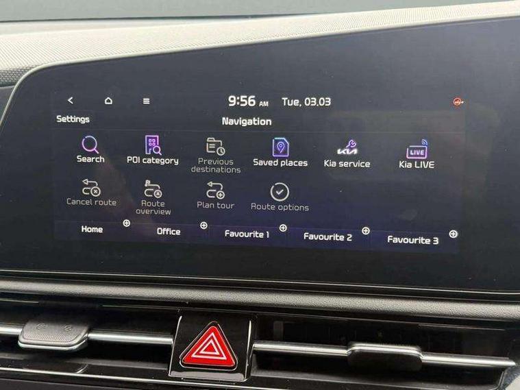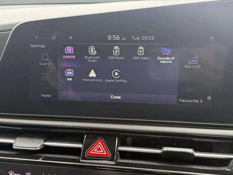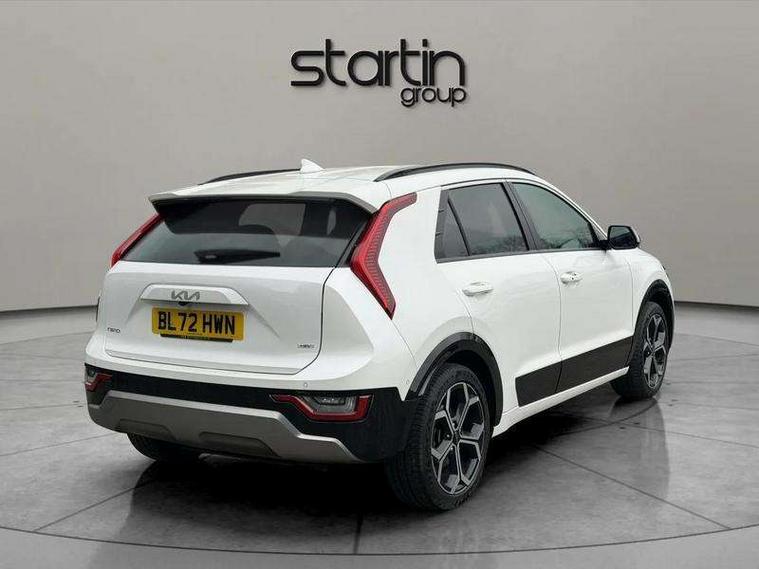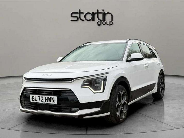 10.25" Supervision colour cluster display, 10.25" touchscreen satellite navigation, Adaptive smart cruise control function (SCC) with stop and go, Apple car play/Android Auto with voice control, Blind spot collision avoidance assist, Drive mode select (Eco, sport), E-call, Emergency stop signalling system, Forward Collision-Avoidance Assist (FCA) 1.5 - City/Pedestrian/Cyclist/Junction turning, Front parking sensors, Head up Display, Highway Driving Assist (HDA), Kia Connect (UVO), Lane Following Assist (LFA), Lane keep assist, Motor driven power steering, Parking collision avoidance assist (PCA), Power opening/closing tailgate, Rear cross traffic alert, Rear parking sensors, Remote smart parking assist, Reversing camera with dynamic guide lines, Safe exit warning (SEW), Speed limit assist, Trip computer with distance/fuel consumption/average speed, Wireless Smartphone charger, 220v AC Inverter, 'Shark fin' mobile antenna, 2 type C USB ports on front seats, 2 USB ports in centre console including 1 type C, 6 speakers, Bluetooth with music streaming, DAB Digital radio, Steering wheel mounted controls, Acoustic windshield, All round electric windows with drivers and front passenger auto up/down and safety function, Auto dimming rear view mirror, Automatic defog system, Automatic headlight control system, Black grille with chrome surround, Body colour bumpers, Body colour exterior door handles, Deluxe door scuff plates, Dual LED headlights (low and high projection), Electric heated door mirrors, Electrically folding door mirrors, Front and rear chrome skid plates, Front fog lights, Heated rear window with timer, High gloss black cladding, High gloss black door mirrors, LED daytime running lights, LED rear combination lights, LED third brake light, One touch single tilting/sliding power sunroof, Privacy glass - Rear windows and tailgate, Rain sensing front wipers, Rear fog lights, Rear side wing doors, Rear spoiler, Rear wiper, Roof rails, Solar glass windscreen, Welcome and follow-me home light functionality, Windscreen Washer Level Warning, 12V socket in front, 12V socket in luggage compartment, 3 seat bench in 2nd row, 60:40 split remote folding rear seats, All-round height adjustable headrests, Aluminium pedals, Artificial leather centre console storage box, Artificial leather steering wheel, Centre console cupholder, Chrome coating interior door handles, Driver and front passenger power adjusted seat, Driver power adjusted memory seat, Driver/passenger sunvisors with illuminated vanity mirrors, Drivers seat power lumbar support, Dual zone automatic air conditioning, Front and rear door storage, Heated front seats, Heated outer rear seats, Heated steering wheel, Illuminated glovebox, Interior door lock/unlock function, ISOFIX Child seat top tethers and anchor fixings, LED overhead console, 2nd row and luggage lamp, Luggage area load cover, Luggage board, Paddle shifts, Passenger premium relaxation seat, Power adjustable lumbar support on front passenger seat, Rear armrest, Seatback pocket - driver, Seatback pocket - front passenger, Shift by wire SBW, Single front passenger seat, Tilt/telescopic adjustable steering wheel, Vegan leather upholstery, Ventilated front seats, Ventiliation ducts to rear compartment, Towing pack - Niro, 3 point seatbelts on all seats, ABS, Automatic unlocking of doors in case of impact, Centre side front airbags, Curtain and side airbags, Drivers knee airbag, Dual shell horn, Electric parking brake with auto hold function, Electronic stability control, Front passenger airbag deactivation, Height adjustable front seatbelts, Hill start assist control (HAC), Manual rear child locks, Rear seat alert system, Traction control, Tyre pressure monitoring system, Alarm system and engine immobiliser, Deadlocks, Engine Start/Stop Button with Smart Entry System, Locking wheel nuts, Visible vehicle identification number, Warranty - 7 Years/ 100, 000 miles, Centre fascia chopped carbon, 18" Alloy wheels, Tyre mobility kit,
