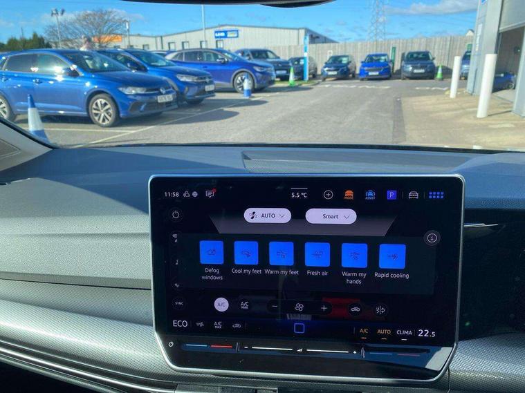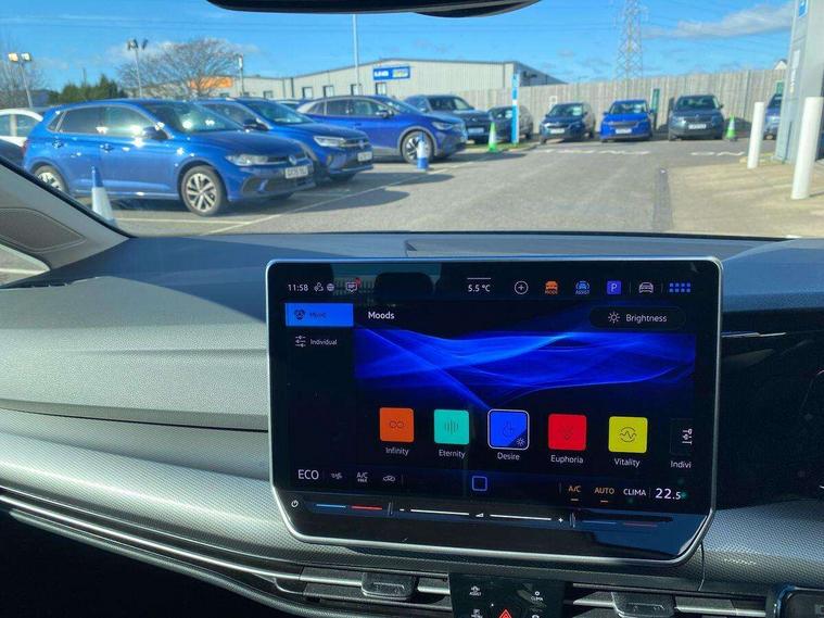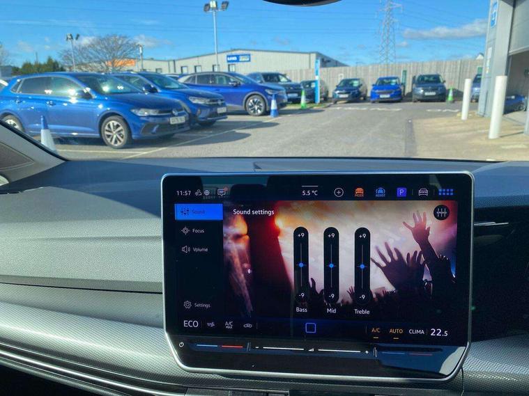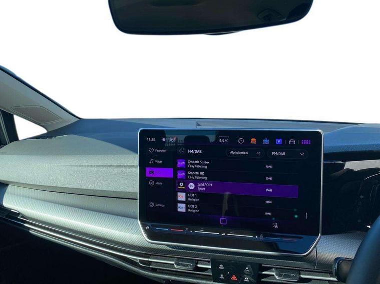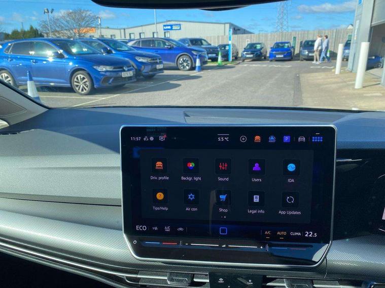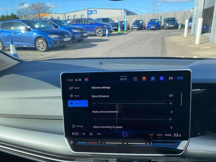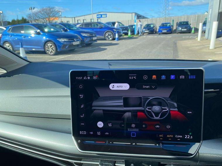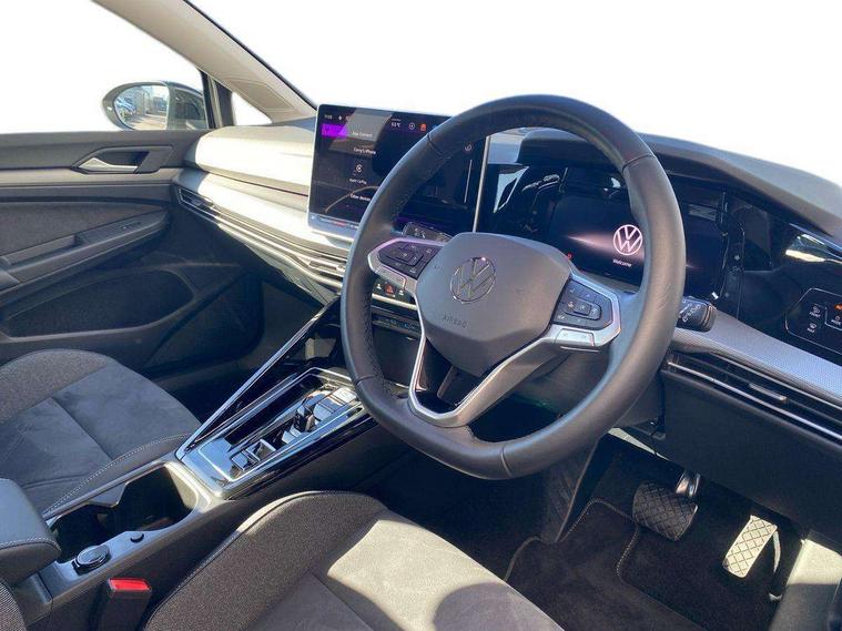 Activated carbon canister, Adaptive cruise control (ACC), Advanced driver attention and drowsiness monitor, Dynamic road sign display, E-Sim card for online connectivity, eCall emergency call system, Multi-color Digital cockpit pro, selection of different info profile possible, Multifunction front facing camera for distance control, Navigation system, Oncoming vehicle braking when turning including swerve support, Side assist blind spot lane change system, rear traffic alert and exit warning system, Speed limiter, Speedo, rev counter, electronic odometer, trip, service interval display, exterior temperature and fuel gauge, Traffic jam assist, Voice enhancer and voice control, Warning signal and warning light for front and rear seatbelts not fastened, We connect plus preparation, We connect preparation, Wireless app connect, Charging cable Mode 2 Type 2 (10A), Charging cable mode 3, type 2 32 A, Hybrid propulsion system, Start-stop system with battery regeneration (recuperation - energy recovery during braking), XDS electronic differential lock for improved traction and handling, 2 USB C ports in front, 2 USB charging sockets on the centre console in the rear charging capacity upto 45W, 6 Speakers - 4 in front and 2 in rear with central speaker, Digital radio reception (DAB), Diversity antenna for FM reception, Gaming platform via car app, Infotainment system with 12.9" display, Mobile phone interface with inductive charging feature, 3rd brake light, Automatic headlamp activation with Coming home and Leaving home feature, Body colour bumpers, Body colour door handles, Body colour door mirrors, Chrome trimmed front air intake surrounds, Chrome trims on the side window bottom, Exterior mirrors convex on the left and aspherical on the right, Front and rear electric windows, Heat insulating windshield made of laminated glass, LED separate daytime running light, Rear exhaust tailpipe, Rear fog light on one side and reversing lights on both sides, Rear side wing doors, Rear windscreen washer and wiper with interval delay, Remote electrically foldable door mirrors, puddle lights and reverse activated passenger's door mirror, Welcome light with surround lighting, 12V socket in front centre console, 12V socket in luggage compartment, 3 rear head restraints, 3 seat bench in 2nd row, Air care climatronic 3 Zone automatic climate control with rear air conditioning control panel, Ambient lighting with 30 colour including LED light unit in front footwell with selectable light colour, Chrome plated radiator grille inserts, air vent surrounds and light switch surrounds, Front + rear black carpet mats, Front centre armrest, ISOFIX anchors for child seats on outer rear bench seats and on front passanger seat compatible for i-Size, Luggage compartment lighting, Plastic gear knob, Rear cupholder and loadthough, Single front passenger seat, Soul black instrument panel, Split folding backrest with centre armrest and unsplit rear seat bench, Standard pedal cluster, Storm grey roof lining, Sun visors with illuminated vanity mirrors, Driver assistance pack - Golf Estate/Hatchback Auto, 3 point height adj front seatbelts + pretensioners, 3 rear three point seatbelts, ABS, Autonomous emergency braking front assist with pedestrian and cyclist monitoring, Child locks on rear doors, Driver and front passenger airbag with front passenger airbag deactivation, Electronic parking brake with auto hold, ESC (Electronic Stability Control), Extended pedestrian protection measures, Hill start assist, Rear disc brakes, Two tone horn, Tyre pressure loss indicator, Volkswagen roadside assistance, Anti theft wheel bolts, Preparation for alcohol interlock, New brushed dark metal decorative inserts for dashboard and front door panels, Tool kit for tyre mobility set, Tyre mobility kit Includes 12V compressor and tyre sealant,