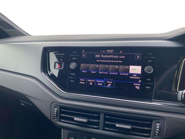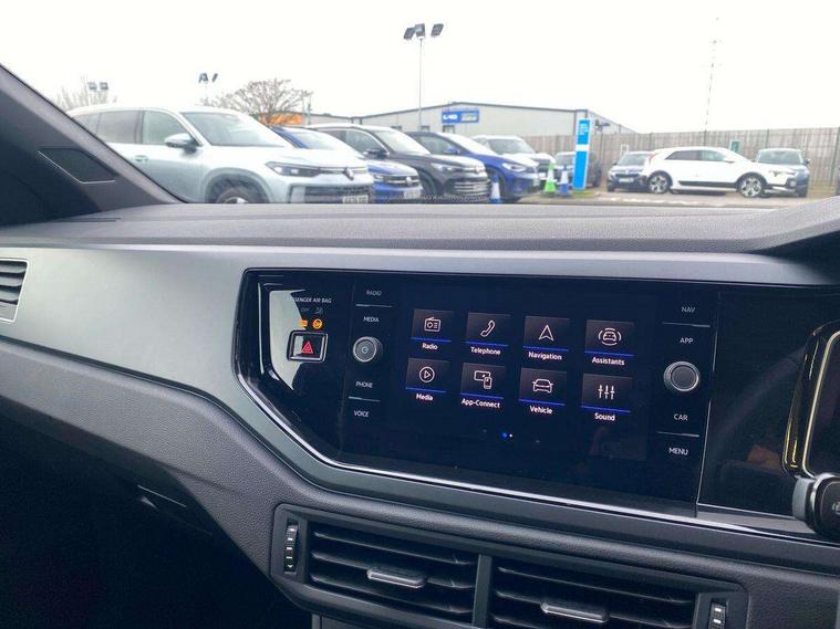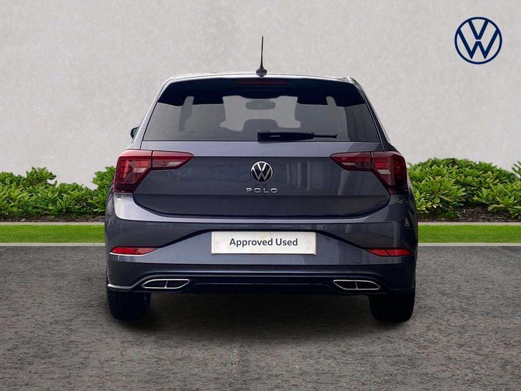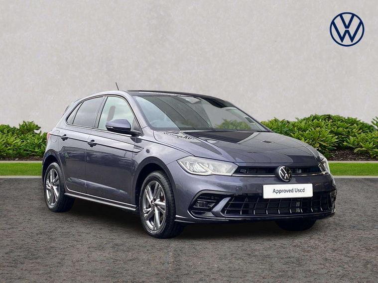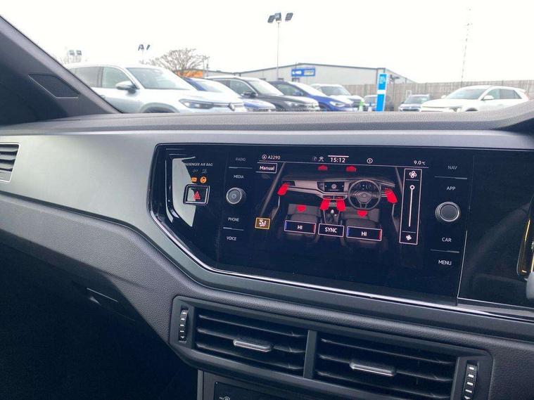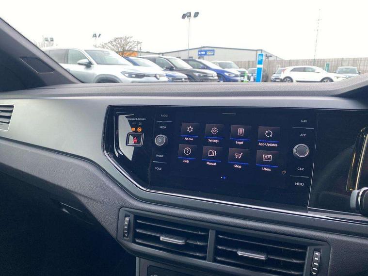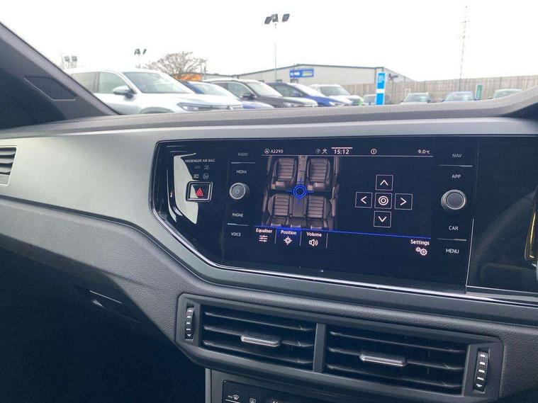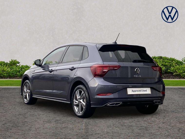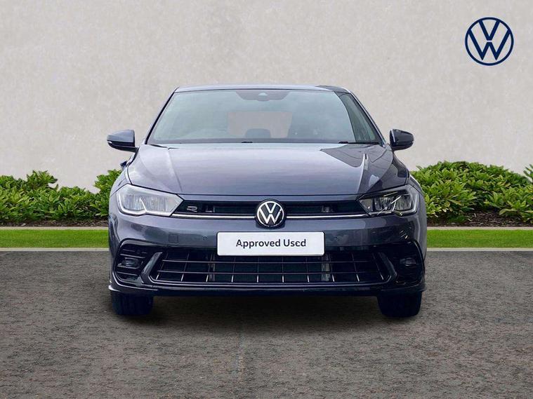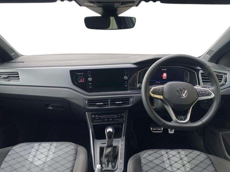 Adaptive cruise control with follow-to-stop and speed limiter, Advanced driver attention and drowsiness monitor, Bluetooth mobile phone interface, Digital Cockpit Pro with 10.25" Display, Dynamic road sign display, Emergency call service, Multifunction camera, Power assisted speed sensitive steering, Preparation for We connect and We connect plus, Speedo and rev counter, electronic odometer, trip, service interval display and fuel gauge, Standard rear axle, Travel Assist - Lane keeping system and traffic jam assist, Travel assist including emergency assist, Trip computer, Warning signal and warning light for front and rear seatbelts not fastened, Washer fluid level indicator, Wireless app connect, Front wheel drive, Rear shock absorpion, Start-stop system with battery regeneration (recuperation - energy recovery during braking), DAB Digital radio, Diversity antenna for FM reception, Front and rear 6 speakers, Body colour bumpers, Body colour door handles, Electric front windows, Front scuff plates with R-Line logo, Heat insulating glass windscreen, Power folding adjustable/heated exterior mirrors and front passenger exterior mirror lowering function, Rear electric windows, Rear fog light, Rear side wing doors, Rear windscreen washer and wiper with interval delay, Third brake light, 12V power socket in centre console, 2 USB-C ports in the front, 2 USB-C charging sockets on the center console in the rear, 3 rear head restraints, 60/40 split folding rear seat and rear seat bench not split, Air care climatronic air conditoning system with active combination filter and 2-zone temperature control, Black roof lining, Carpet mats, front and rear, Chrome plated radiator grille inserts, air vent surrounds and light switch surrounds, Door and side trim panel, Driver and front passenger seat height adjustment, Driver/passenger sunvisors with illuminated vanity mirrors, Front centre armrest, Front footwell illumination, Front seat backrest storage pockets, Front sports comfort seats, Handbrake lever handle in leather, Headliner in recycled material, Isofix child seat preparation easy-fit (for two outer rear seats, and front passenger seat) compatible with I-size, Karoso artvelours cloth upholstery, Leather trimmed gear knob, LED interior light with switch off delay and dimmer, 2 reading lights front and rear, Luggage compartment cover, Luggage compartment floor, Luggage compartment lighting, Lumbar adjustment for front seats, Single front passenger seat, Stainless steel pedals, Standard pedal cluster, Three spoke leather wrapped multifunction steering wheel with shifting paddles, Light and sight pack - Polo R-Line/Black Edition, 3 point height adj front seatbelts + pretensioners, 3x3 point rear seatbelts, ABS, Driver and front passenger airbag with front passenger airbag deactivation, Drivers and front passengers safety optimised head restraints, ESC (Electronic stability control) + EDL (Electronic Differntial lock) and ASR (Traction control), Extended and predictive pedestrian/ cyclist protection, Front curtain and side airbags with center airbag, Front/rear disc brakes, Hill hold control, Manual child lock in rear doors, Single tone horn, Tyre pressure loss indicator, Alarm with interior protection, Anti-theft alarm system with interior monitoring, backup horn, and towing protection, Anti-theft wheel bolts, Electronic engine immobiliser, Chrome applications on rotary light, mirror adjustment, window regulator switches, outlet with frame in black, Dark grey anodised matt decorative inserts in dash and front door panels, 16" Coventry alloy wheels, Low rolling resistance tyres,