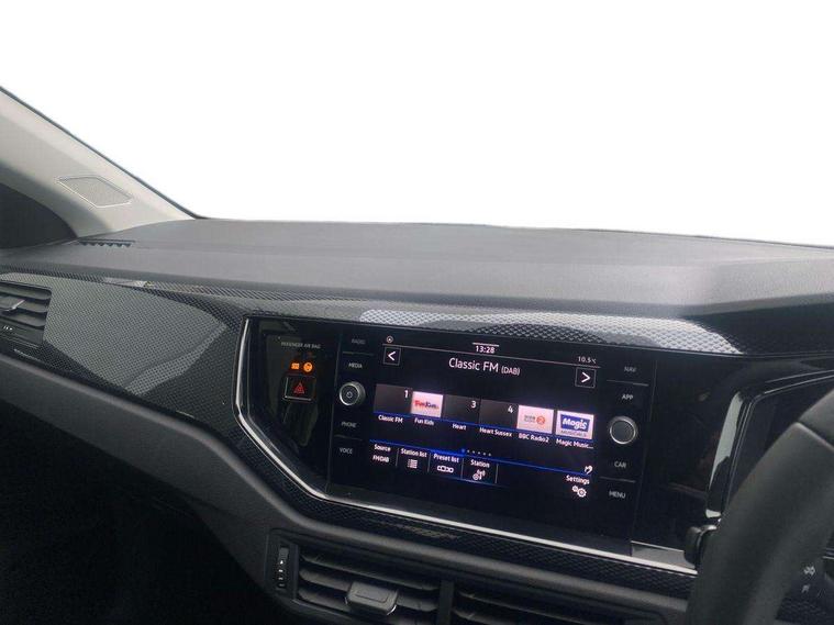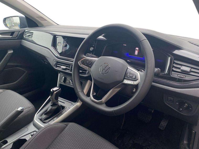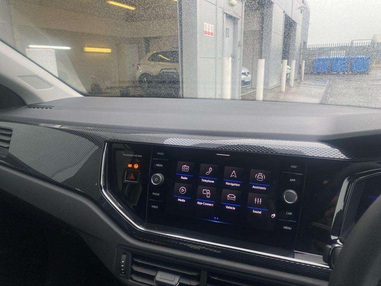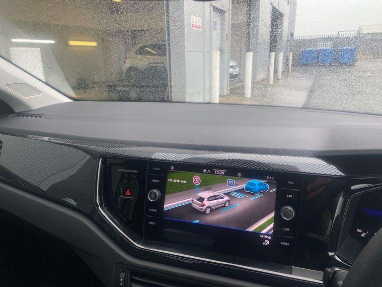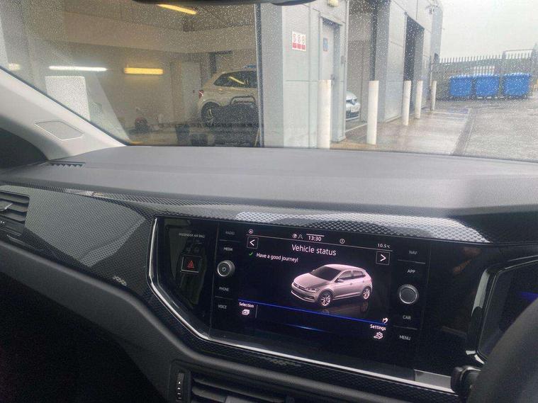 Advanced driver attention and drowsiness monitor, Bluetooth mobile phone interface, Dynamic road sign display, Emergency call service, Mobile phone preparation with inductive charging function, Multifunction front facing camera for distance control, Power assisted speed sensitive steering, Predictive adaptive cruise control without follow-to-stop and speed limiter, Preparation for navigation system with media and internet package, Preparation for We connect and We connect plus, Rear view camera, Speedo and rev counter, electronic odometer, trip, service interval display and exterior temperature gauge, Standard rear axle, Travel Assist - Lane keeping system and traffic jam assist, Travel assist including emergency assist, Trip computer, Warning signal and warning light for front and rear seatbelts not fastened, Washer fluid level indicator, Wireless app connect, Front wheel drive, Rear shock absorpion, Start-stop system with battery regeneration (recuperation - energy recovery during braking), DAB Digital radio, Diversity antenna for FM reception, Automatic dimming interior rear view mirror, Automatic headlight control with LED separate daytime running lights with coming/leaving home function, Body colour bumpers with chrome inserts, Body colour door handles, Body colour door mirrors, Electric front windows, Engine badge deletion, Headlight range adjustment, Heat insulating and laminated safety glass windshield, LED Headlights, LED rear combination lamps, Power folding adjustable/heated exterior mirrors and front passenger exterior mirror lowering function, Rain sensor, Rear electric windows, Rear fog light, Rear side wing doors, Rear tinted glass from B-pillar backwards approx 65% tinted, Rear windscreen washer and wiper with interval delay, Third brake light, 12V power socket in centre console, 2 front and 2 rear reading lights with switch off delay and dimmer, 2 USB-C ports in the front, 2 USB-C charging sockets on the center console in the rear, 3 rear head restraints, 60/40 split folding rear seat and rear seat bench not split, Carpet mats, front and rear, Ceramique roof lining, Chrome plated radiator grille inserts, air vent surrounds and light switch surrounds, Door and side trim panel, Driver and front passenger seat height adjustment, Driver/passenger sunvisors with illuminated vanity mirrors, Front centre armrest, Front seat backrest storage pockets, Front standard seats, Handbrake lever handle in leather, Hartley/Thomas cloth upholstery, Headliner in recycled material, Isofix child seat preparation easy-fit (for two outer rear seats, and front passenger seat) compatible with I-size, Leather trimmed gear knob, Luggage compartment cover, Luggage compartment lighting, Removable luggage compartment floor, Single front passenger seat, Standard climatic zones, Standard pedal cluster, Three spoke leather wrapped multifunction steering wheel with shifting paddles, Light and vision pack - Polo, 3 point height adj front seatbelts + pretensioners, 3 point seat belt for centre rear seat, 3 point seatbelts, outer rear with ECE lable, ABS, Driver and front passenger airbag with front passenger airbag deactivation, Drivers and front passengers safety optimised head restraints, ESC (Electronic stability control) + EDL (Electronic Differntial lock) and ASR (Traction control), Extended and predictive pedestrian/ cyclist protection, Front assist with autonomous emergency braking (for Adaptive Cruise Control ACC up to 130 mph), Front curtain and side airbags with center airbag, Front disc brakes, Hill hold control, Manual child lock in rear doors, Rear drum brakes, Single tone horn, Tyre pressure loss indicator, Alarm with interior protection, Anti-theft alarm system with interior monitoring, backup horn, and towing protection, Anti-theft wheel bolts, Electronic engine immobiliser, Lava stone black gloss/matt decorative inserts in dash and front door panels, 16" Torsby alloy wheels, Low rolling resistance tyres,