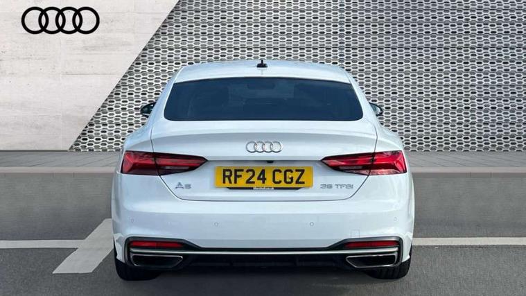 Audi connect safety and service (e-call), Audi drive select (Auto, Comfort, Dynamic and Individual), Audi smartphone interface, Audi virtual cockpit - 12.3" full colour digital instrument cluster, vehicle/engine speed, Radio/media information+Driver assistance systems, Automatic start-stop system with coasting functionality and efficiency programme, Bluetooth interface, Camera based traffic sign recognition, Electro-mechanical power steering, Email, calendar and text messages displayed via MMI, Front and rear parking sensors, Lane departure warning, MMI nav+ with MMI touch - 10.1" high resolution MMI display, touch sensitive, 3D map, route/country info, dynamic route guide, personal route assist, Power operated tailgate, Rear view camera, Service interval indicator, Voice control system, 54 litre fuel tank, Comfort dynamic suspension, 8 passive loudspeakers, CD player, DAB digital radio reception, Two additional USB ports for rear passenger in rear centre console, Two SDXC card slots, Auto dimming door mirrors, Auto dimming rear view mirror, Body colour bumpers, Body colour door handles, Body colour side sill trim, Body coloured door mirrors, Electric adjustable heated door mirrors, Electric folding door mirrors, Electric front windows, Front fog lights, Kerb-view function for passenger side, LED headlights and rear lights with LED daytime running lights, LED side indicator lights integrated into door mirrors, LED third brake light, Matt aluminium silver tailpipe trim, Radiator grille in matt anthracite black and air inlets with inserts in matt aluminium silver, Rain and light sensors, Rear diffuser in matt anthracite black with trim strip in matt aluminium silver, Rear side wing doors, Rear wiper, Sport front and rear bumpers with side skirts, Variable front intermittent wipers, Windscreen with acoustic glazing, 3 seat bench in 2nd row, 3 spoke high multi-function leather sport steering wheel with paddle shift and height and reach adjustable, 4 way electric lumbar support for driver and front passenger, 40/20/40 split folding 3 seater rear bench seat, Black carpets, Deluxe 3 zone electronic climate control, Front centre armrest, Front door sill trims with aluminium inlay, Front head restraints, Front/rear floor mats, Heated front seats, ISOFIX child seat mounting and top tether, Luggage compartment mat, Manual seat adjustment, Rear centre armrest, Rear headrests, Single front passenger seat, Sunvisors with vanity mirrors, Twin leather upholstery + front sports seats, LED interior light pack - A5/RS5, 3x3 point rear seatbelts, 6 airbags - Driver, front passenger, curtain and side airbags, Attention and drowsiness assist, Electromechanical parking brake, Electronic Stabilisation Control (ESC) including ABS, ASR and EDL, Front passenger airbag deactivation, Height adjustable front seatbelts, Hill hold assist, Manual child lock in rear doors, Multi collision brake assist, Pop-up bonnet for pedestrian protection, Pre sense city, Seatbelt monitoring, Tyre pressure warning, Variable restraint system, Warning triangle and first aid kit, Anti theft alarm system, Anti theft wheel bolts, Immobiliser, Keyless Go, Remote central locking, Aluminium ellipse silver inlays, Tool kit, Tyre repair kit,