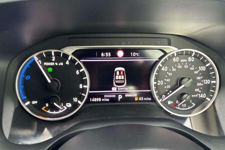 7" High definition full colour TFT screen combimeter, Android auto/Apple CarPlay (Wired), Blind spot warning, Drive modes (sport, normal, eco), Electric speed sensitive power steering, Emergency and breakdown call, Idle stop/start system, Intelligent Cruise control (ICC), Intelligent driver alert system, Intelligent forward collision warning, Intelligent lane intervention, Lane departure prevention, Lane departure warning system, Maximum speed limiter, Nissan connect 8" touchscreen infotainment system, Push button starter, Rear cross traffic alert, Rear parking sensors, Rear view camera, Traffic sign recognition with legal speed adjustment, Trip computer, 6 speakers, AM/FM audio system with DAB, Bluetooth audio streaming, Front USB connections (Type-A and Type-C), Auto dimming rear view mirror, Auto rear wiper when reversing, Automatic hazard signal with emergency stop signal, Body colour mirror caps, Body coloured door handles, Bodyside mouldings, Chrome side window finisher, Door handle with button, e-POWER badging, Electric auto folding door mirrors, Electrically adjustable and heated door mirrors with LED turn indicator, Follow me home headlights, High beam assist, Intelligent auto headlights, LED daytime running lights, LED Headlights, LED rear lights, One touch front and rear electric windows with remote opening and closing, Partially body coloured bumpers, Rear reversing light (bulb lighting), Rear roof spoiler, Rear side wing doors, Shark fin antenna, Splash free rain sensing wipers, Three blink turn signal, 12v power socket in dashboard and luggage, 2x Rear coat hooks, 3 bench rear seats in 2nd row, 3 rear headrests, 4 folding assist grip, 6-way manually adjustable driver's seat, 60/40 split folding rear seat bench, Centre console storage tray, Chrome interior door handles, Cloth monoform upholstery, Driver and front passenger sunvisors with illuminated vanity mirrors, Driver seat back pocket, Dual zone automatic climate control with pollen filter, e-POWER shifter, Front and rear door storage, Front centre console and armrest, Front cupholders x 2, Front door with bottle holders, Glovebox with light, Hard trunk cover, Height adjustable driver's seat, Height adjustable front headrests, Height adjustable passenger seat, Leather steering wheel, Luggage space lighting, Manually adjustable passenger (slide recline + lifter), Multifunction steering wheel, Passenger seat back pocket, Rear armrest with 2 cupholders, Rear door bottle holders, Single front passenger seat, Steering wheel switches, Sunglasses holder, Tilt/telescopic adjustable steering wheel, Two rear isofix child seat anchorage points with top tether, 3x3 point rear seatbelt pretensioners + load limiters, ABS with EBD and brake assist, Active brake limited slip, Auto hold function, Child locks on rear doors, Curtain and front side, far side airbags, Driver and passenger airbags, Driver, passenger and 2nd row rear seat belt reminder, Electronic parking brake, Front seatbelt pretensioners + load limiters, Height adjustable front seatbelts, Hill start assist, Intelligent blind spot intervention, Intelligent front emergency braking with pedestrian, cyclist recognition and junction assist, Intelligent rear automatic braking, Tyre pressure monitoring system, Vehicle dynamic control, Capless fuel filler, Engine immobiliser, Intelligent Key, Remote central door locking with deadlocking, Thatcham Cat.1 alarm, Interior instrumental panel A finisher, 18" Diamond cut alloy wheels, Tyre puncture repair kit,